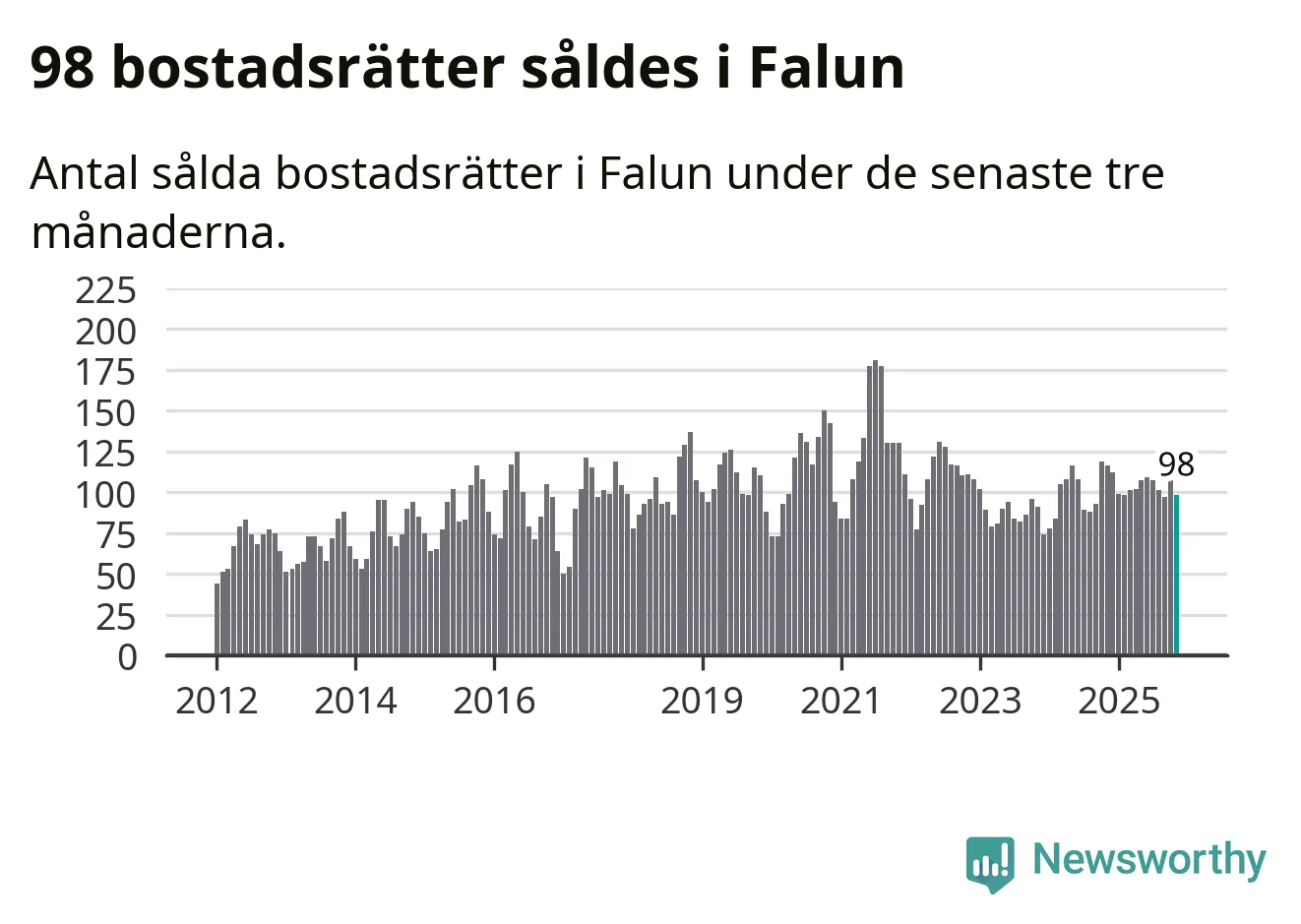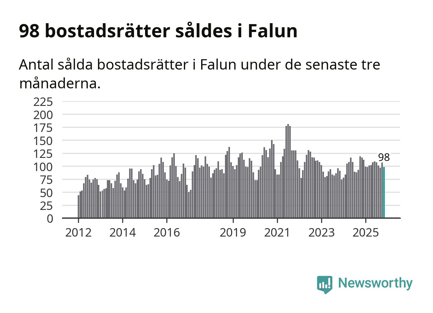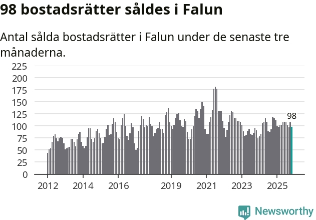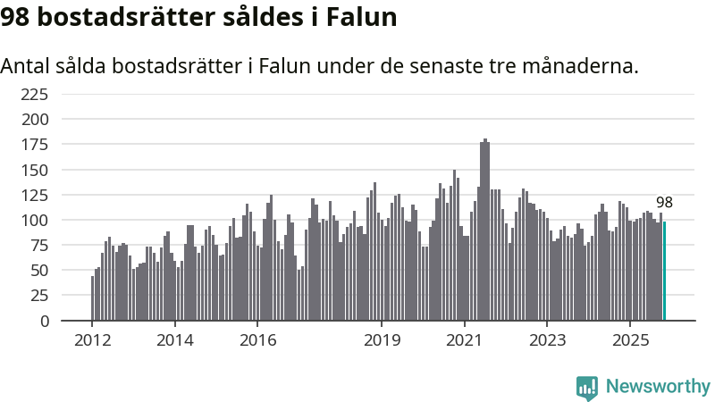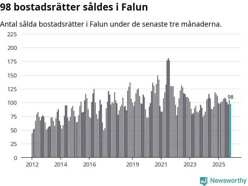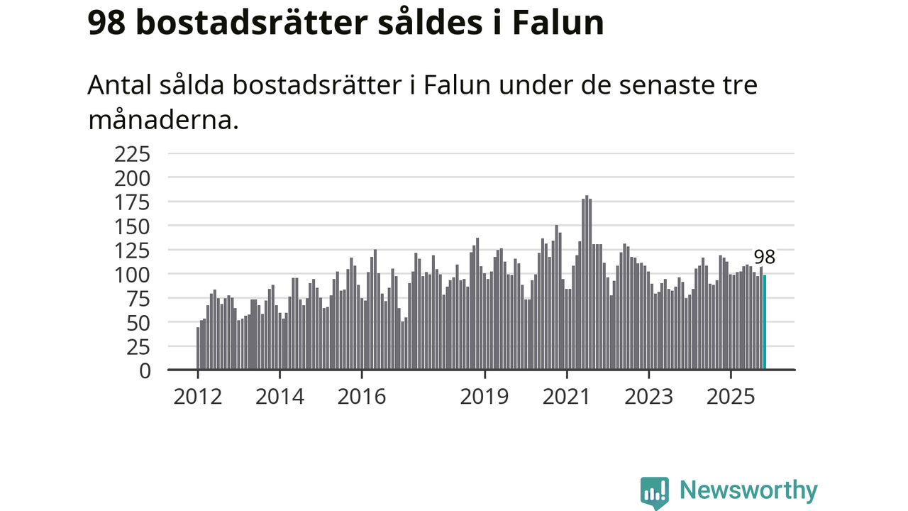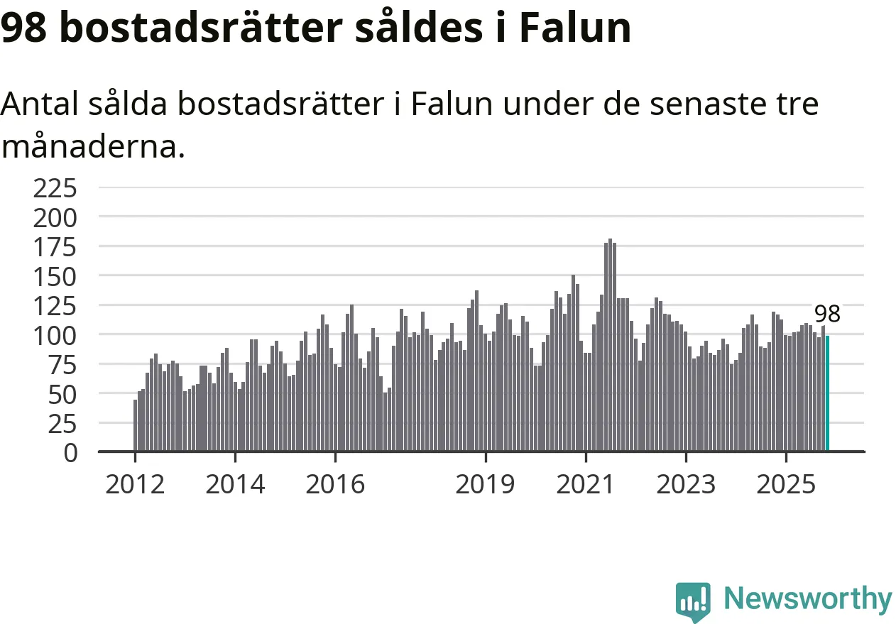 Sammanlagt såldes 98 bostadsrätter i Falu kommun mellan september och november till ett genomsnittligt pris på 1,8 miljoner kronor. I fjol gjordes 116 affärer vid den här tiden på året.