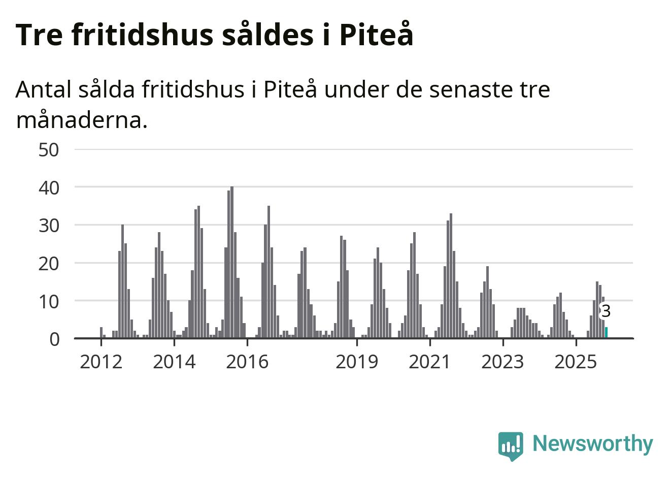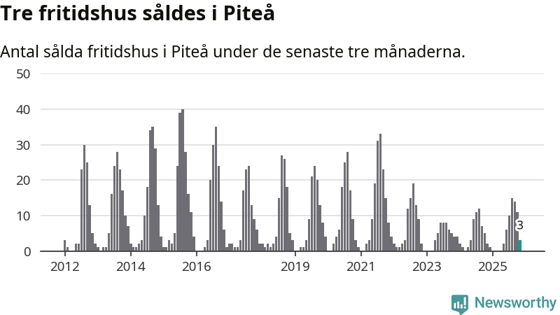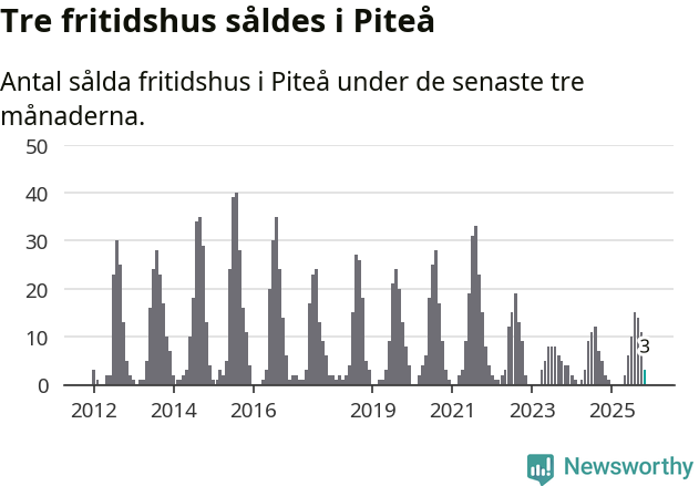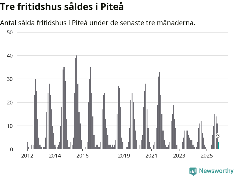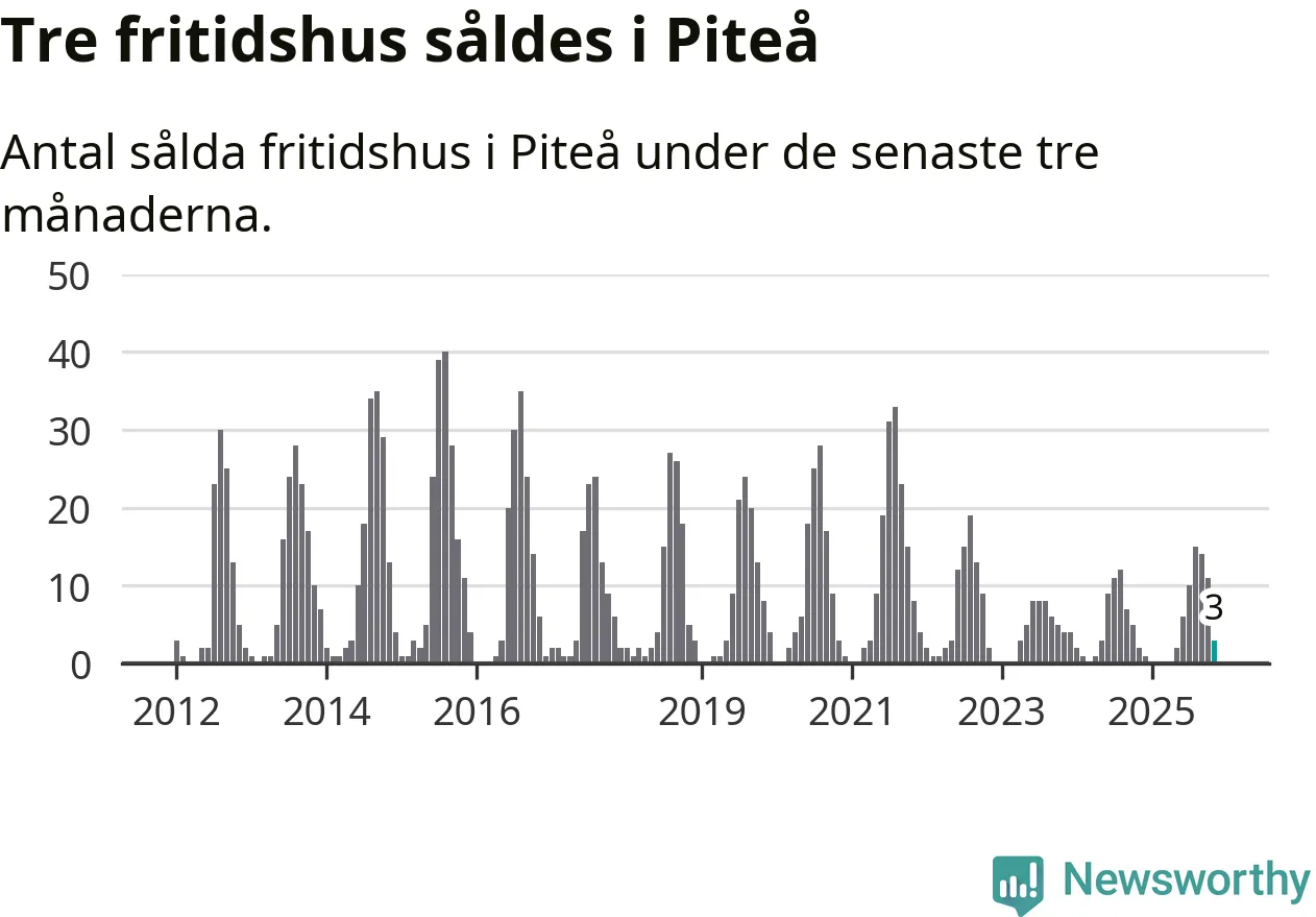 Mellan september och november gjordes sammanlagt tre affärer med fritidshus i Piteå kommun. Det kan jämföras med två vid motsvarande tid i fjol.