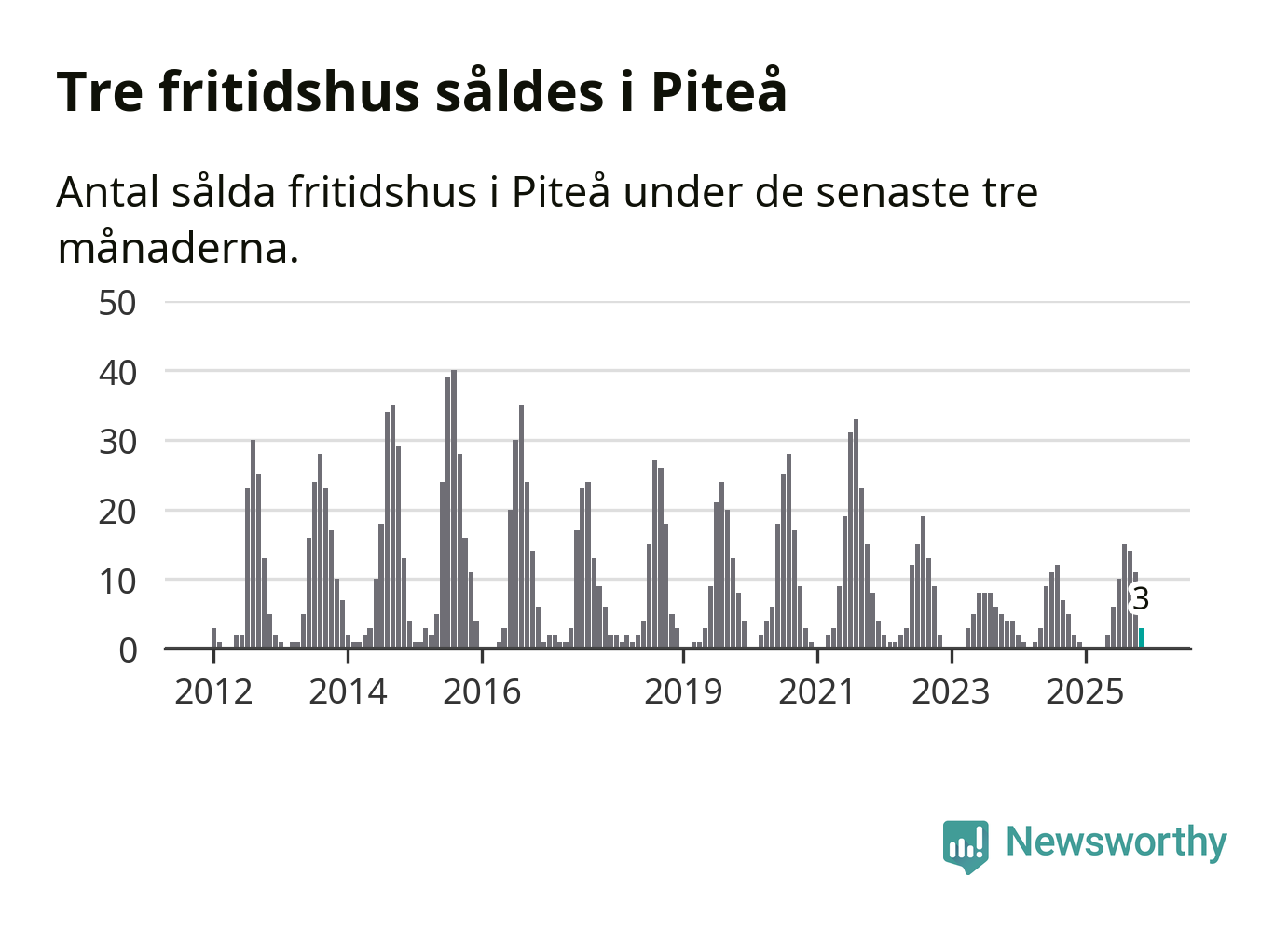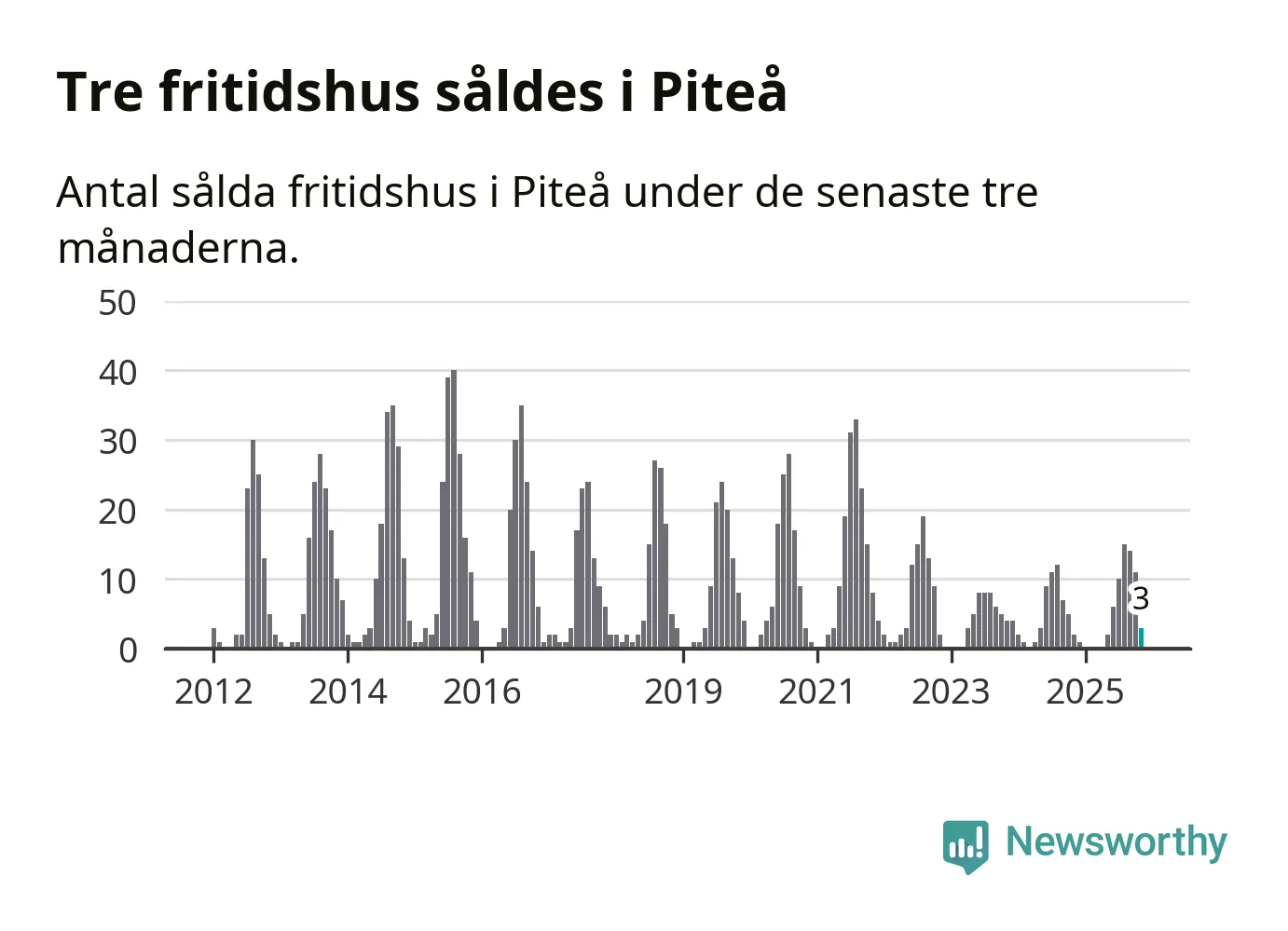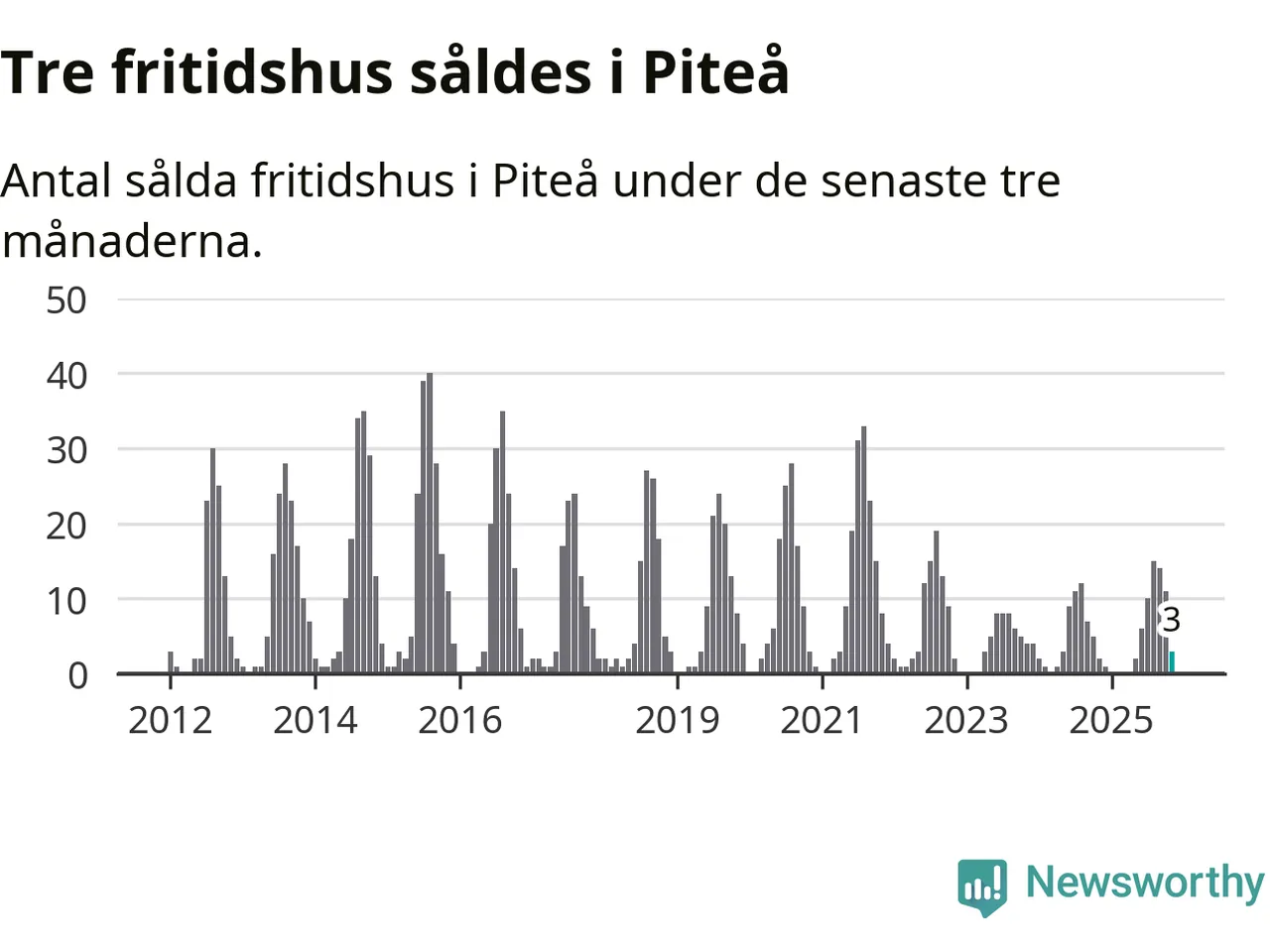 Mellan september och november gjordes sammanlagt tre affärer med fritidshus i Piteå kommun. Det kan jämföras med två vid motsvarande tid i fjol.