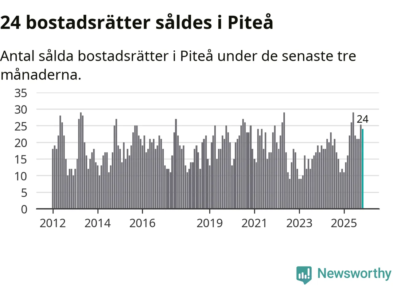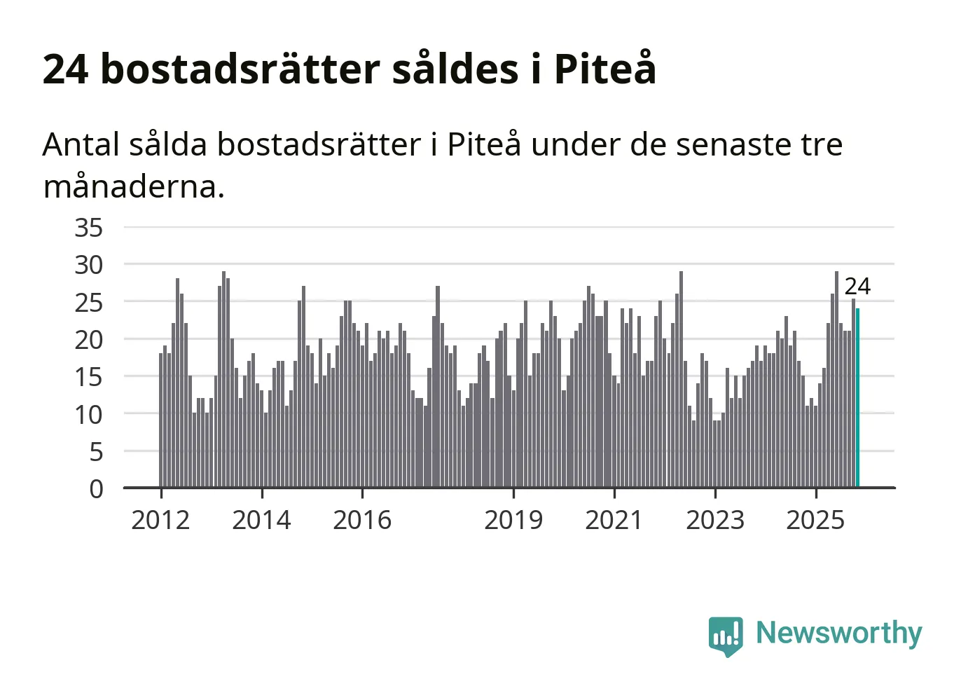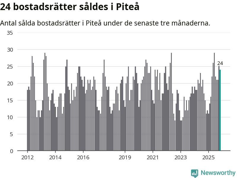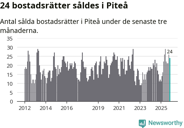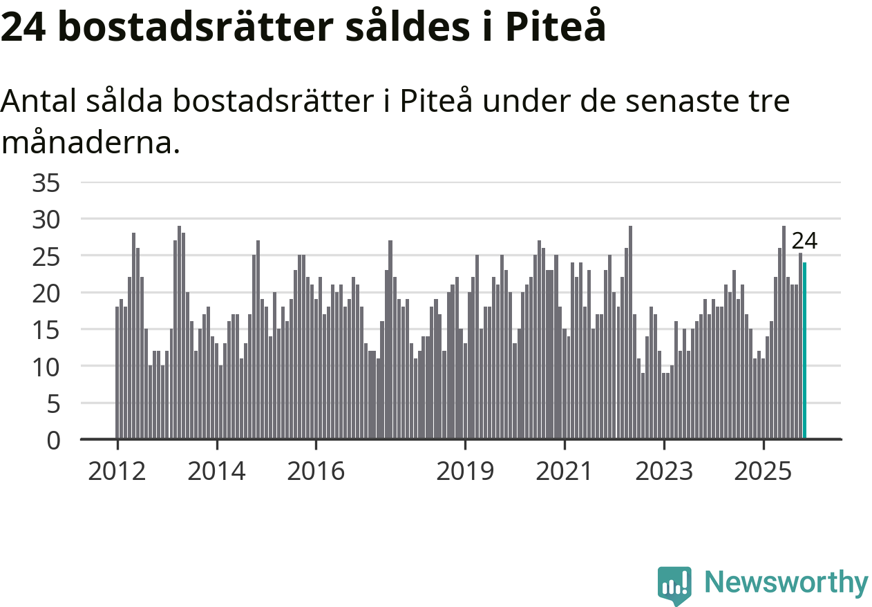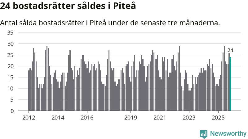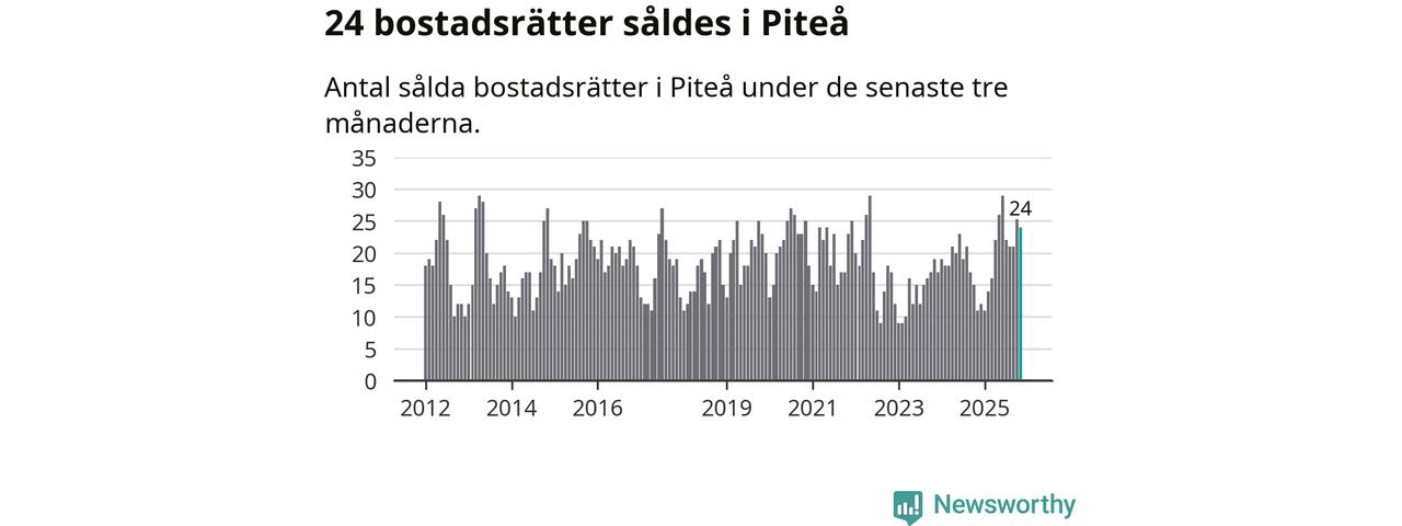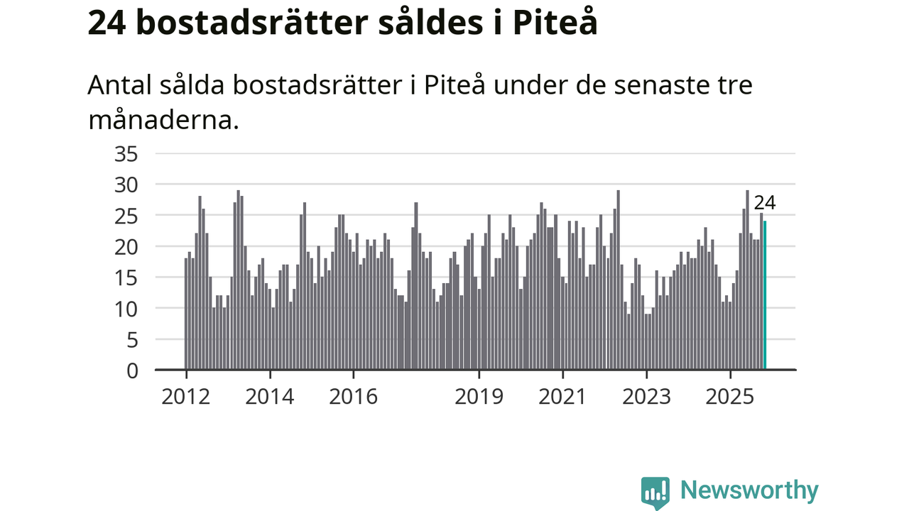 Mellan september och november gjordes sammanlagt 24 affärer med bostadsrätter i Piteå kommun. Det kan jämföras med elva vid motsvarande tid i fjol.