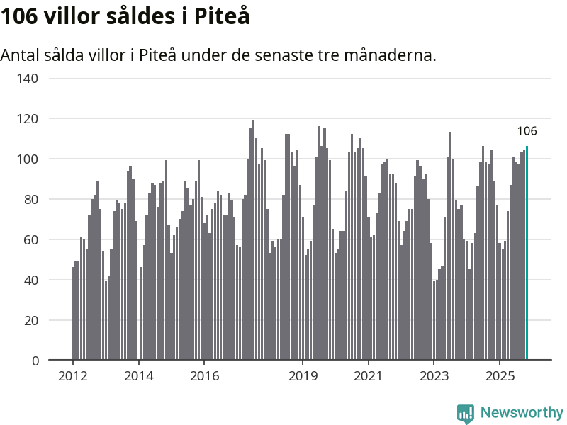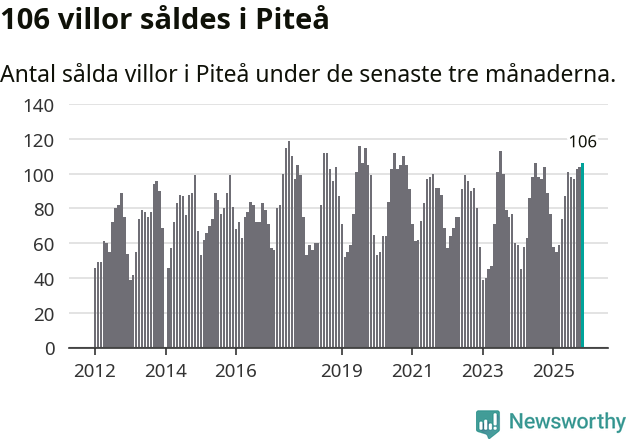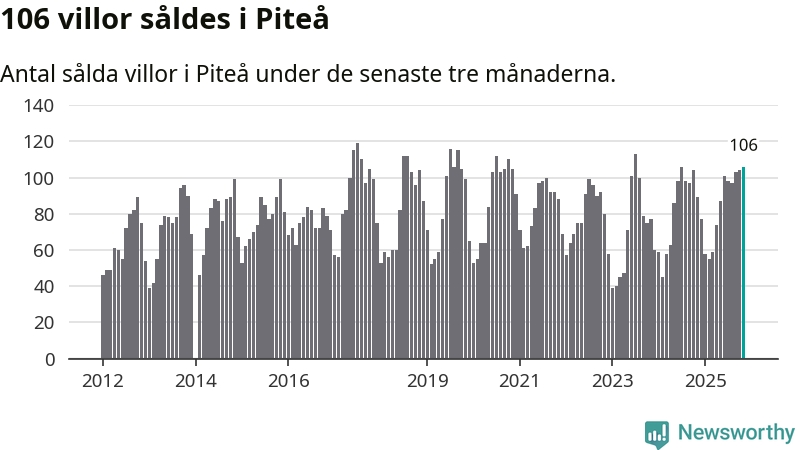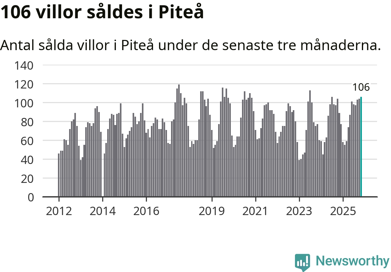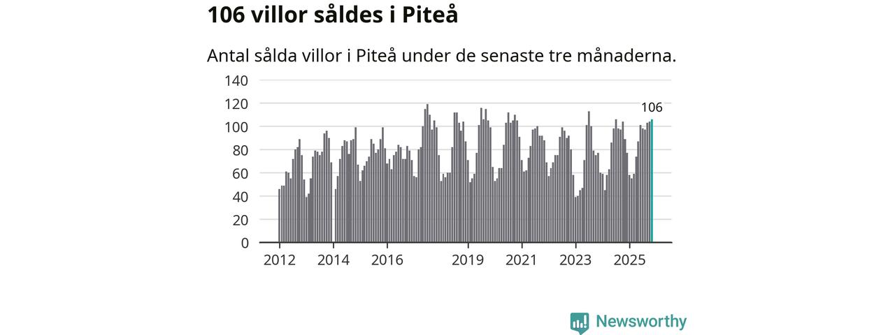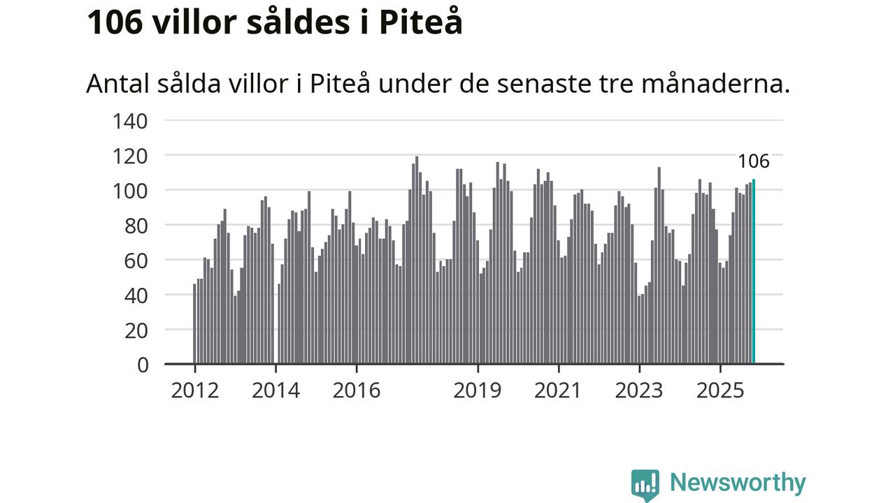 Sammanlagt såldes 106 villor i Piteå kommun mellan september och november till ett genomsnittligt pris på 2,3 miljoner kronor. I fjol gjordes 89 affärer vid den här tiden på året.