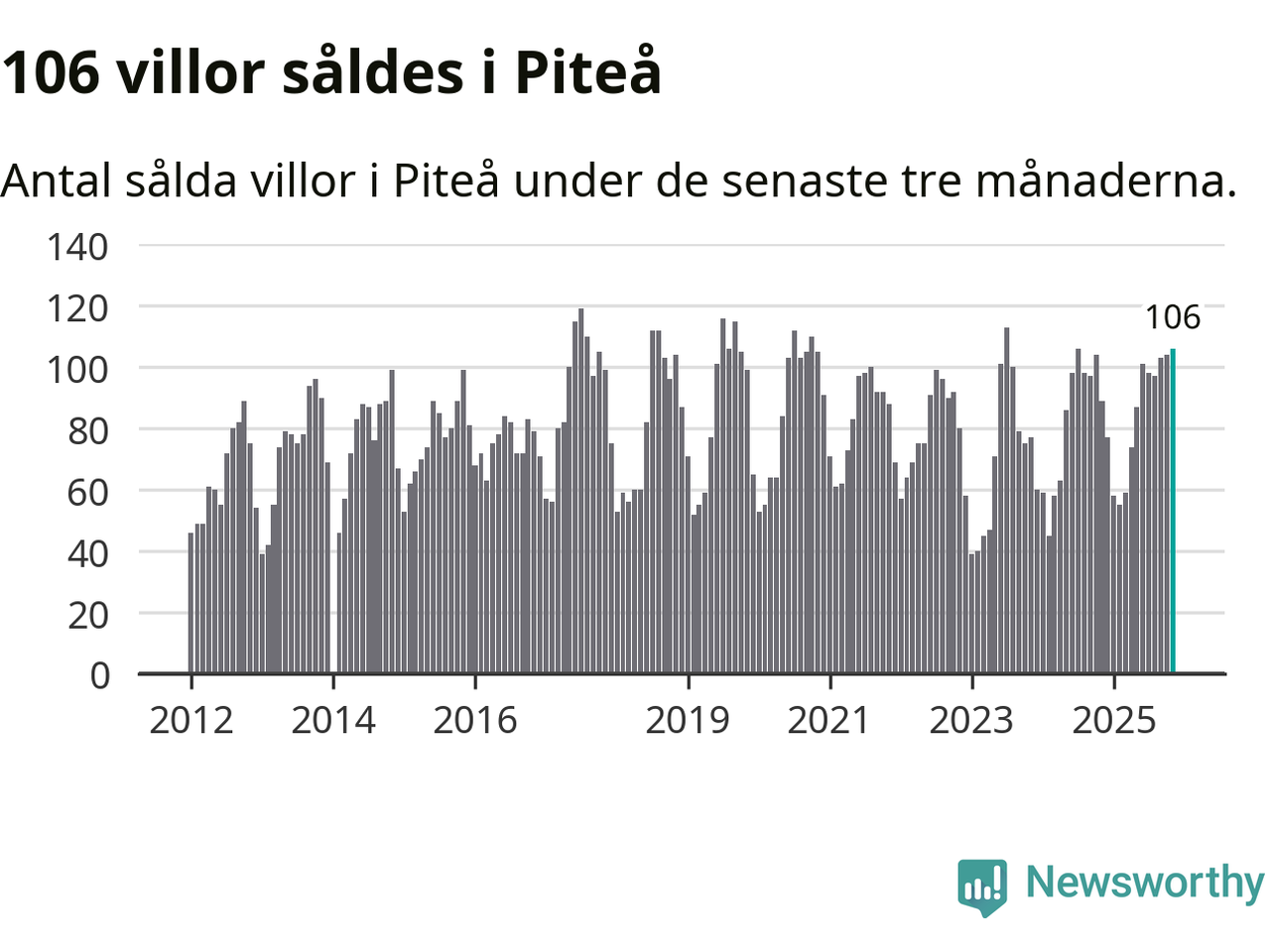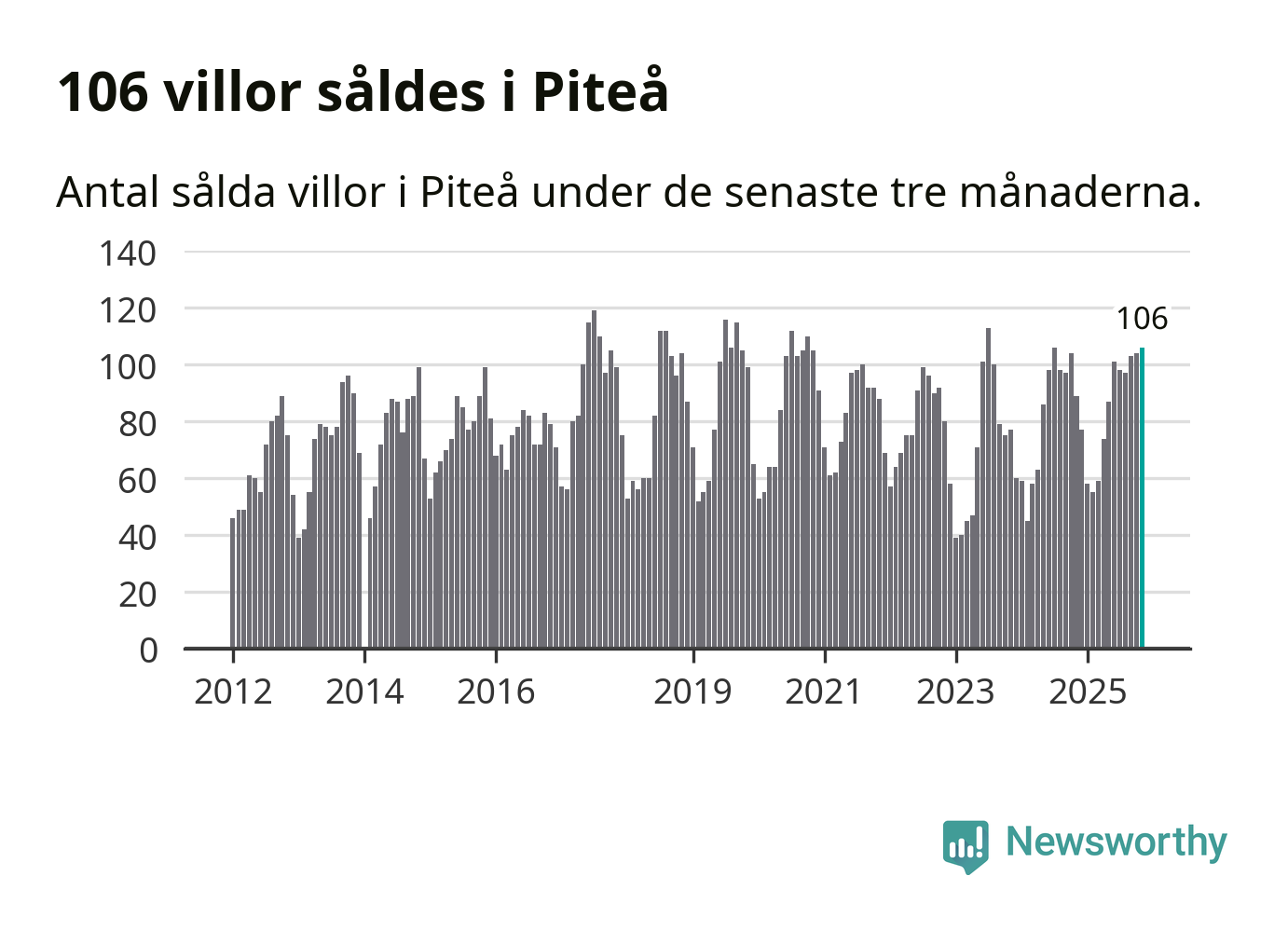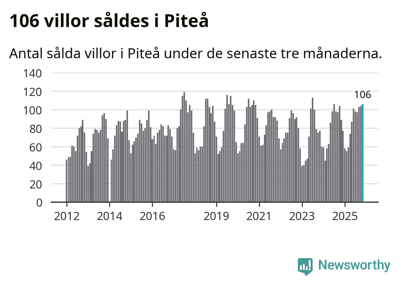 Sammanlagt såldes 106 villor i Piteå kommun mellan september och november till ett genomsnittligt pris på 2,3 miljoner kronor. I fjol gjordes 89 affärer vid den här tiden på året.