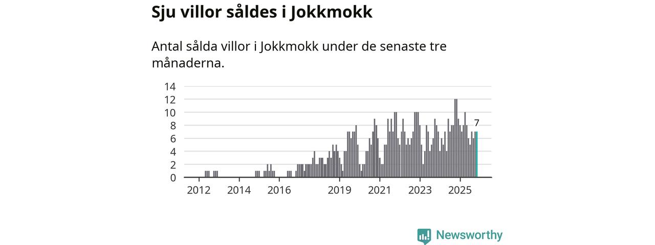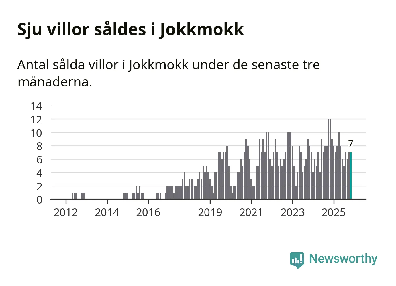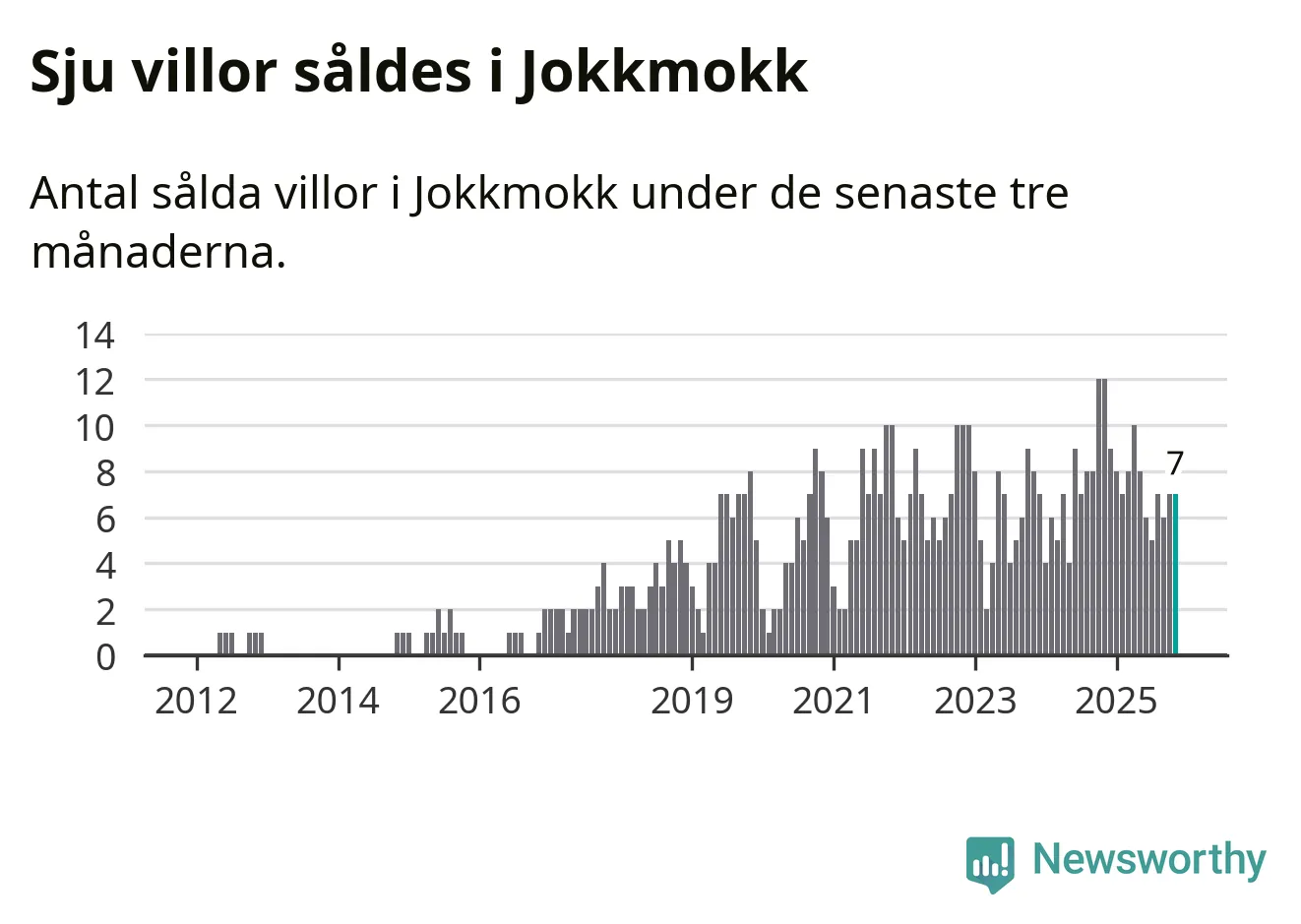 Mellan september och november gjordes sammanlagt sju affärer med villor i Jokkmokks kommun. Det kan jämföras med tolv vid motsvarande tid i fjol.