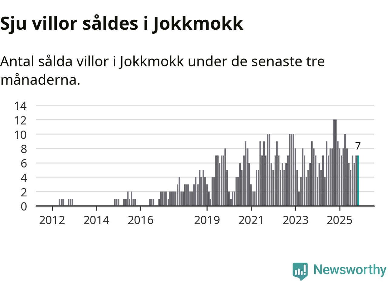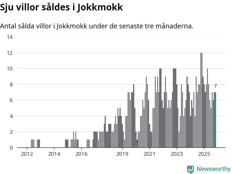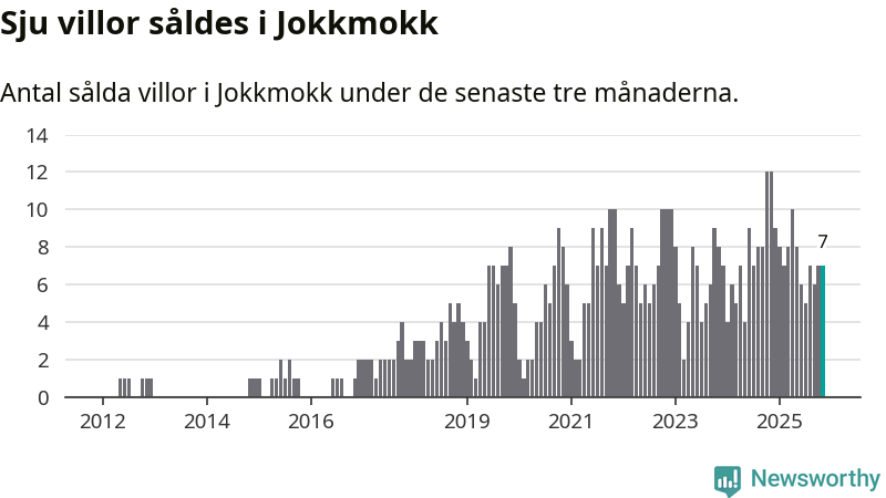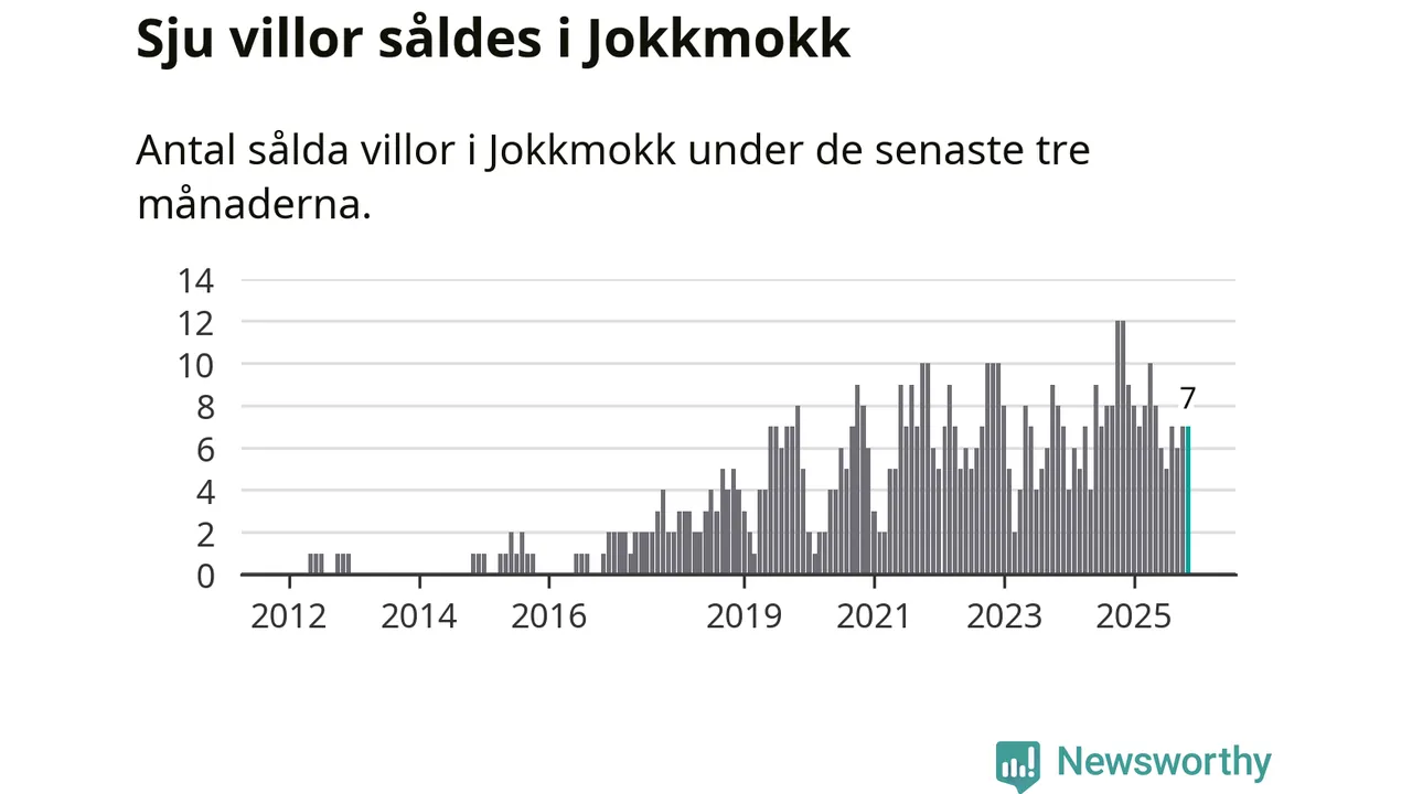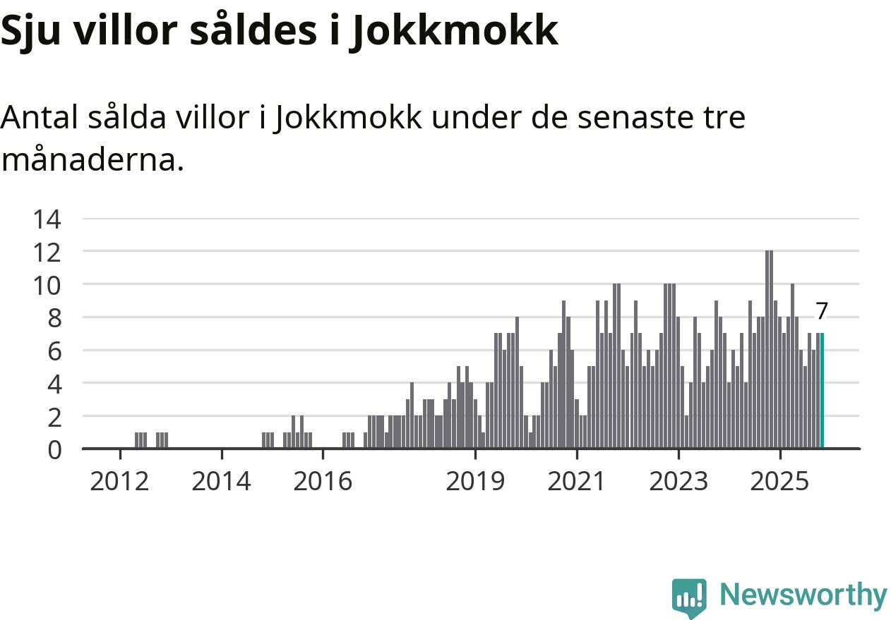 Mellan september och november gjordes sammanlagt sju affärer med villor i Jokkmokks kommun. Det kan jämföras med tolv vid motsvarande tid i fjol.