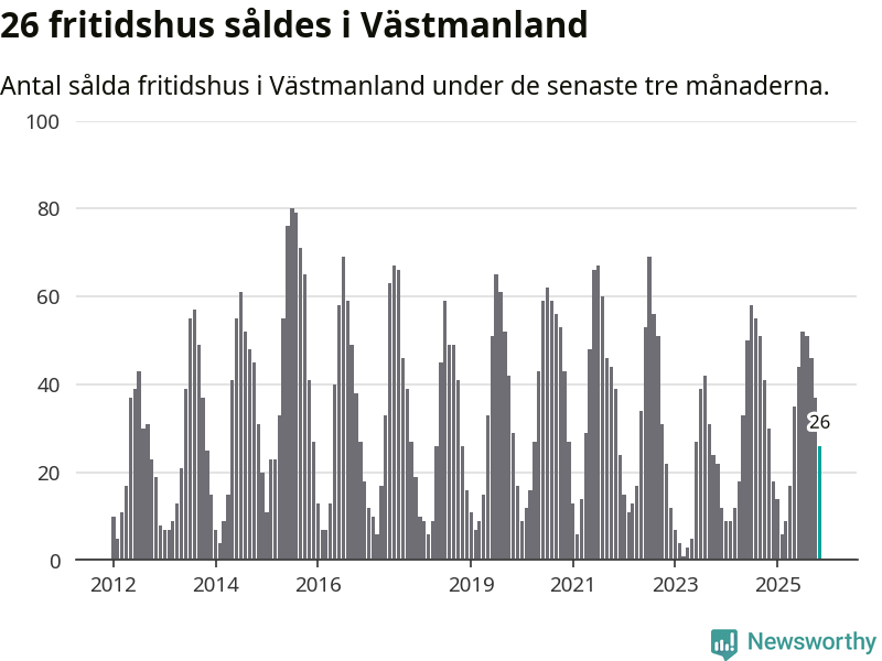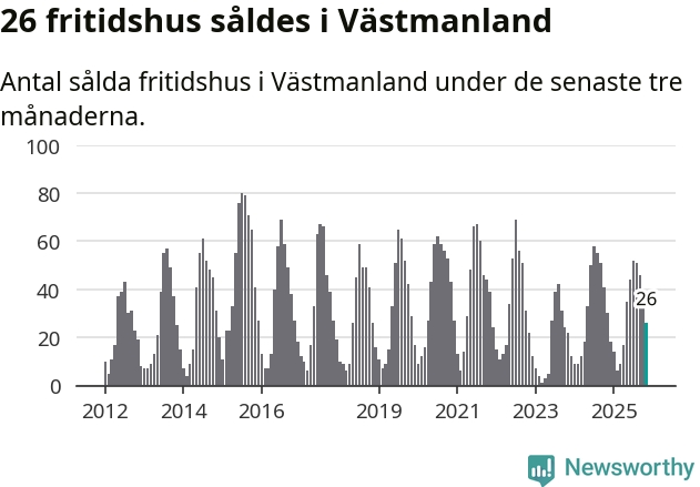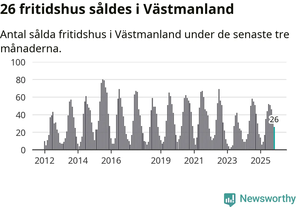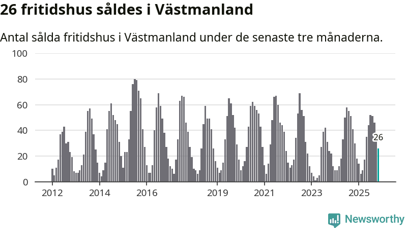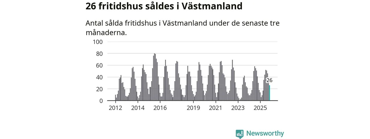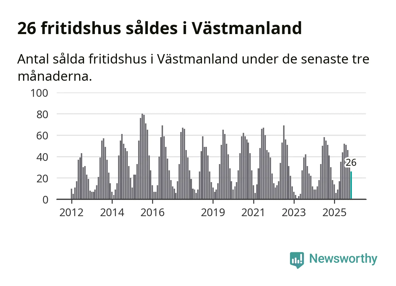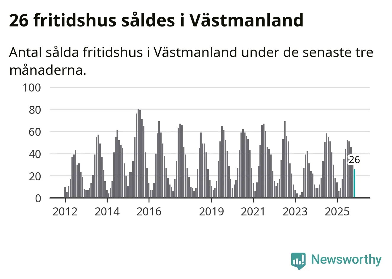 Sammanlagt såldes 26 fritidshus i Västmanlands län mellan september och november till ett genomsnittligt pris på 1,3 miljoner kronor. I fjol gjordes 30 affärer vid den här tiden på året.