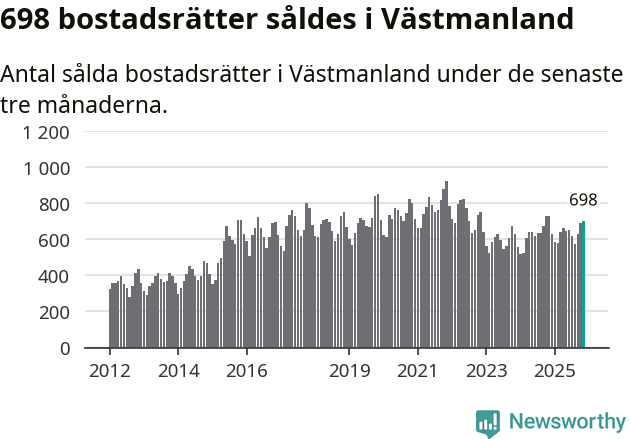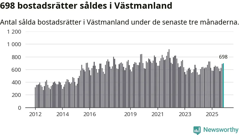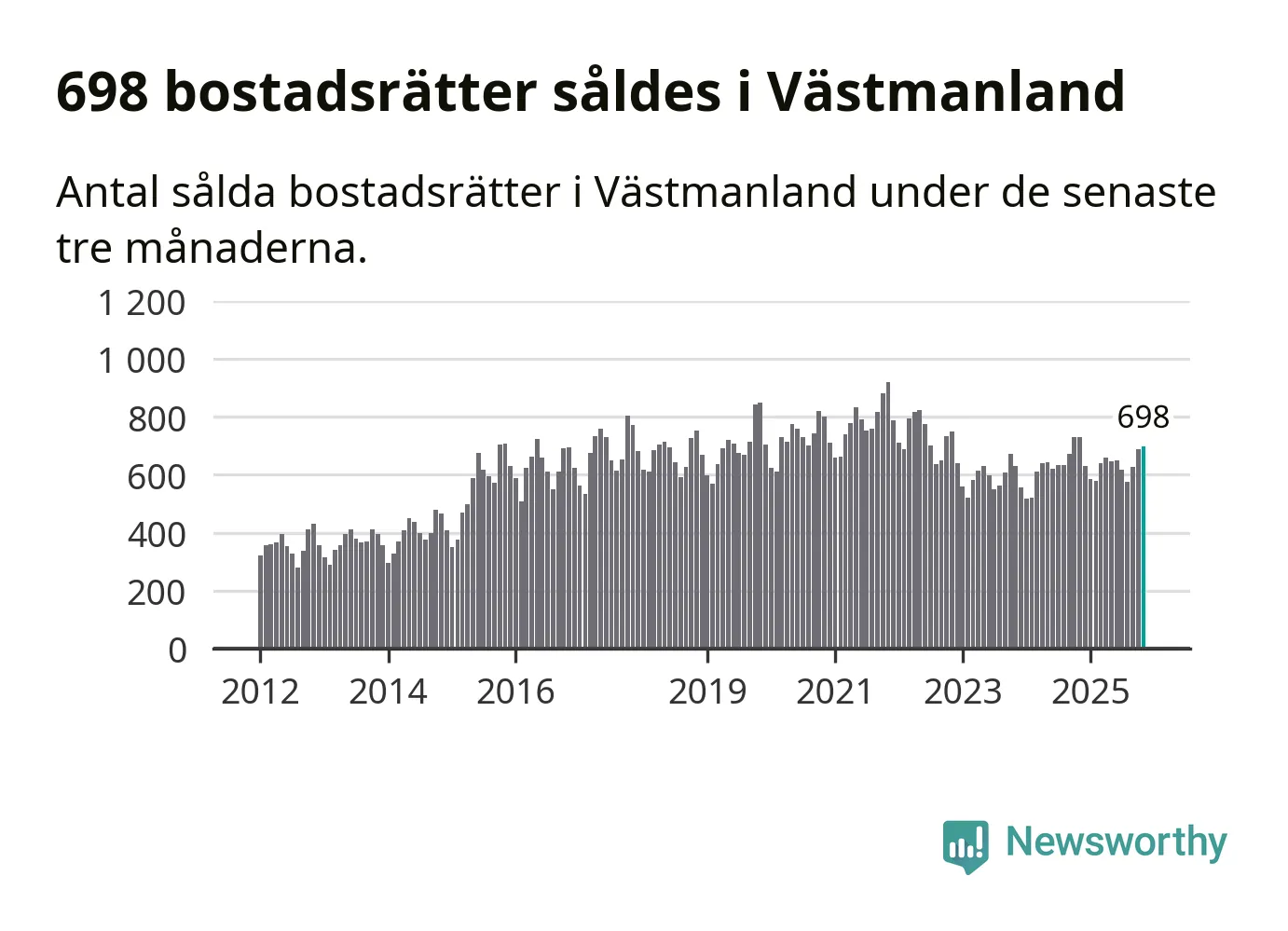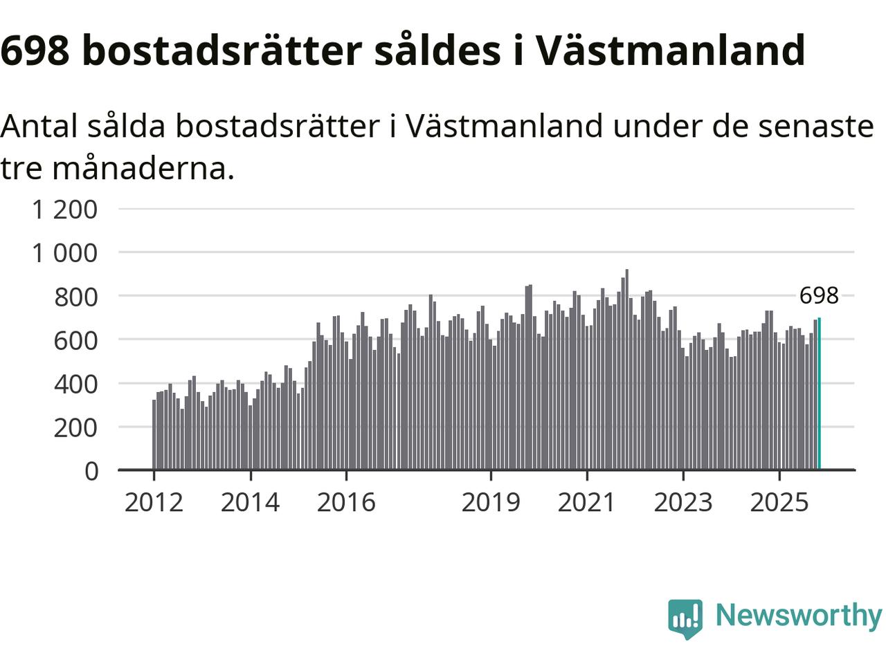 Sammanlagt såldes 698 bostadsrätter i Västmanlands län mellan september och november till ett genomsnittligt pris på 1,4 miljoner kronor. I fjol gjordes 729 affärer vid den här tiden på året.