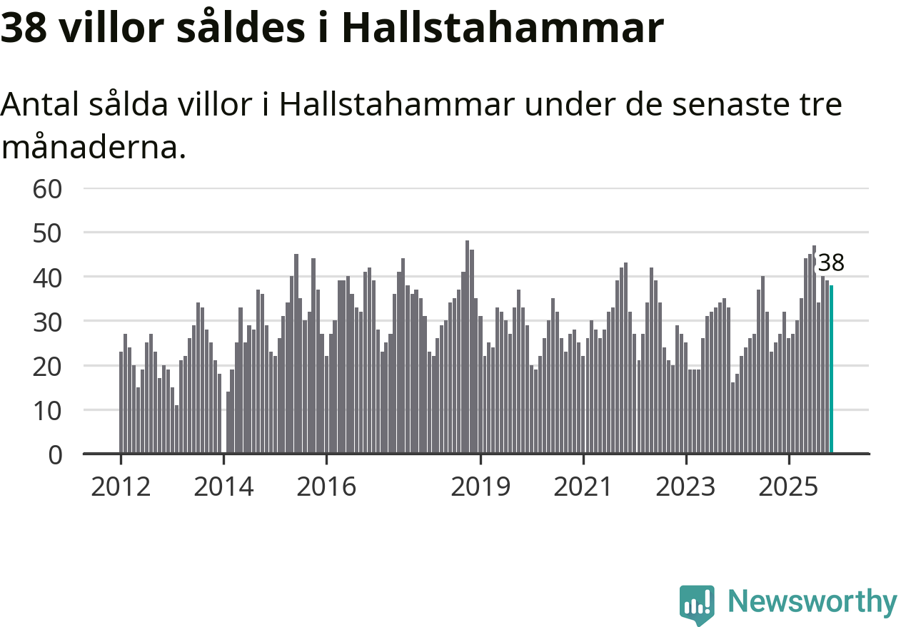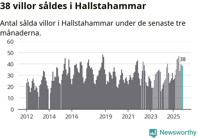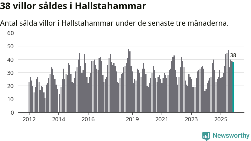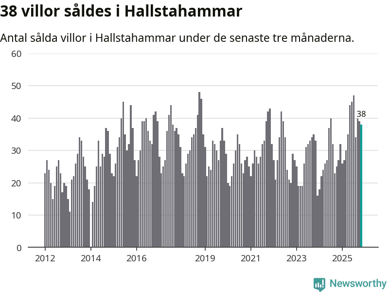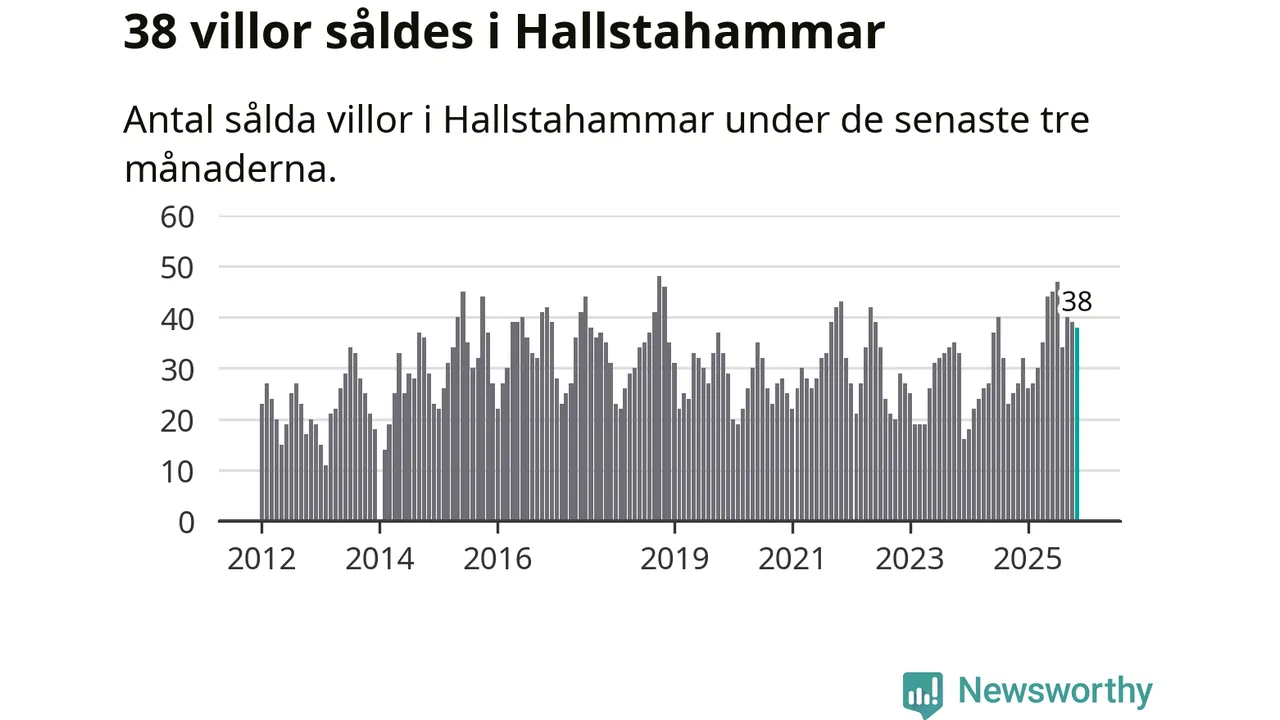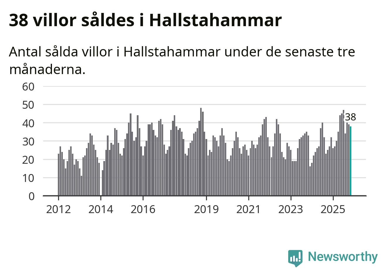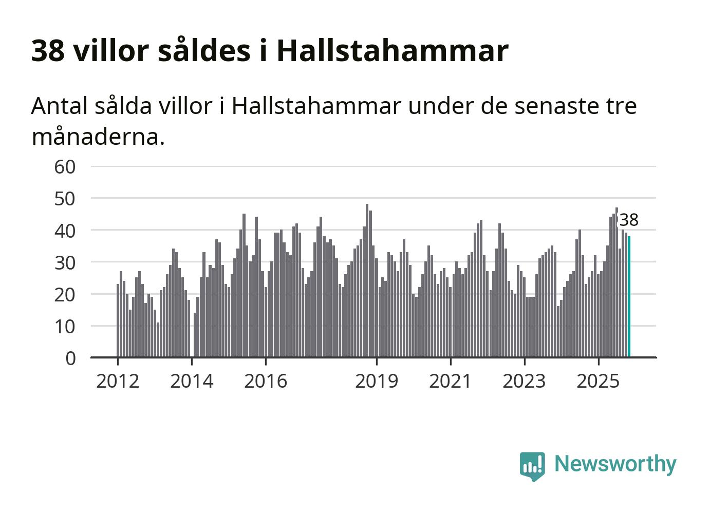 Mellan september och november gjordes sammanlagt 38 affärer med villor i Hallstahammars kommun. Det kan jämföras med 27 vid motsvarande tid i fjol.