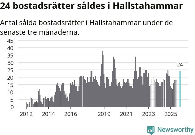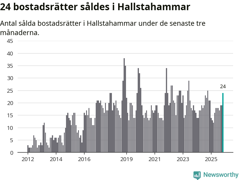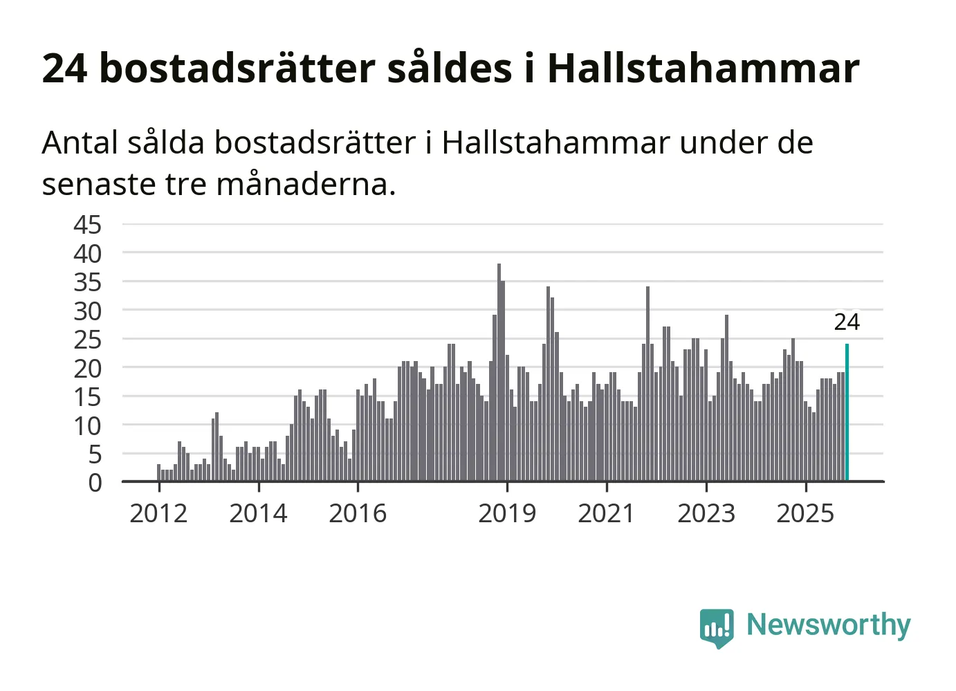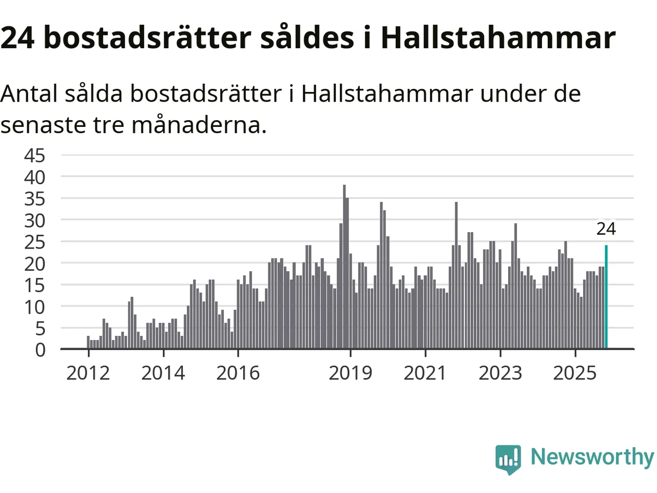 Mellan september och november gjordes sammanlagt 24 affärer med bostadsrätter i Hallstahammars kommun. Det kan jämföras med 21 vid motsvarande tid i fjol.