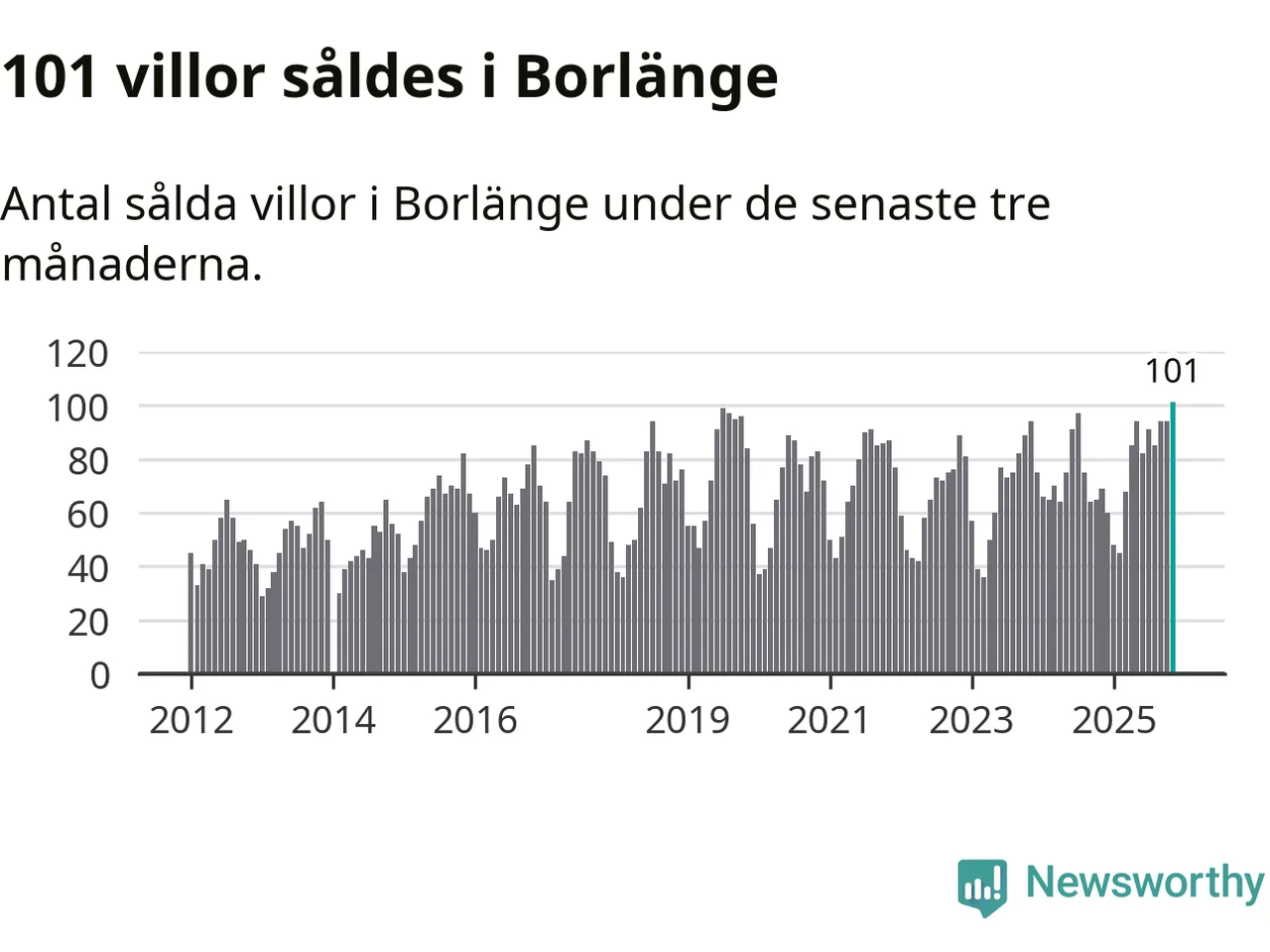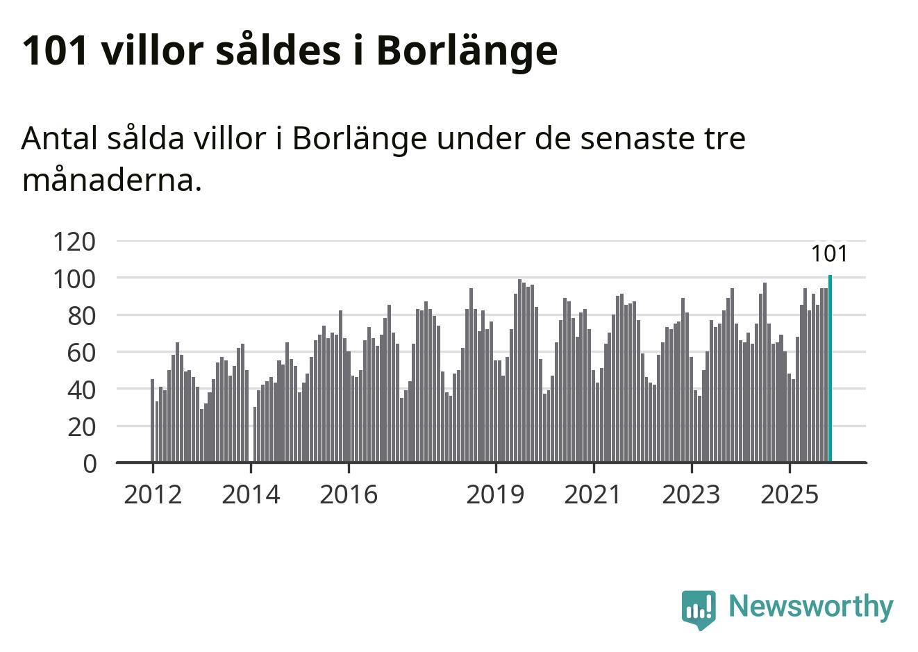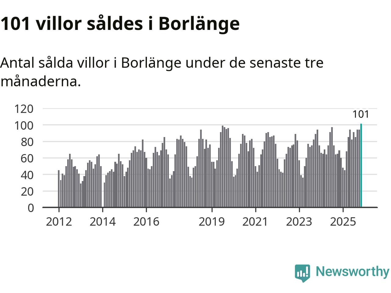 Mellan september och november såldes 101 villor i Borlänge kommun. Det är fler än någon tremånadersperiod sedan 2012.