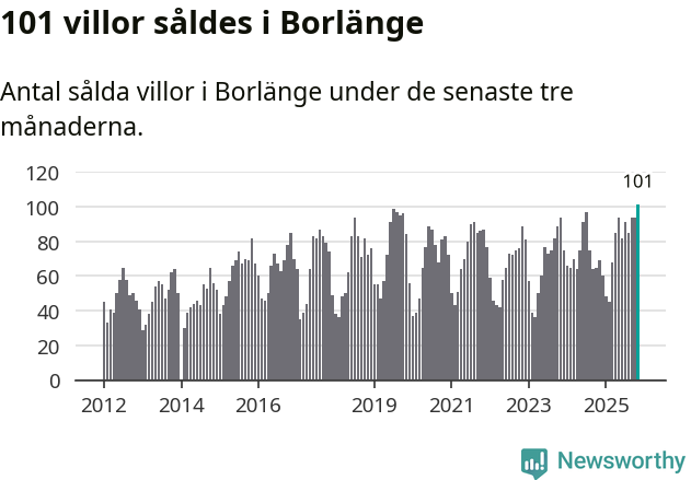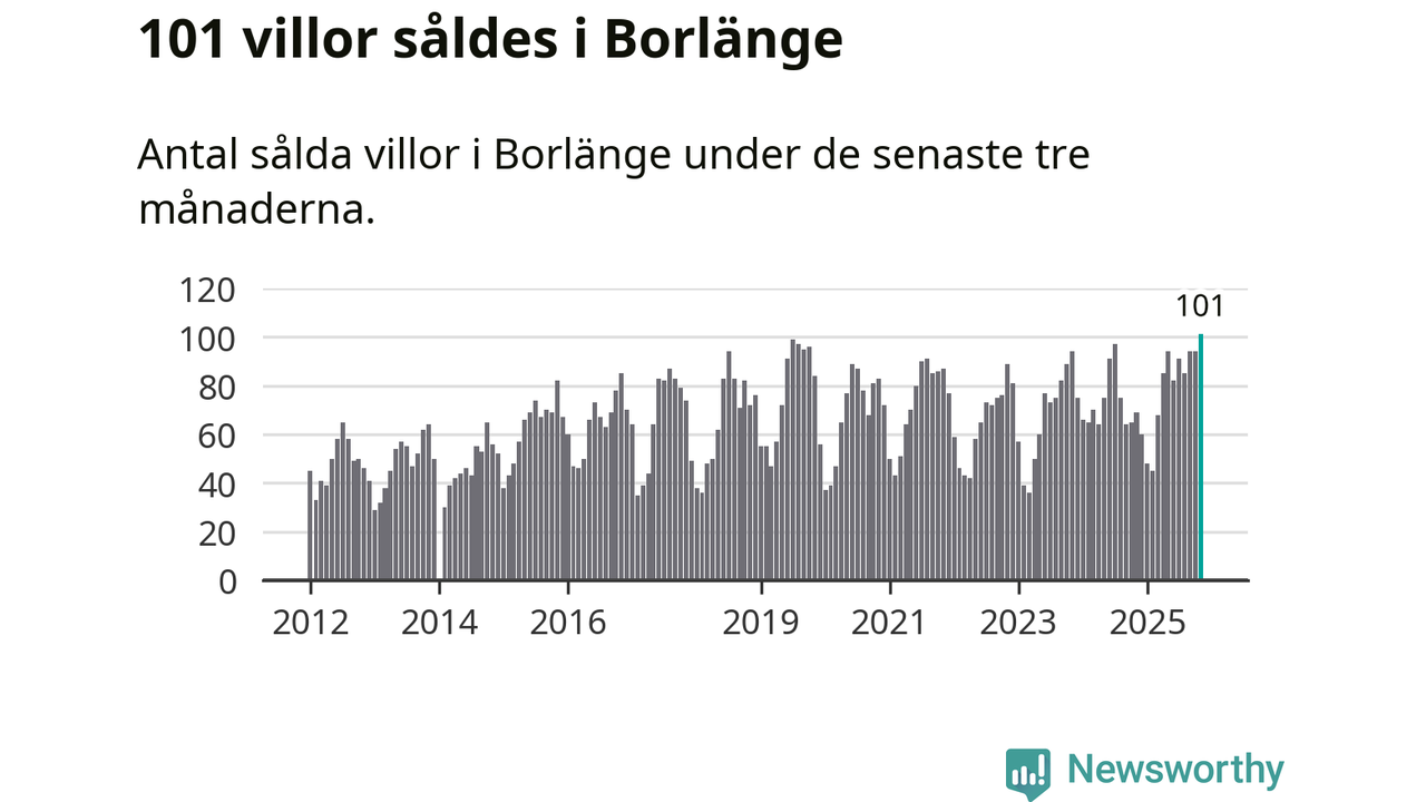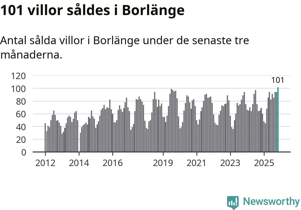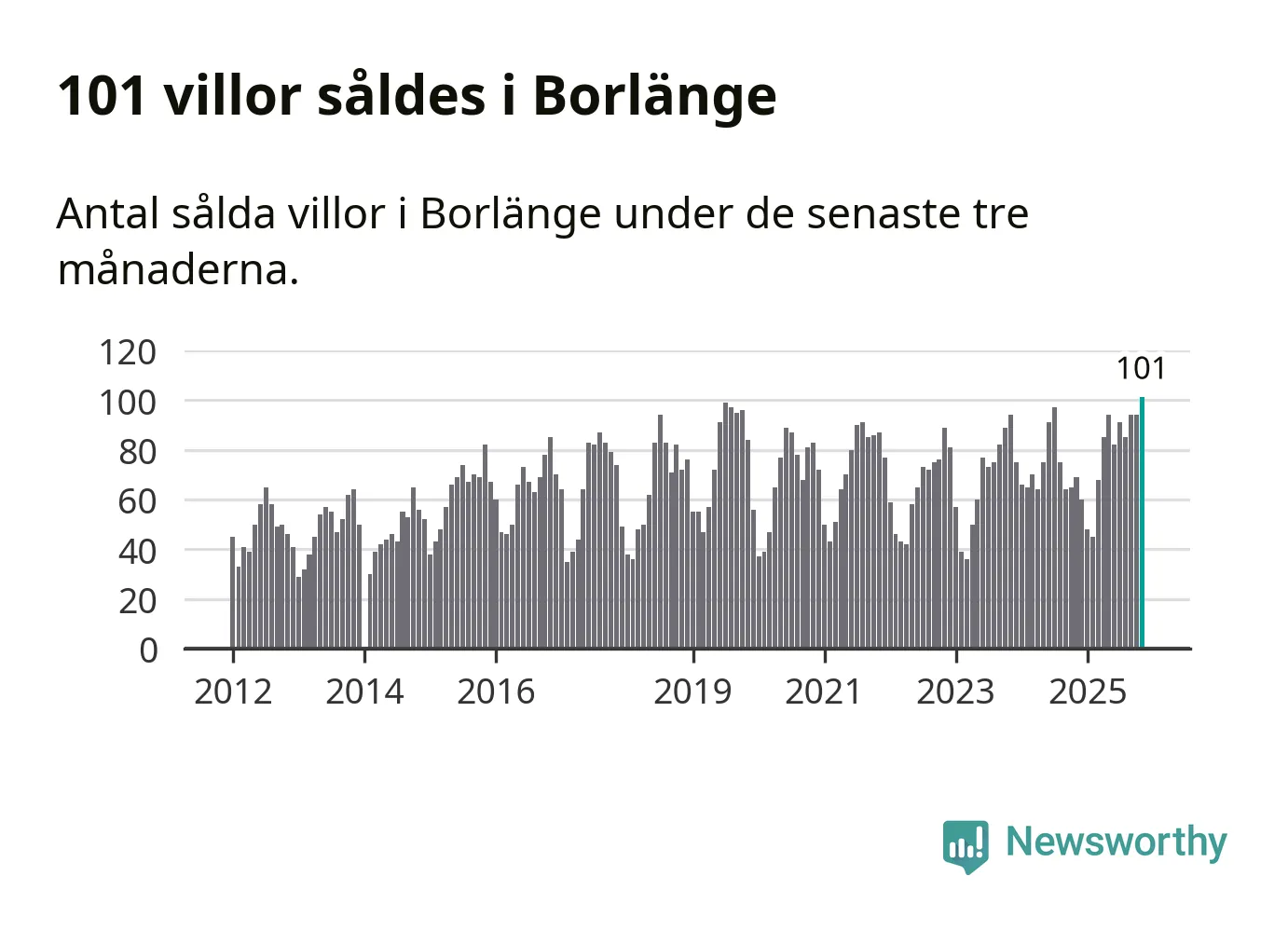 Mellan september och november såldes 101 villor i Borlänge kommun. Det är fler än någon tremånadersperiod sedan 2012.
