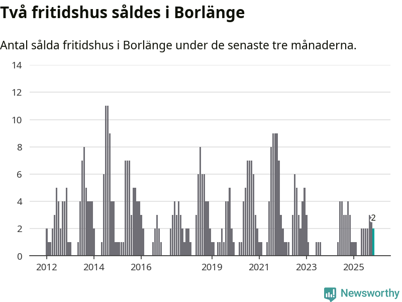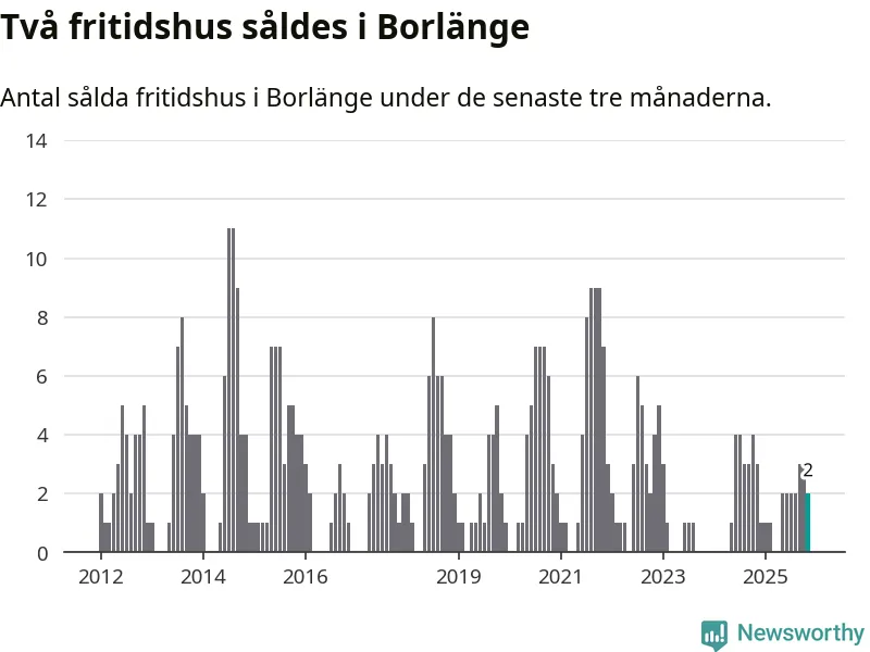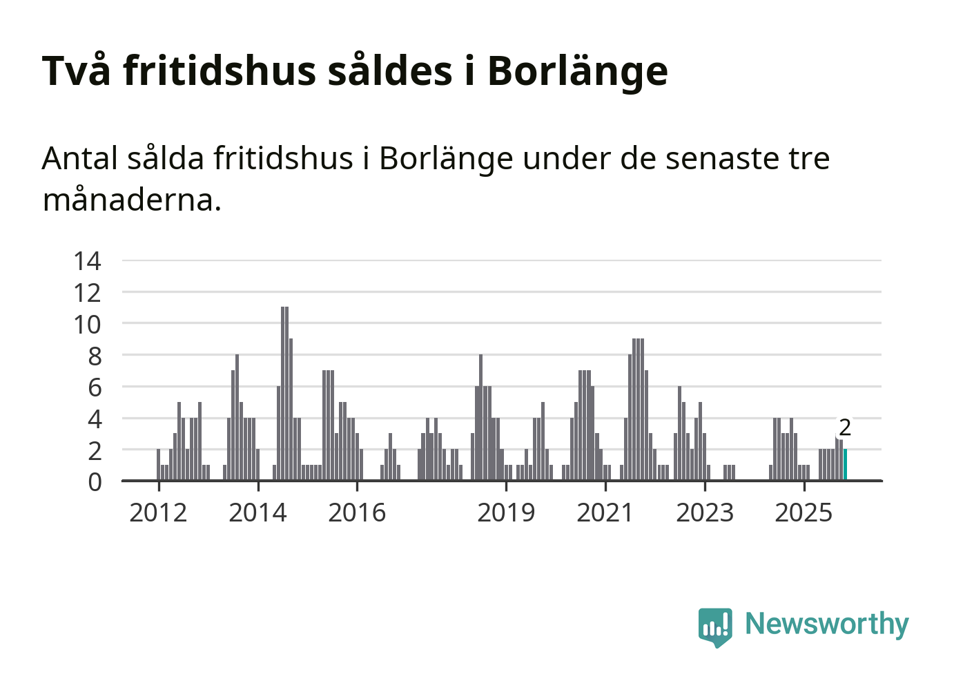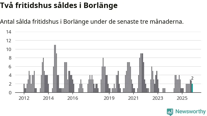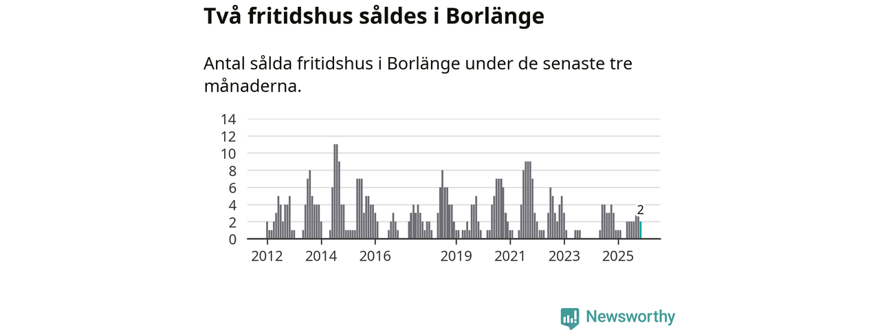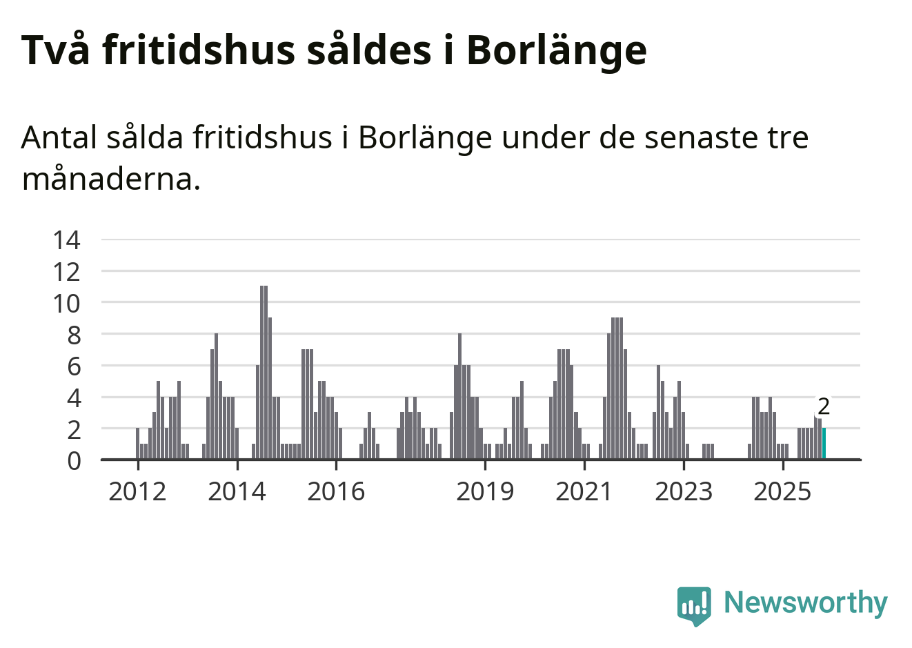 Mellan september och november gjordes sammanlagt två affärer med fritidshus i Borlänge kommun. Det kan jämföras med tre vid motsvarande tid i fjol.