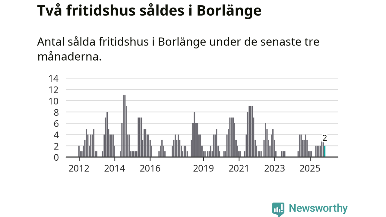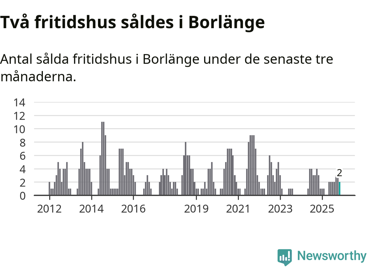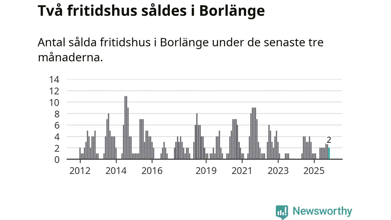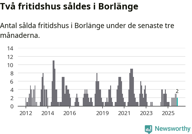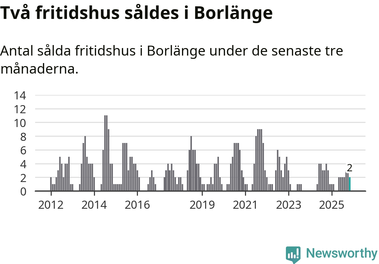 Mellan september och november gjordes sammanlagt två affärer med fritidshus i Borlänge kommun. Det kan jämföras med tre vid motsvarande tid i fjol.