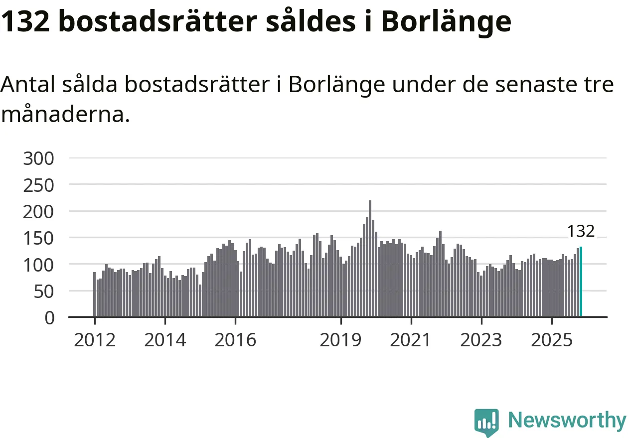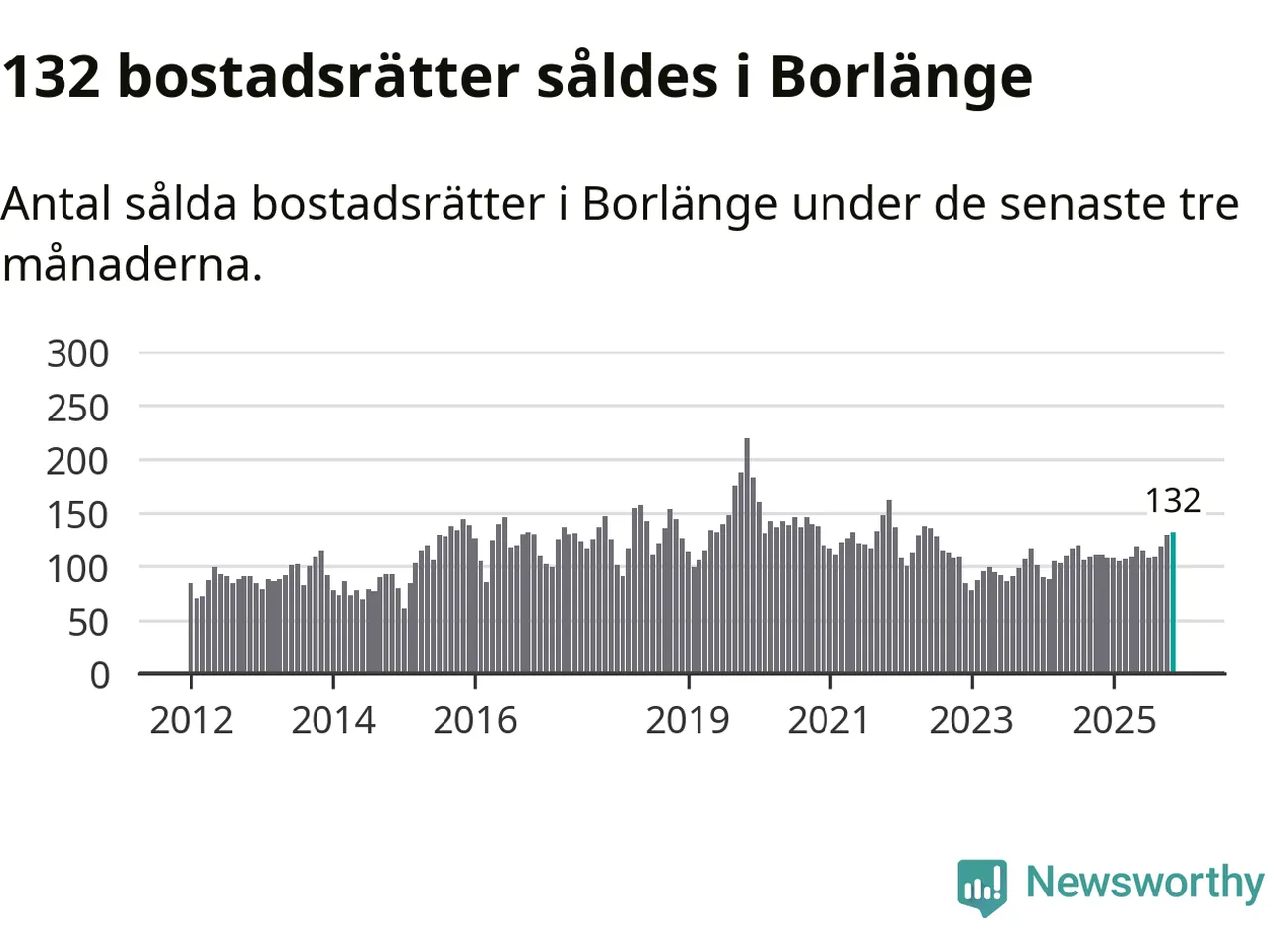 Mellan september och november såldes 132 bostadsrätter i Borlänge kommun. Det är fler än någon tremånadersperiod sedan 2022.