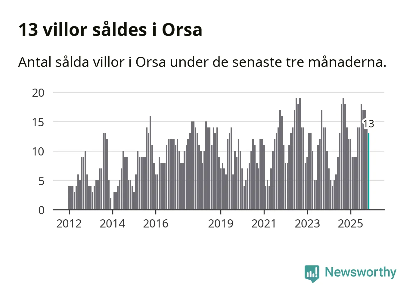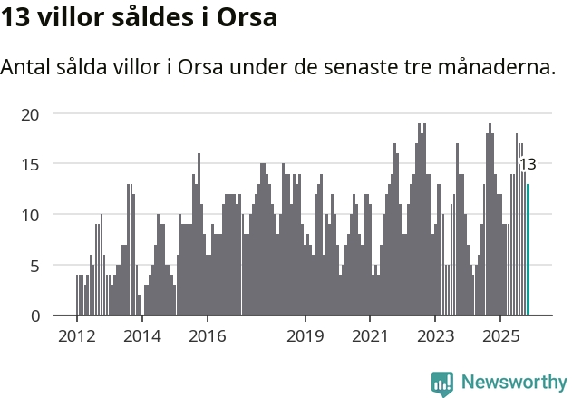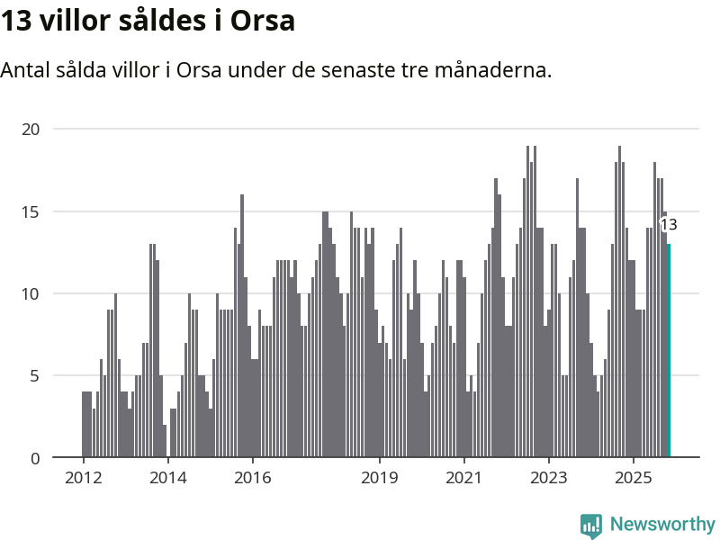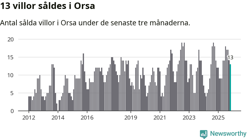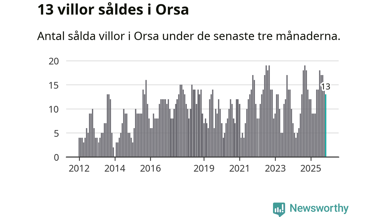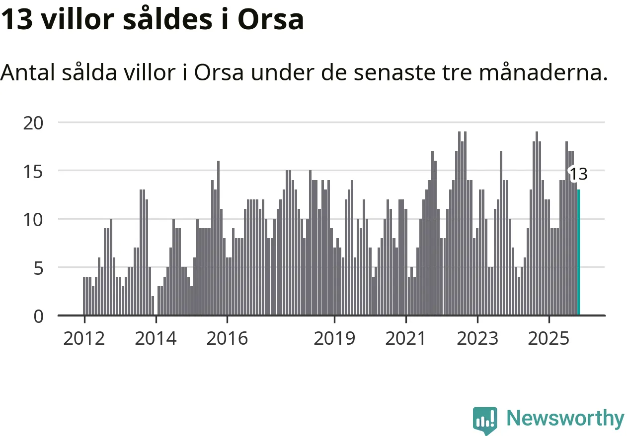 Mellan september och november gjordes sammanlagt 13 affärer med villor i Orsa kommun. Det kan jämföras med 14 vid motsvarande tid i fjol.