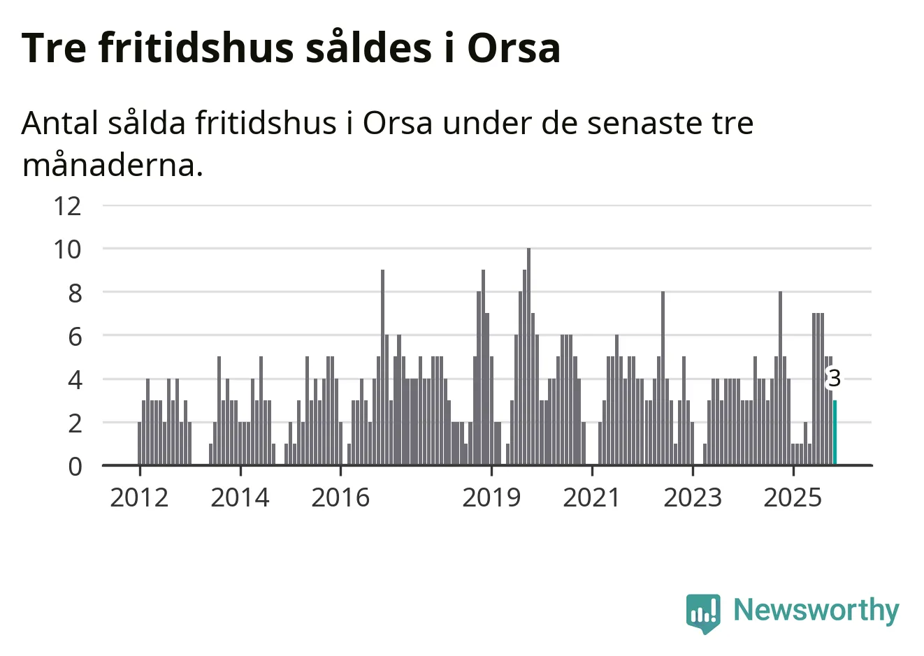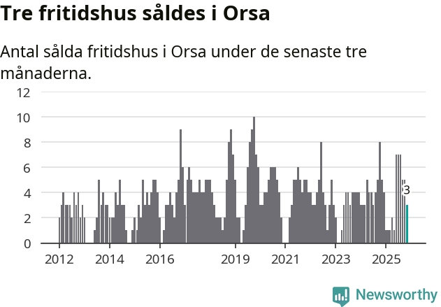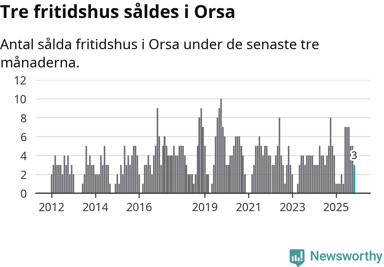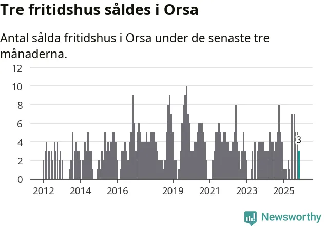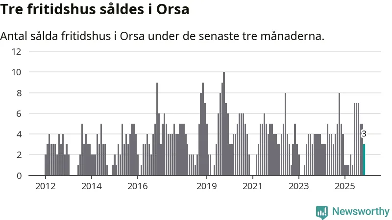 Mellan september och november gjordes sammanlagt tre affärer med fritidshus i Orsa kommun. Det kan jämföras med fem vid motsvarande tid i fjol.