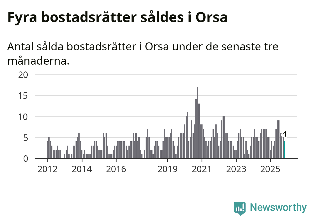 Graf: Antal sålda bostadsrätter i Orsa kommun