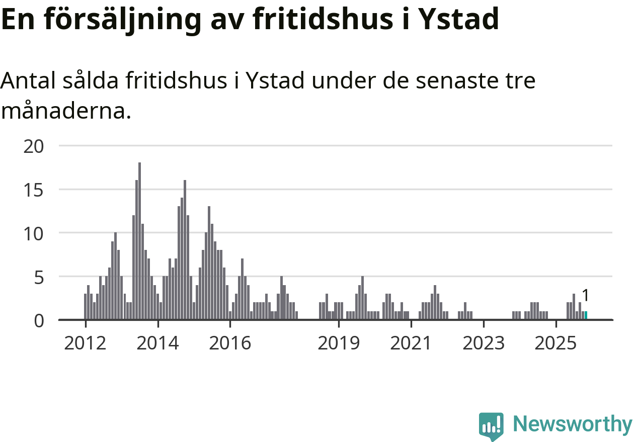Mellan september och november gjordes sammanlagt en affär med fritidshus i Ystads kommun.