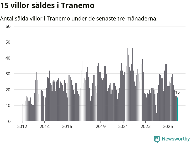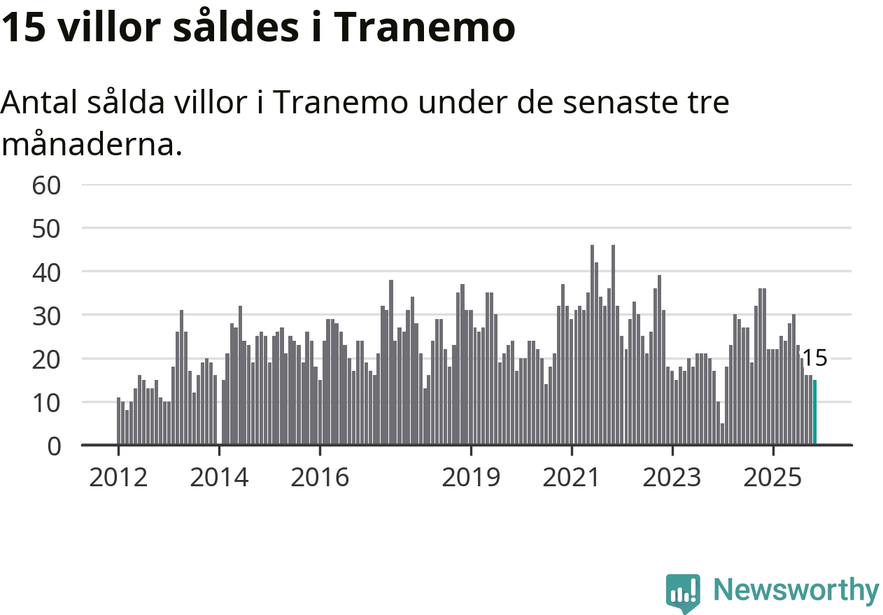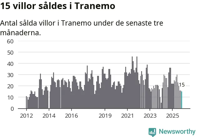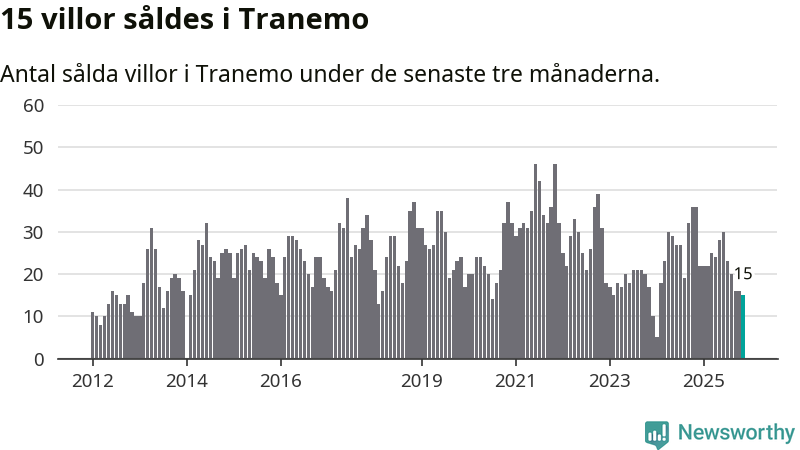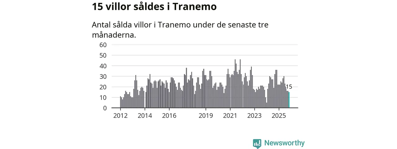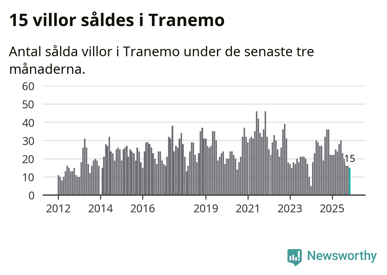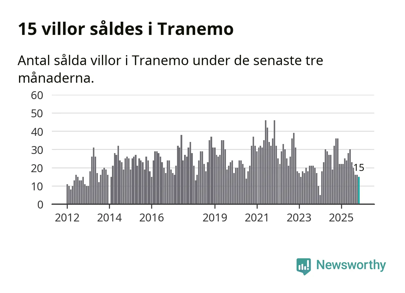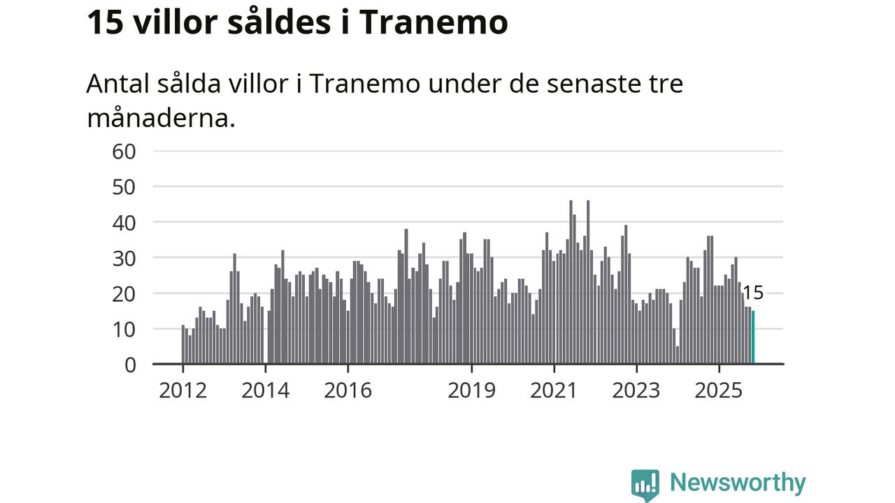 Mellan september och november gjordes sammanlagt 15 affärer med villor i Tranemo kommun. Det kan jämföras med 36 vid motsvarande tid i fjol.