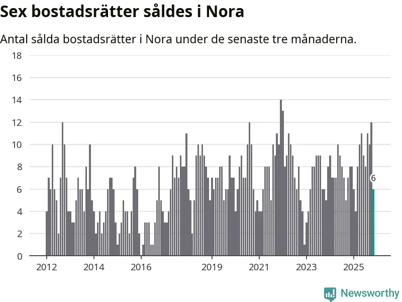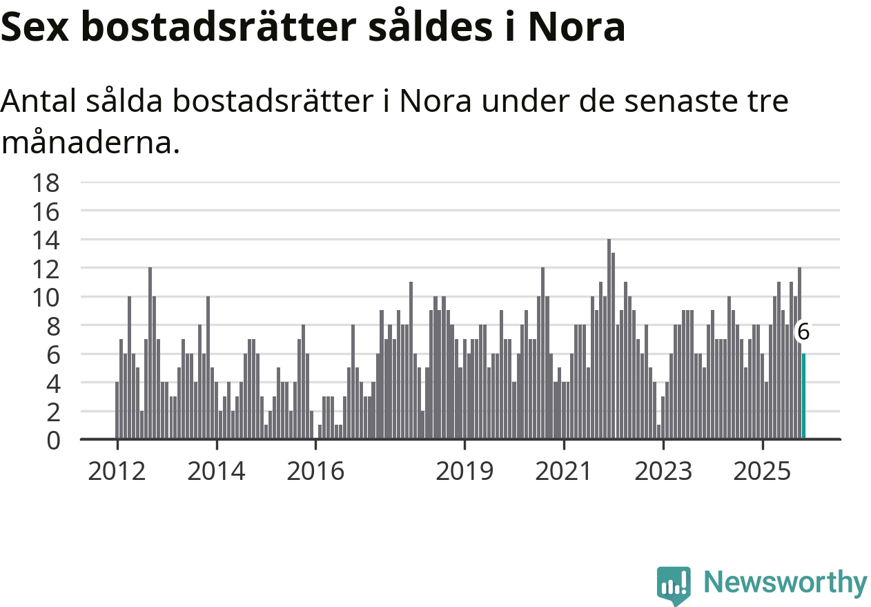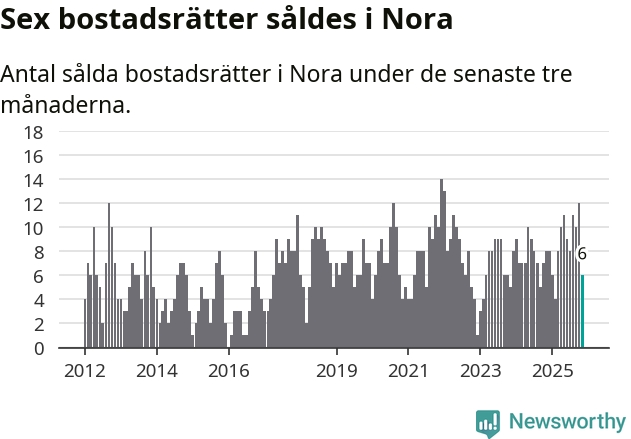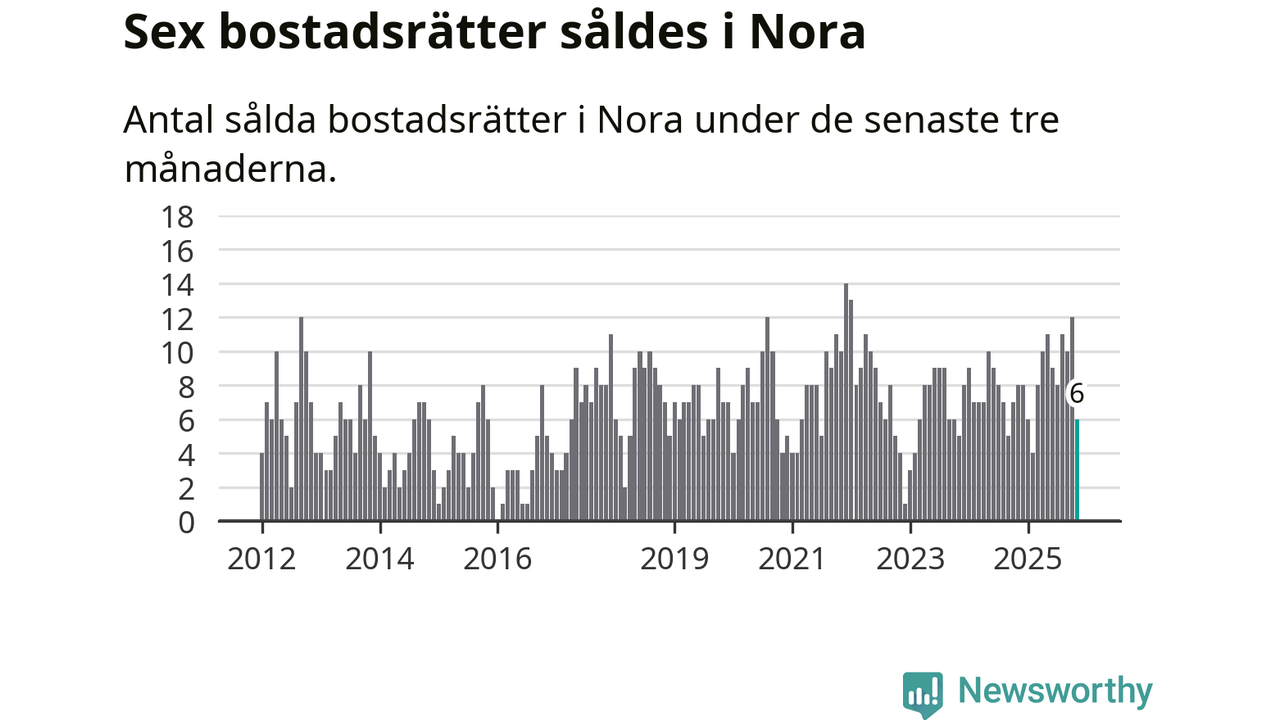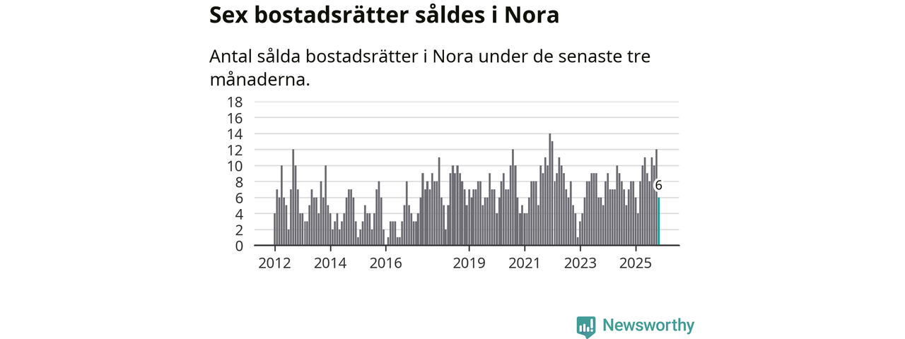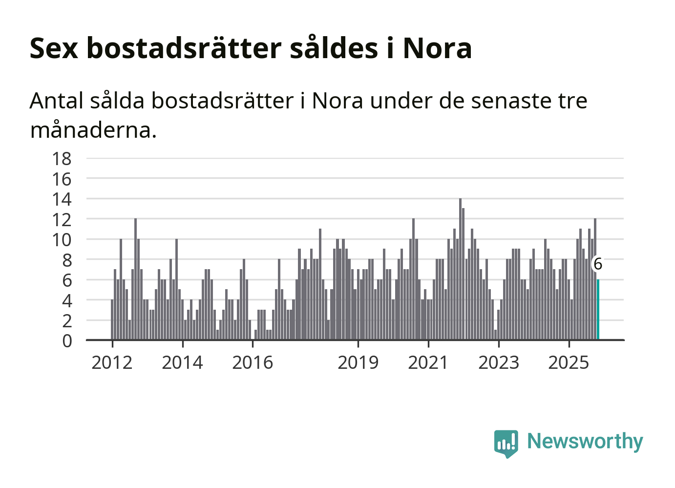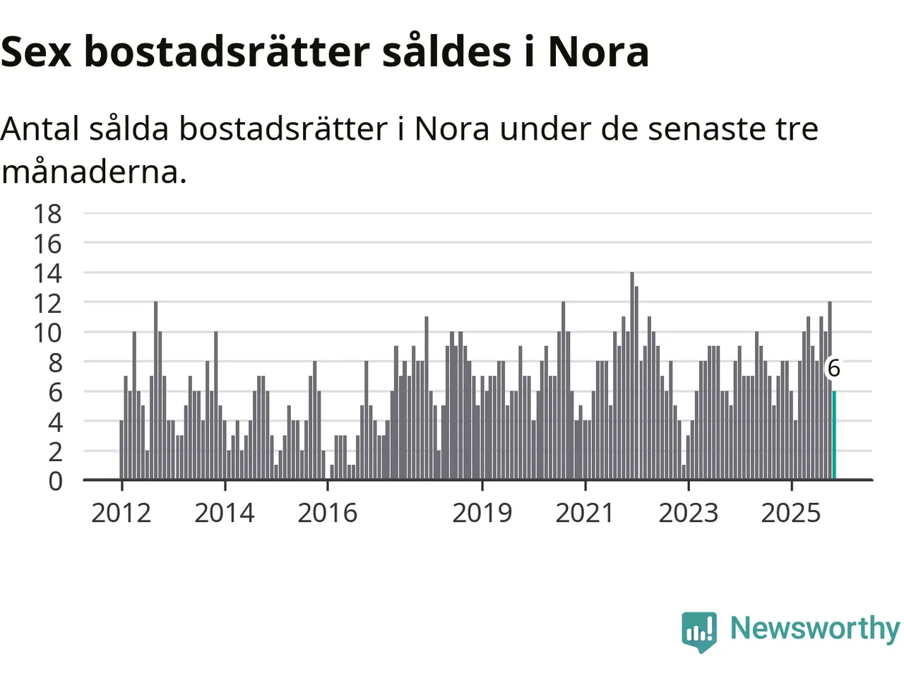 Mellan september och november gjordes sammanlagt sex affärer med bostadsrätter i Nora kommun. Det kan jämföras med åtta vid motsvarande tid i fjol.