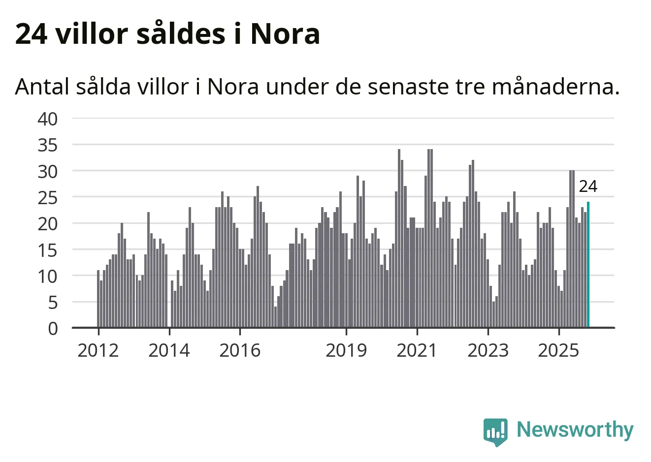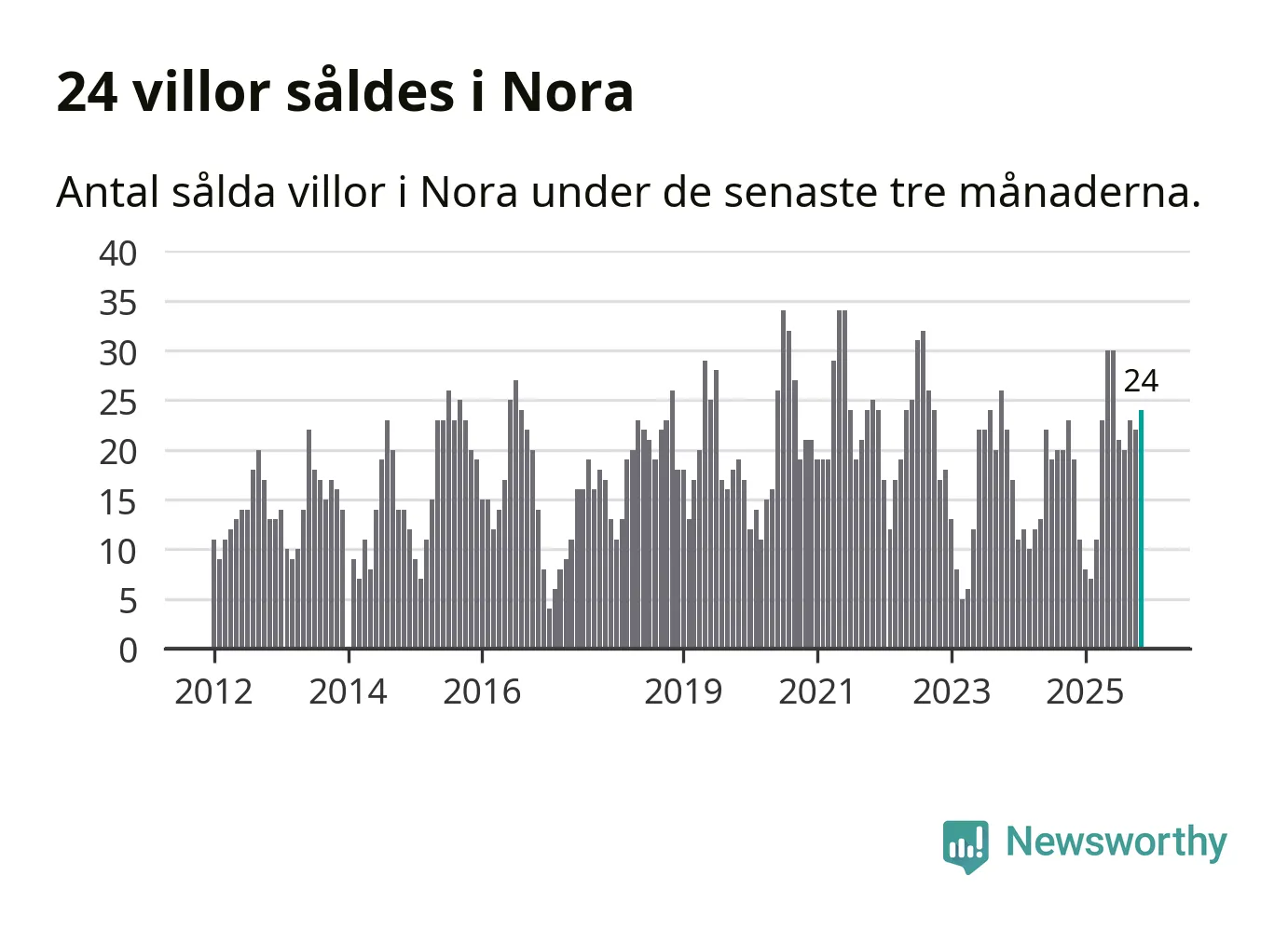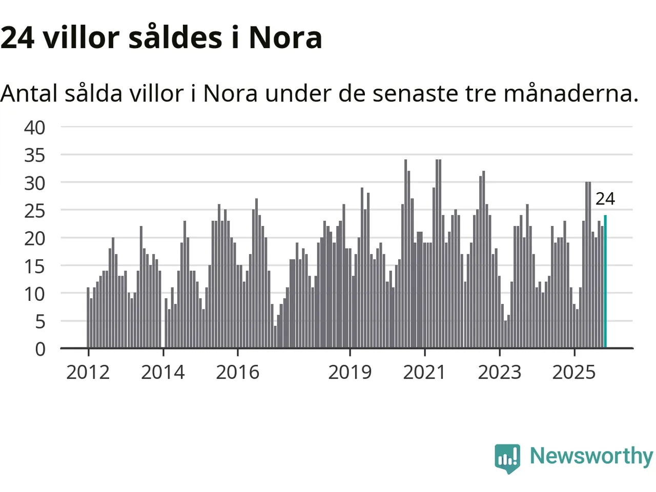 Mellan september och november gjordes sammanlagt 24 affärer med villor i Nora kommun. Det kan jämföras med 19 vid motsvarande tid i fjol.