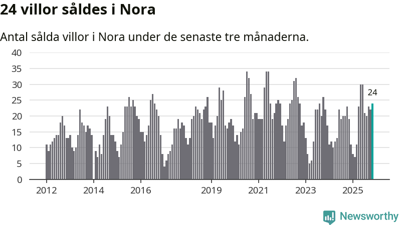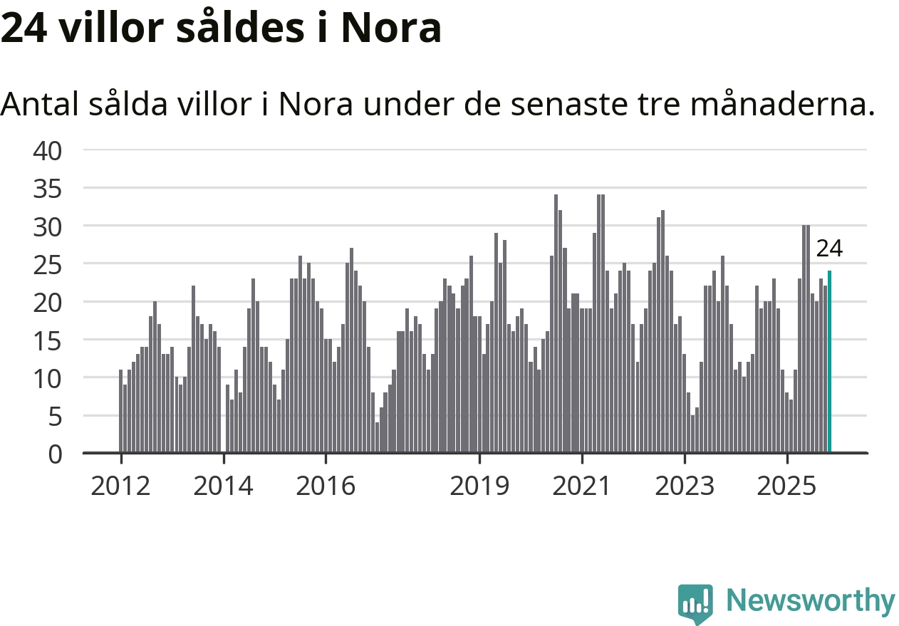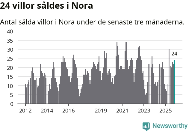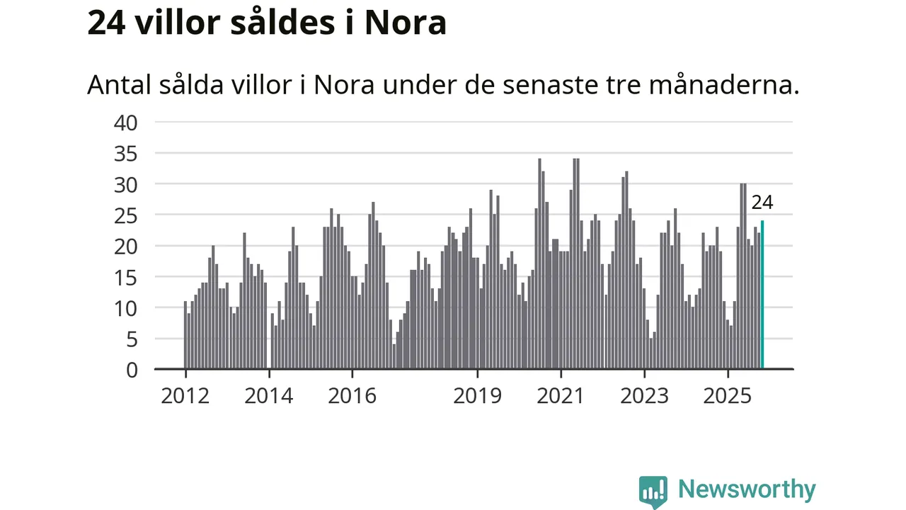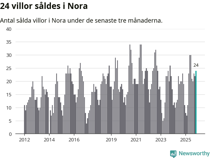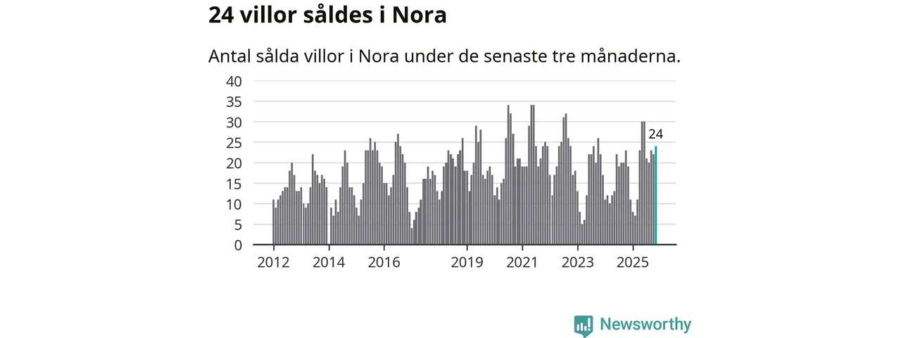 Mellan september och november gjordes sammanlagt 24 affärer med villor i Nora kommun. Det kan jämföras med 19 vid motsvarande tid i fjol.