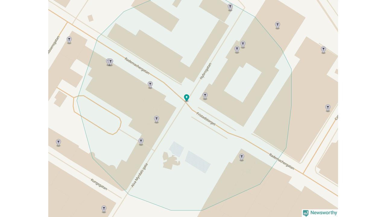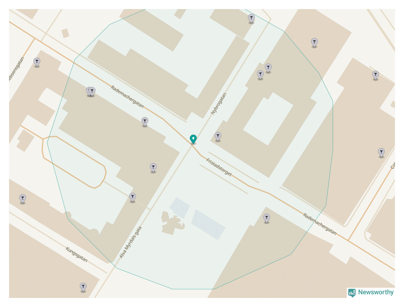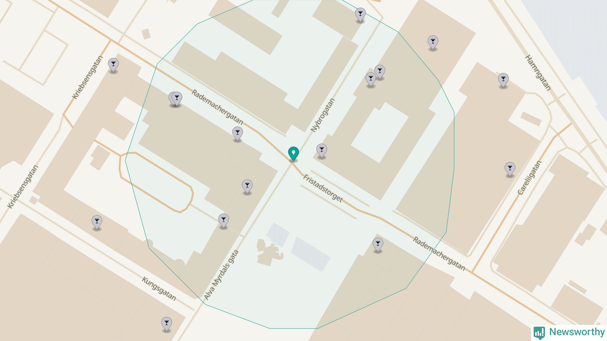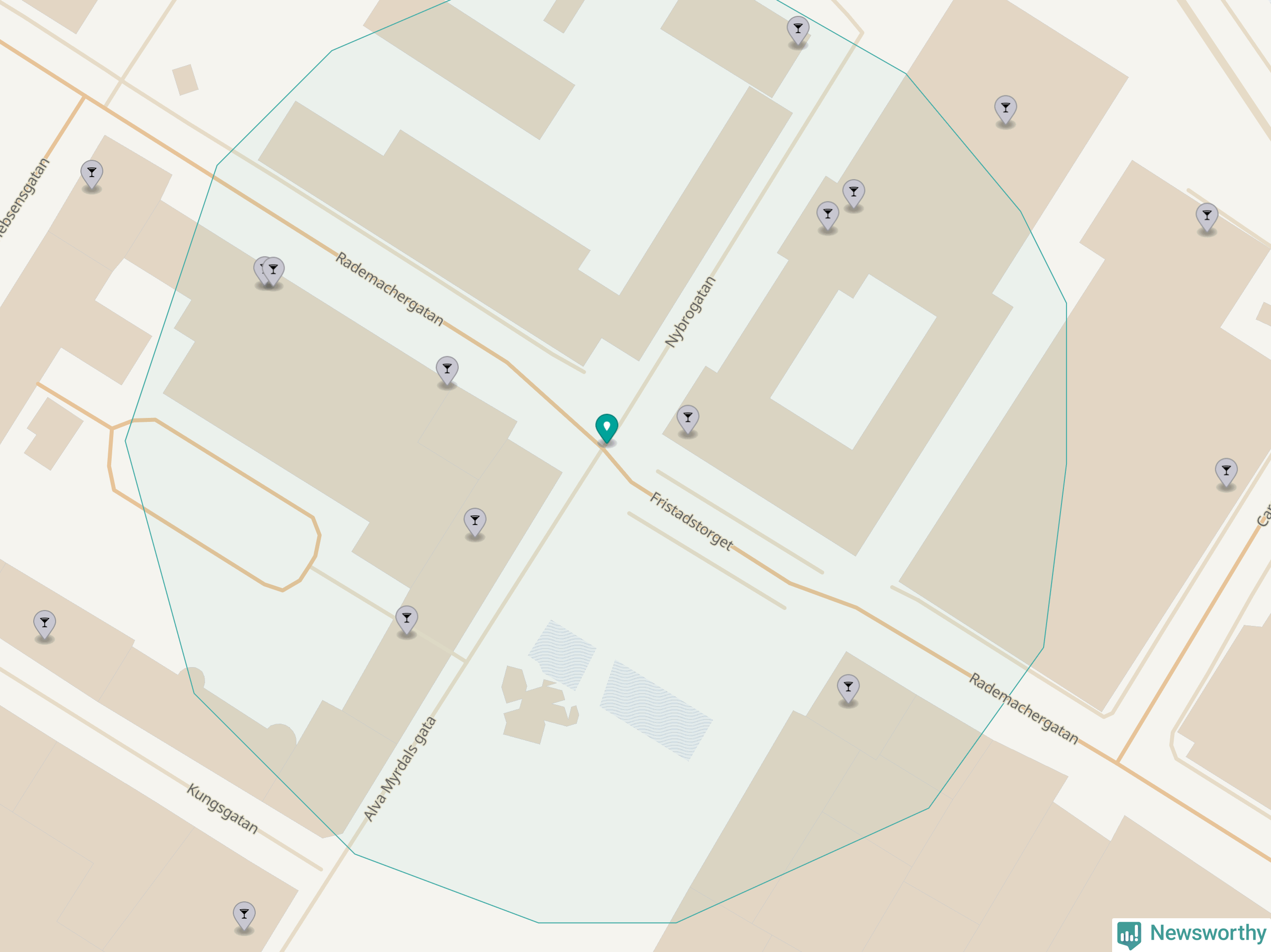 Om du står på Fristadstorget har du sisådär tio krogar, restauranger eller hotell med serveringstillstånd inom en radie på 100 meter. Det är den krogtätaste platsen i Eskilstuna kommun och den krogtätaste platsen i Södermanland.
