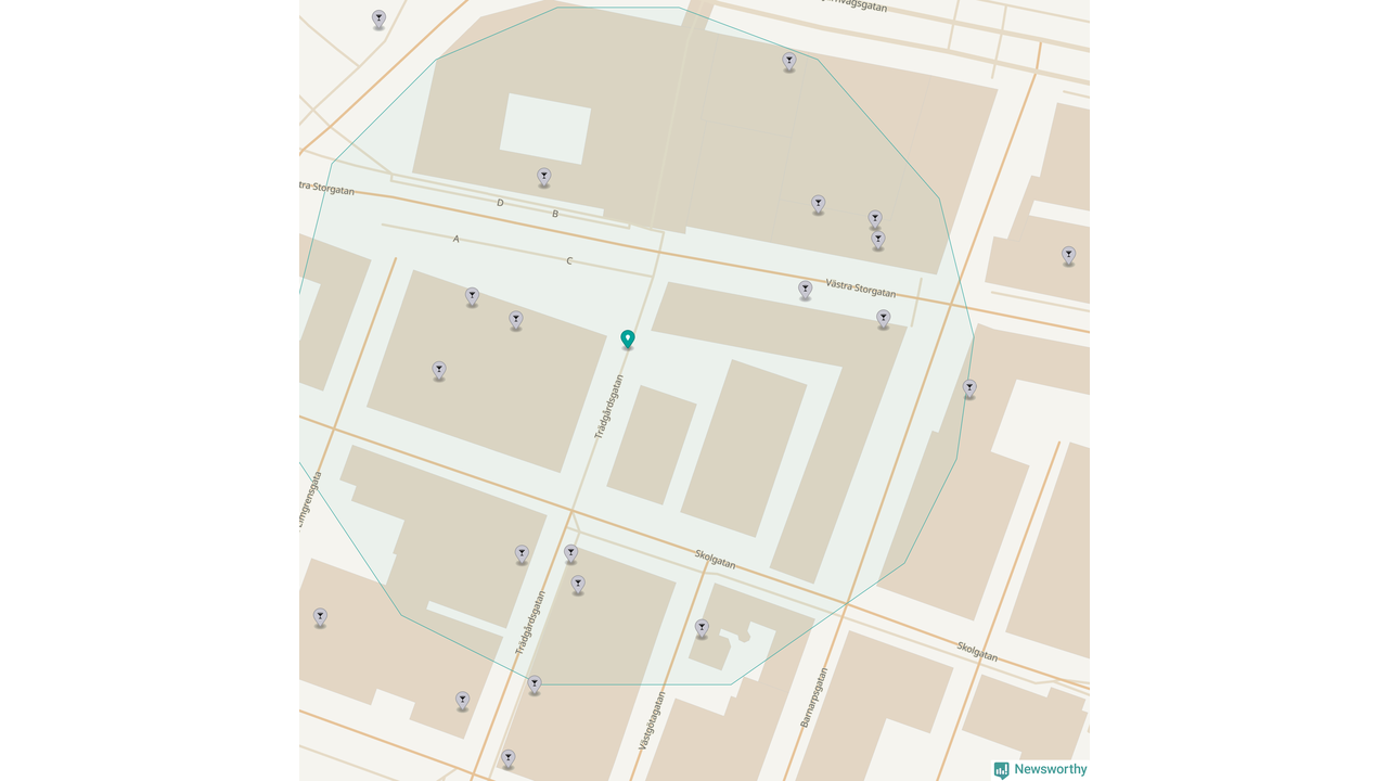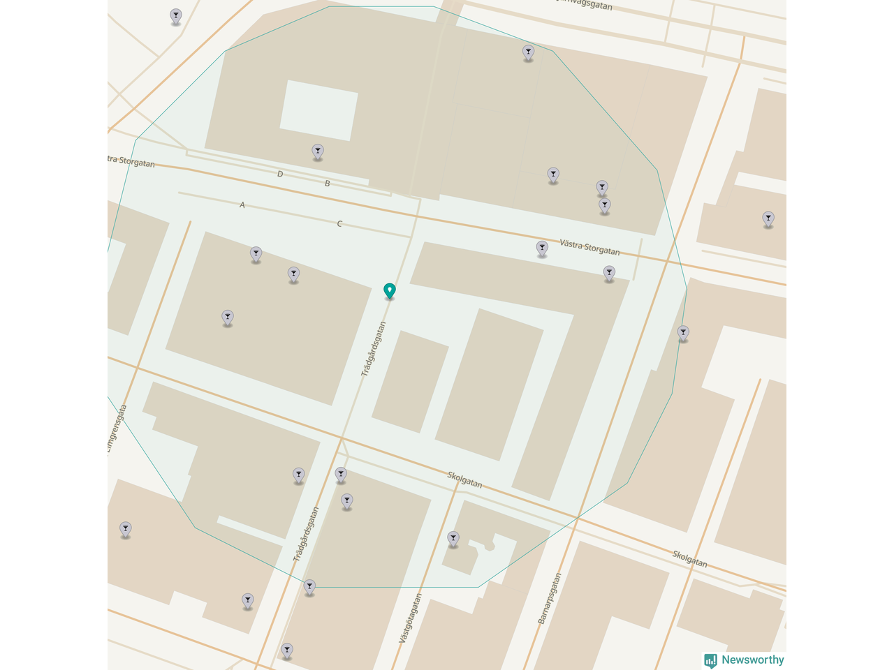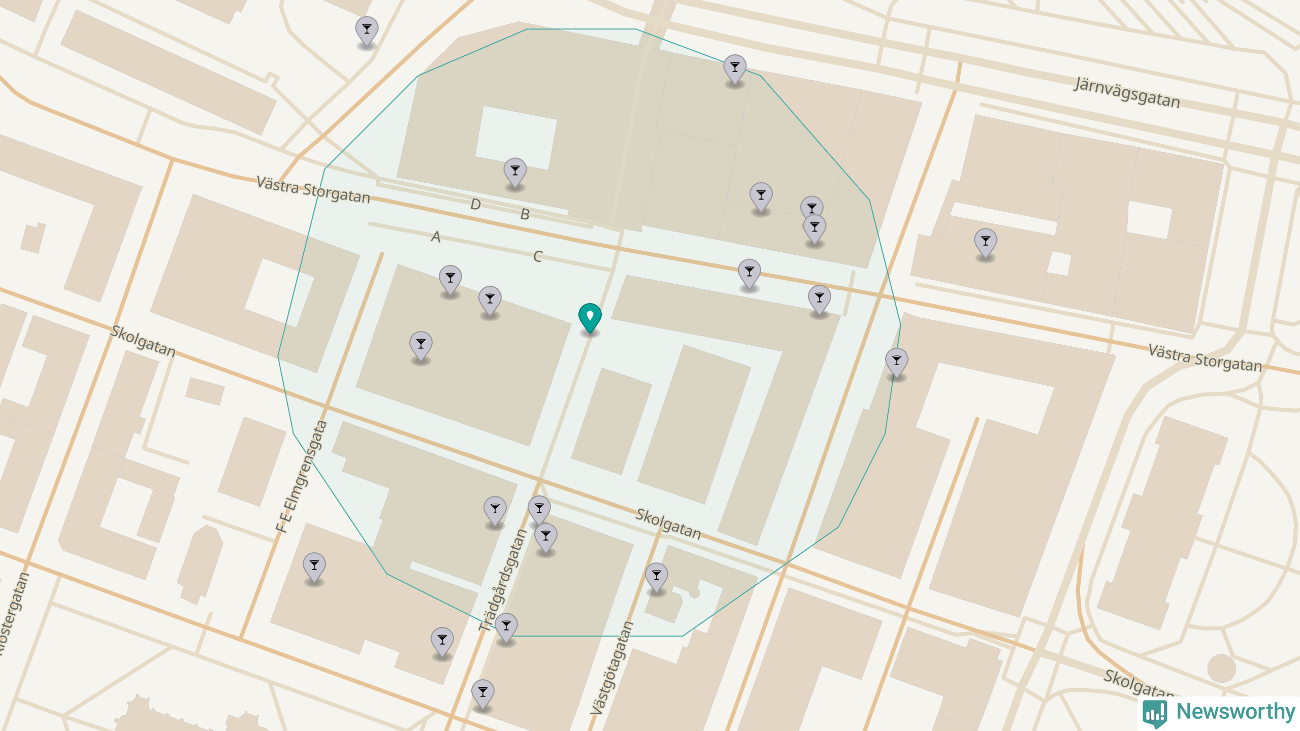 Om du står på Trädgårdsgatan har du sisådär 14 krogar, restauranger eller hotell med serveringstillstånd inom en radie på 100 meter. Det är den krogtätaste platsen i Jönköpings kommun och den krogtätaste platsen i Jönköpings län.