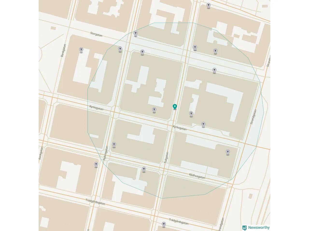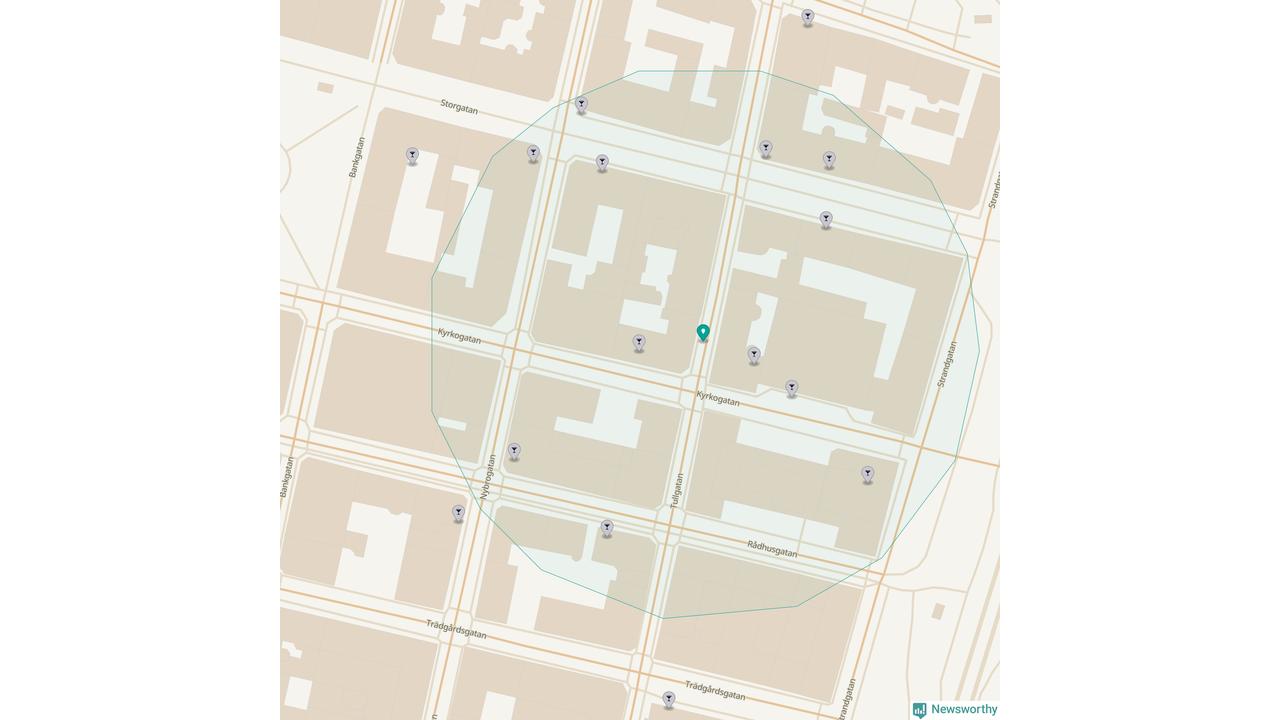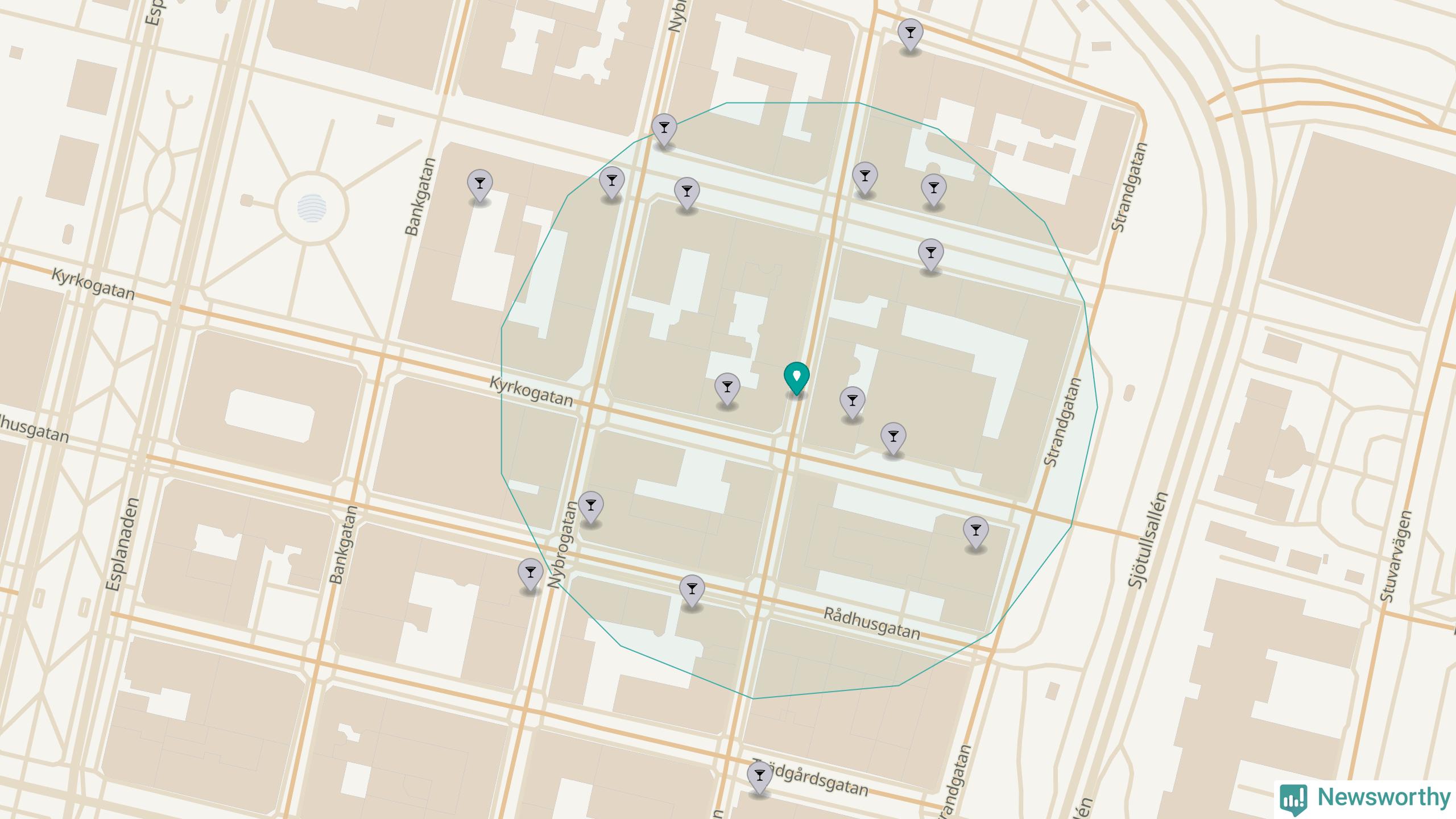 Tätast ligger förstås barerna ofta centralt i större städer. Den plats i Västernorrland där de ligger tätast ligger i Sundsvalls kommun: Om du står på Tullgatan har du tolv krogar, restauranger eller hotell med serveringstillstånd inom en radie på 100 meter.