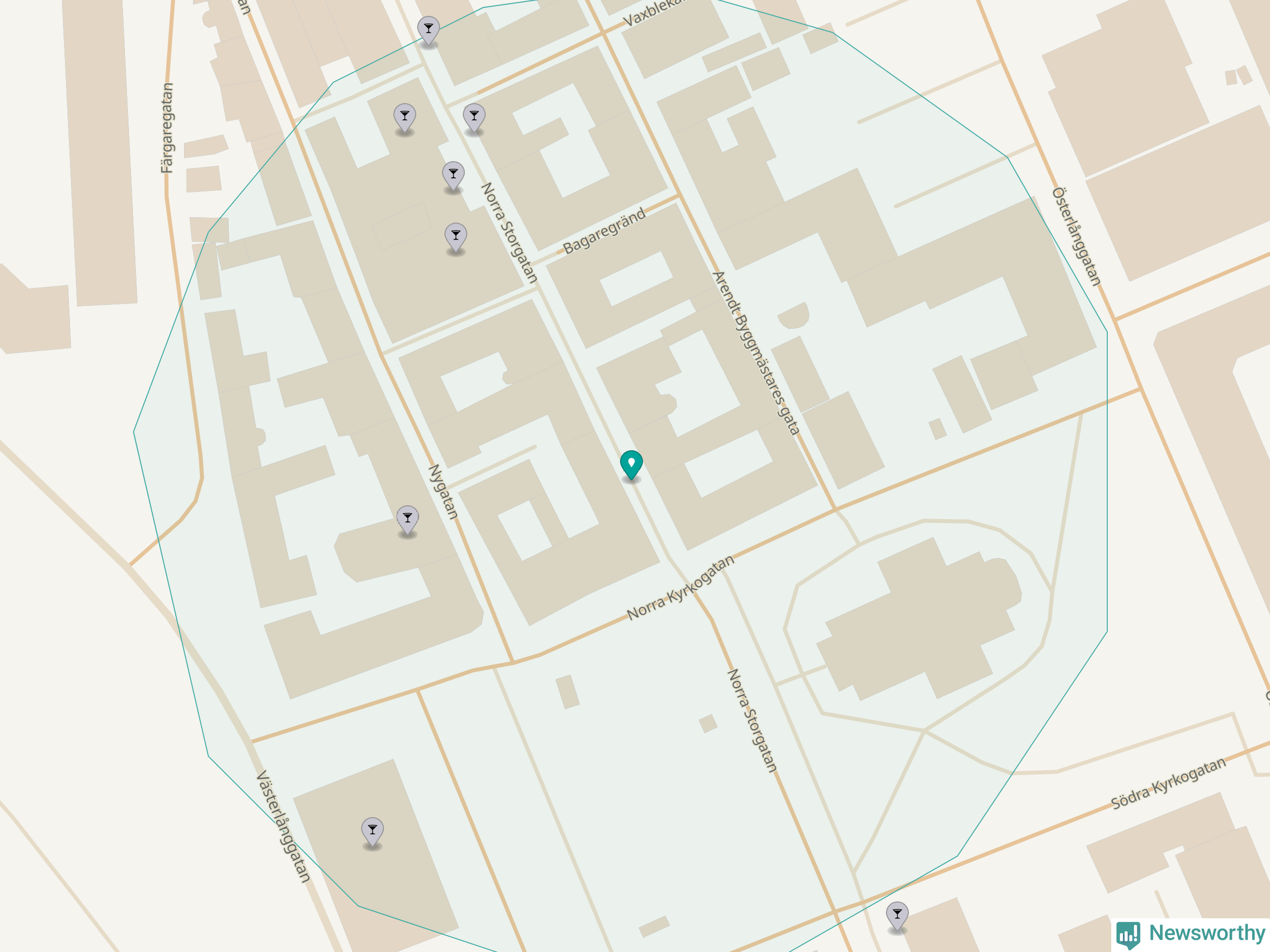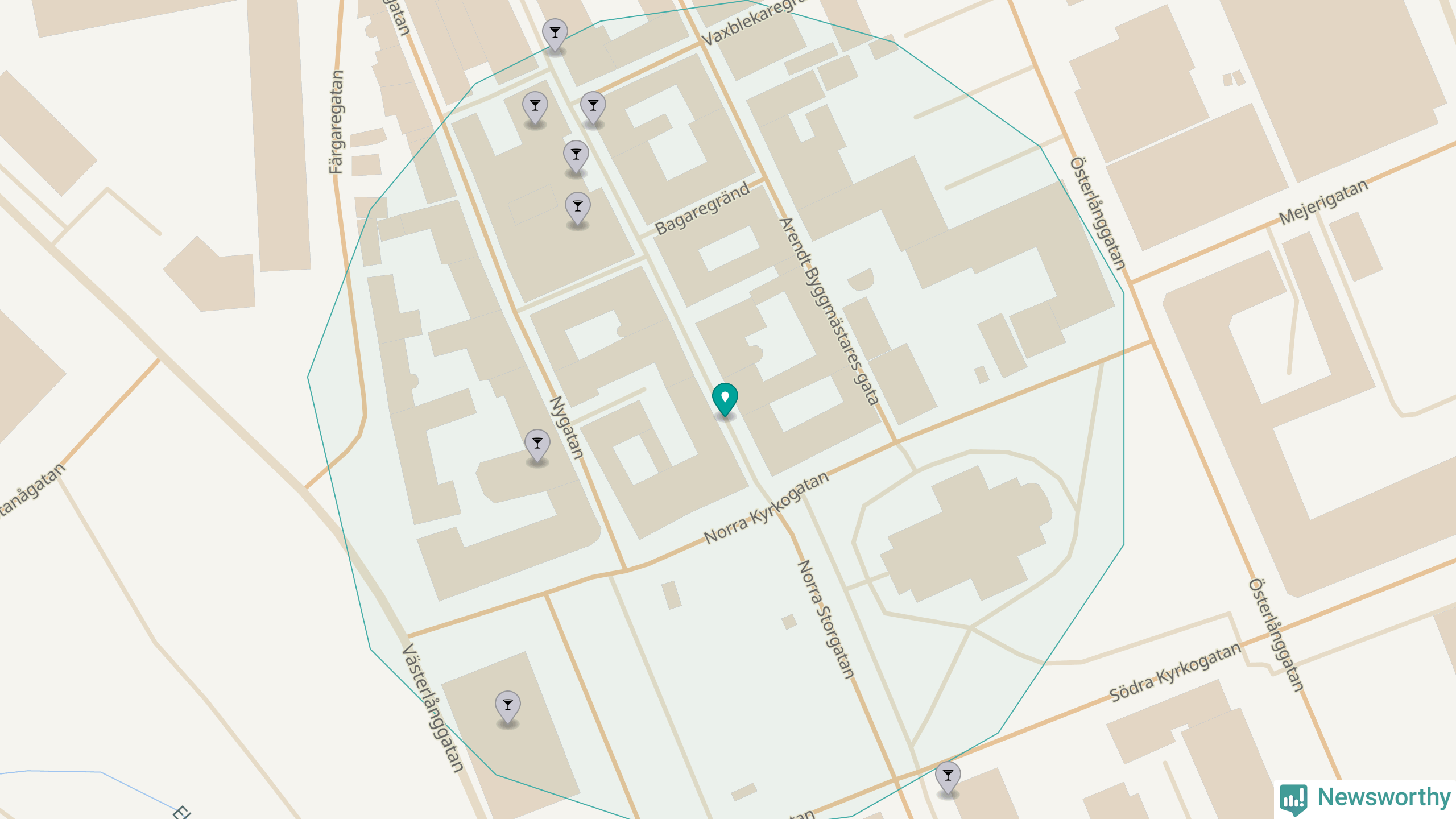 Om du står på Norra Storgatan har du sisådär sju krogar, restauranger eller hotell med serveringstillstånd inom en radie på 100 meter. Det är den krogtätaste platsen i Eksjö kommun.