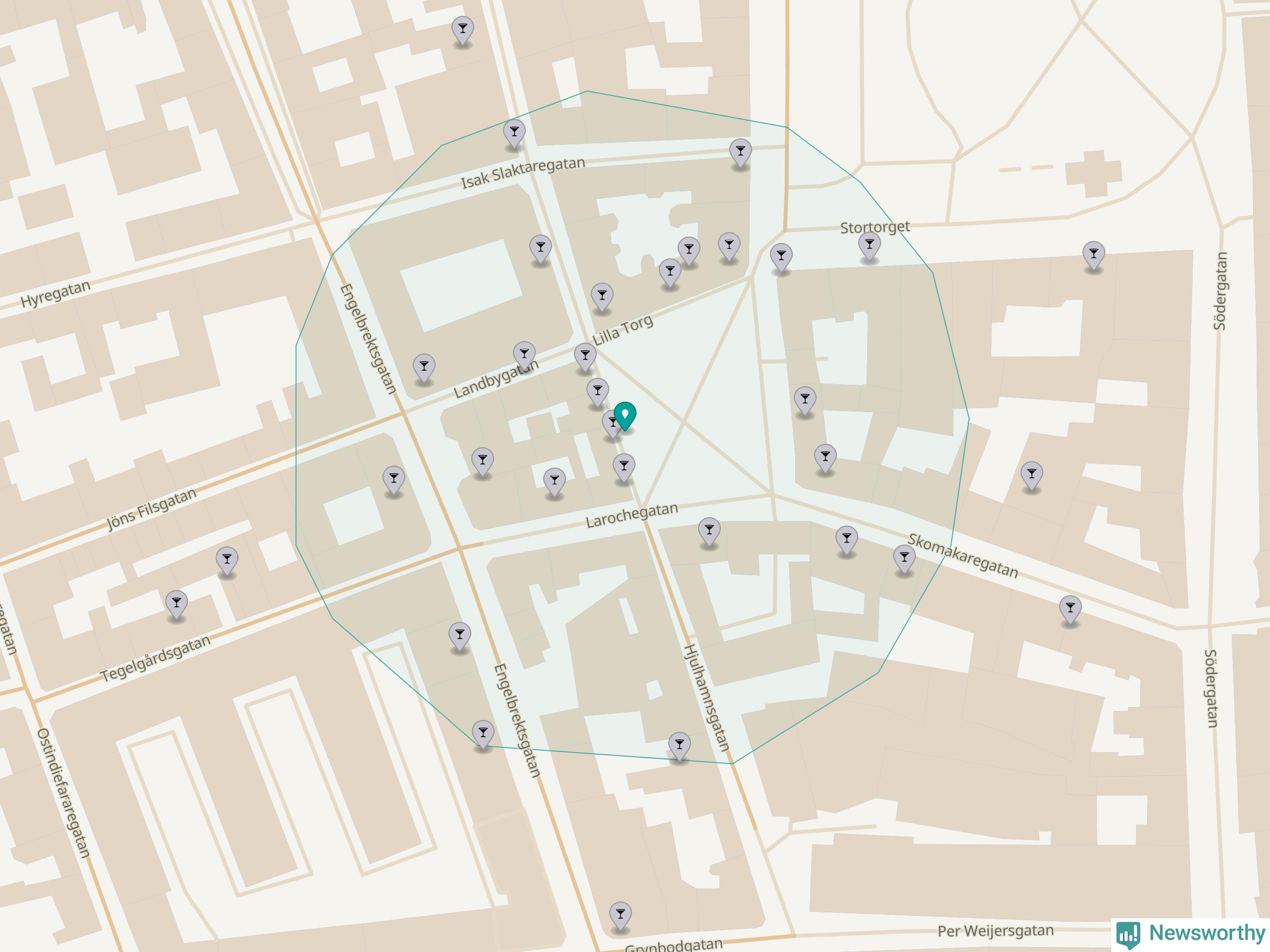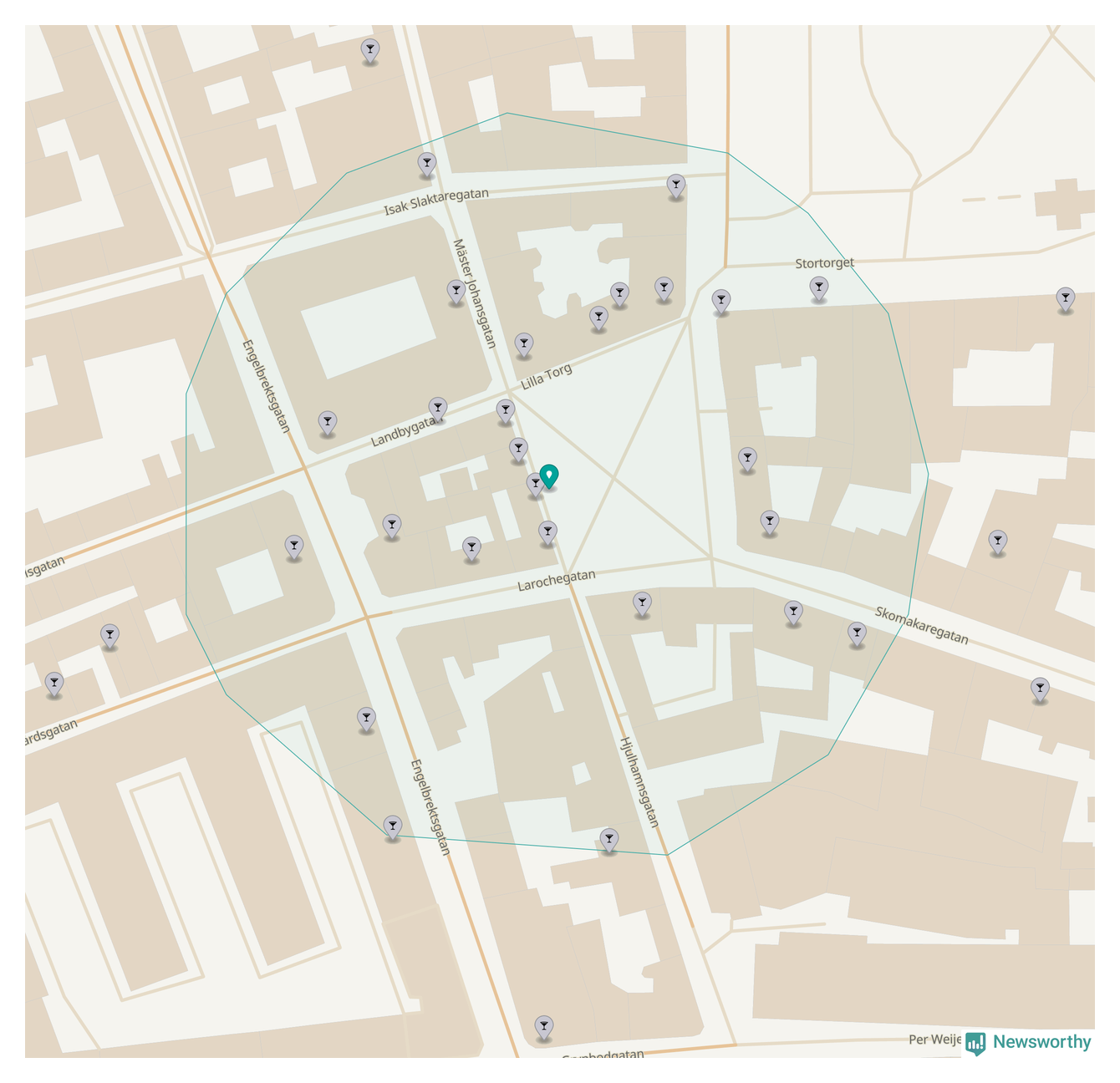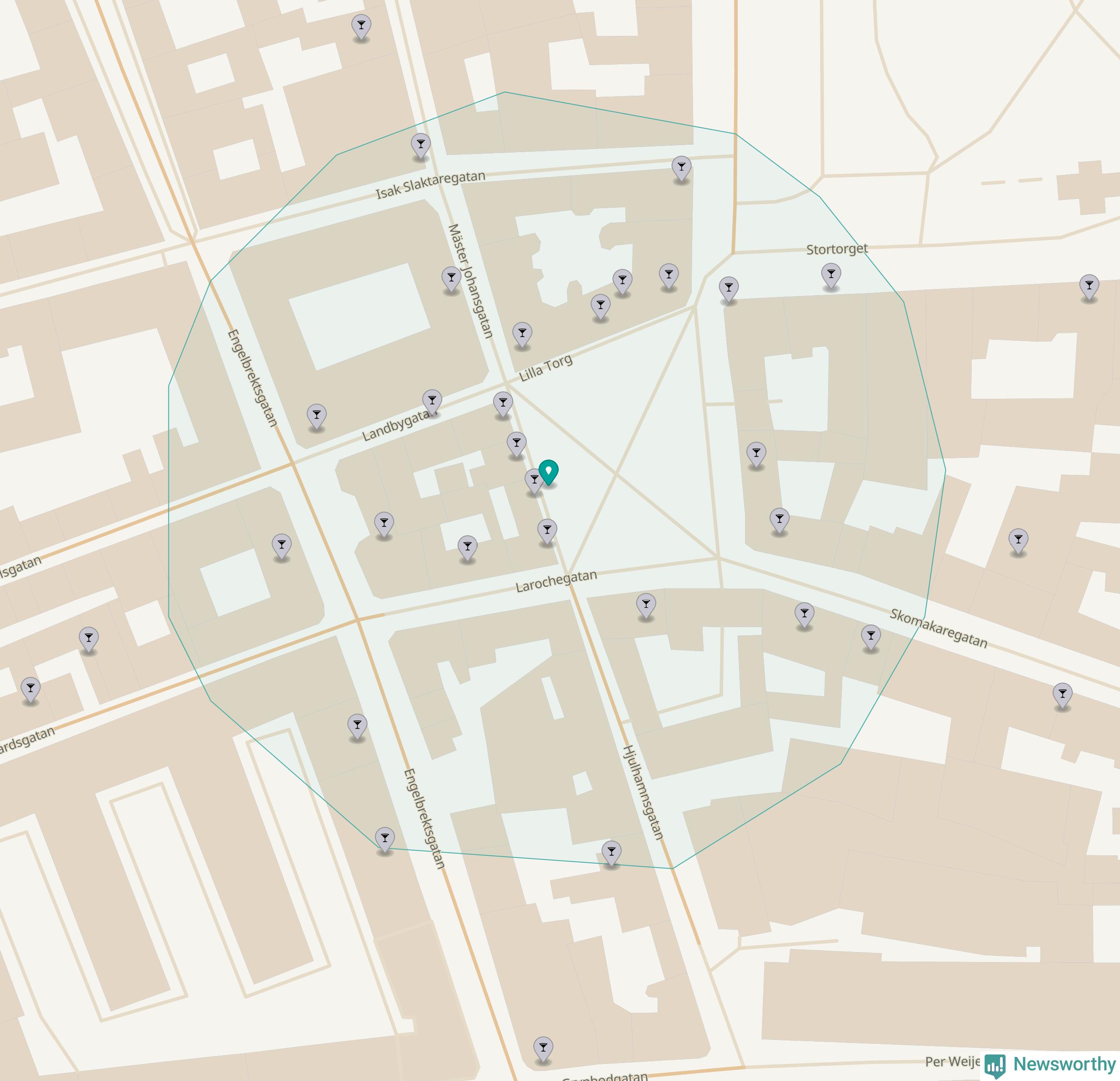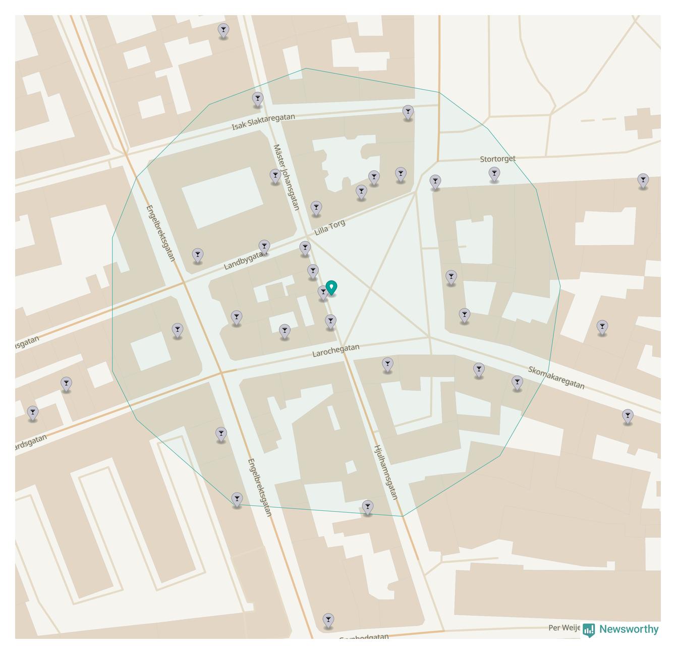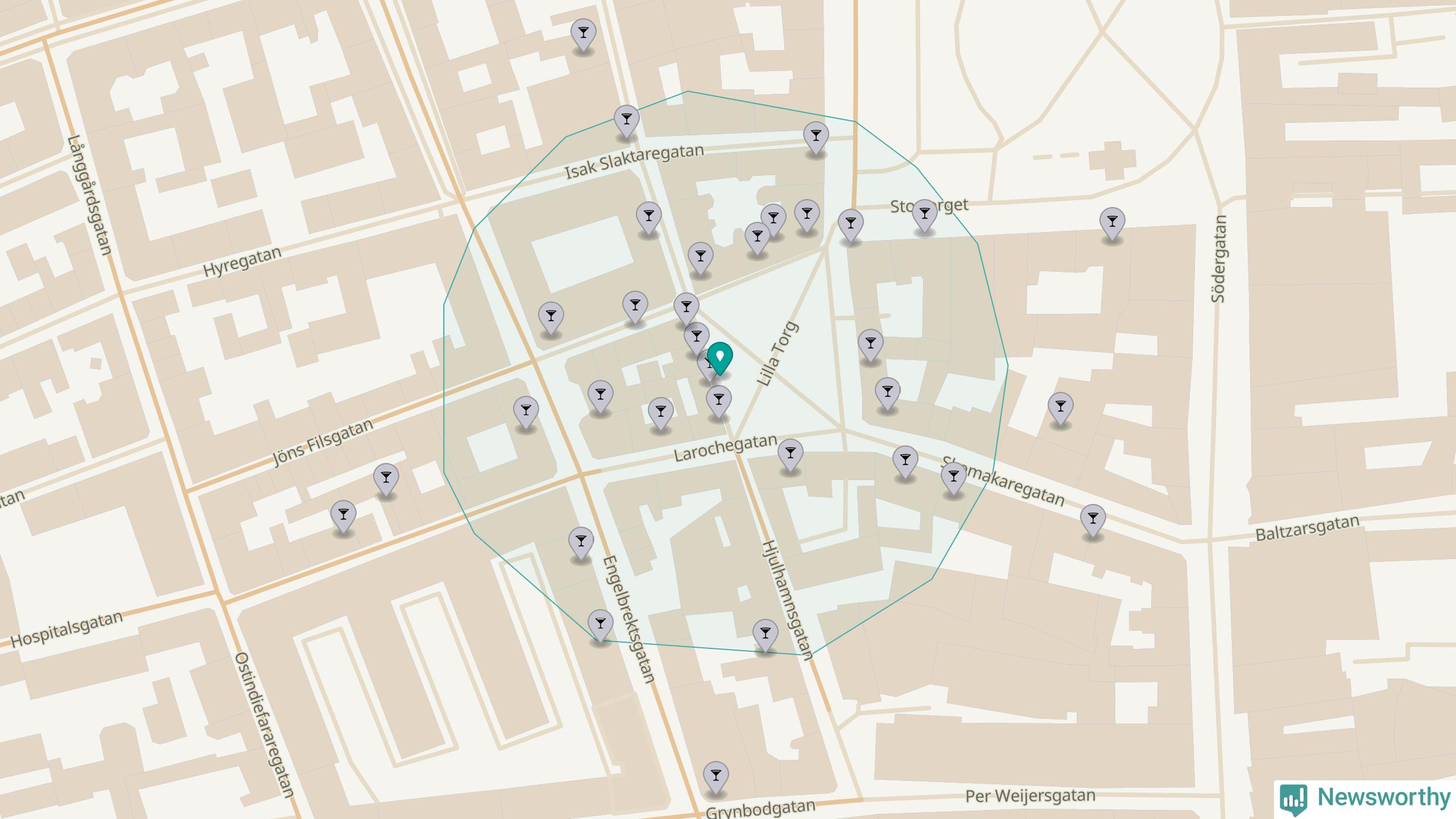 Om du står på Lilla torg har du sisådär 25 krogar, restauranger eller hotell med serveringstillstånd inom en radie på 100 meter. Det är den krogtätaste platsen i Malmö kommun, den krogtätaste platsen i Skåne – och en av de krogtätaste platserna i hela Sverige.
