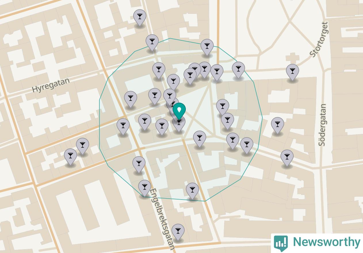 Bygger på Folkhälsomyndighetens data om serveringstillstånd. Uttaget gjordes i november, registret bygger också på andrahandsuppgifter och Folkhälsomyndigheten kan inte garantera att det är helt fullständigt. De har placerats geografiskt med hjälp av Google Maps.
