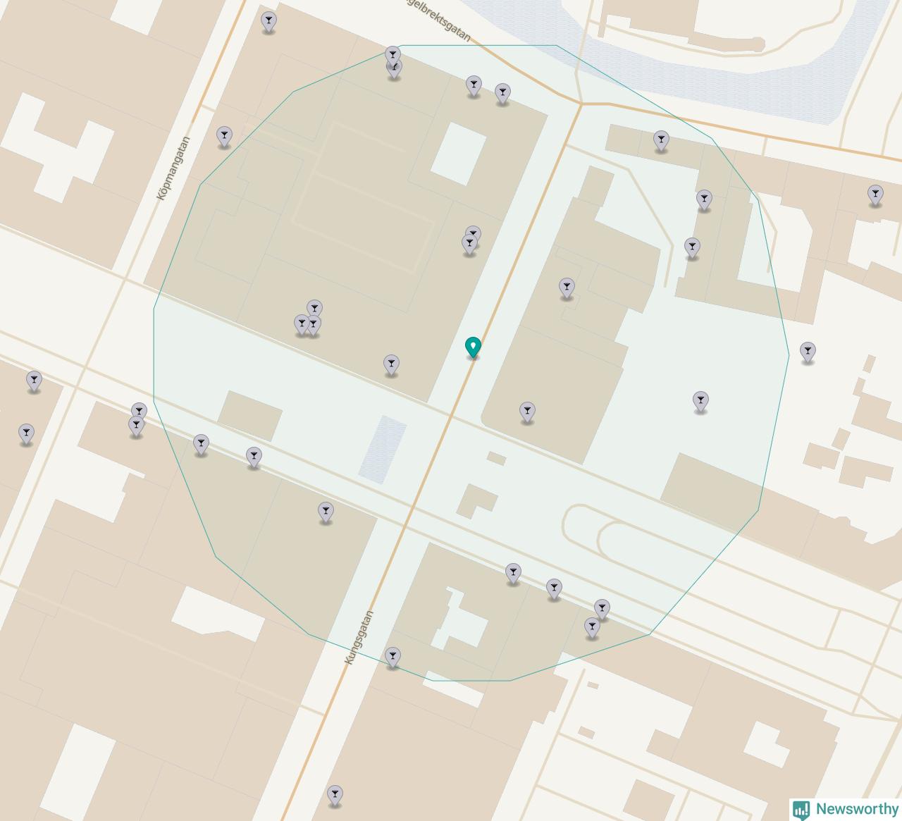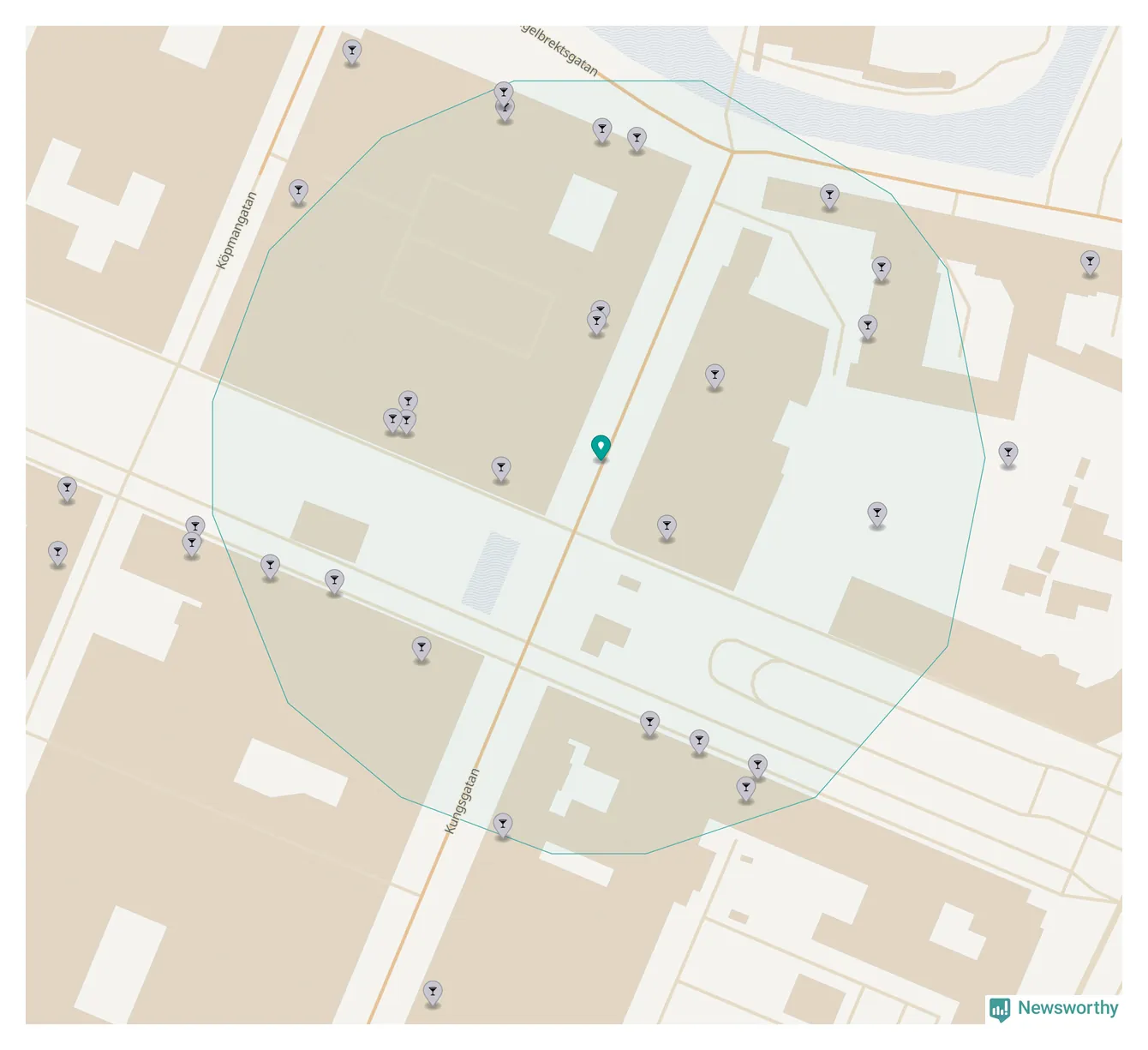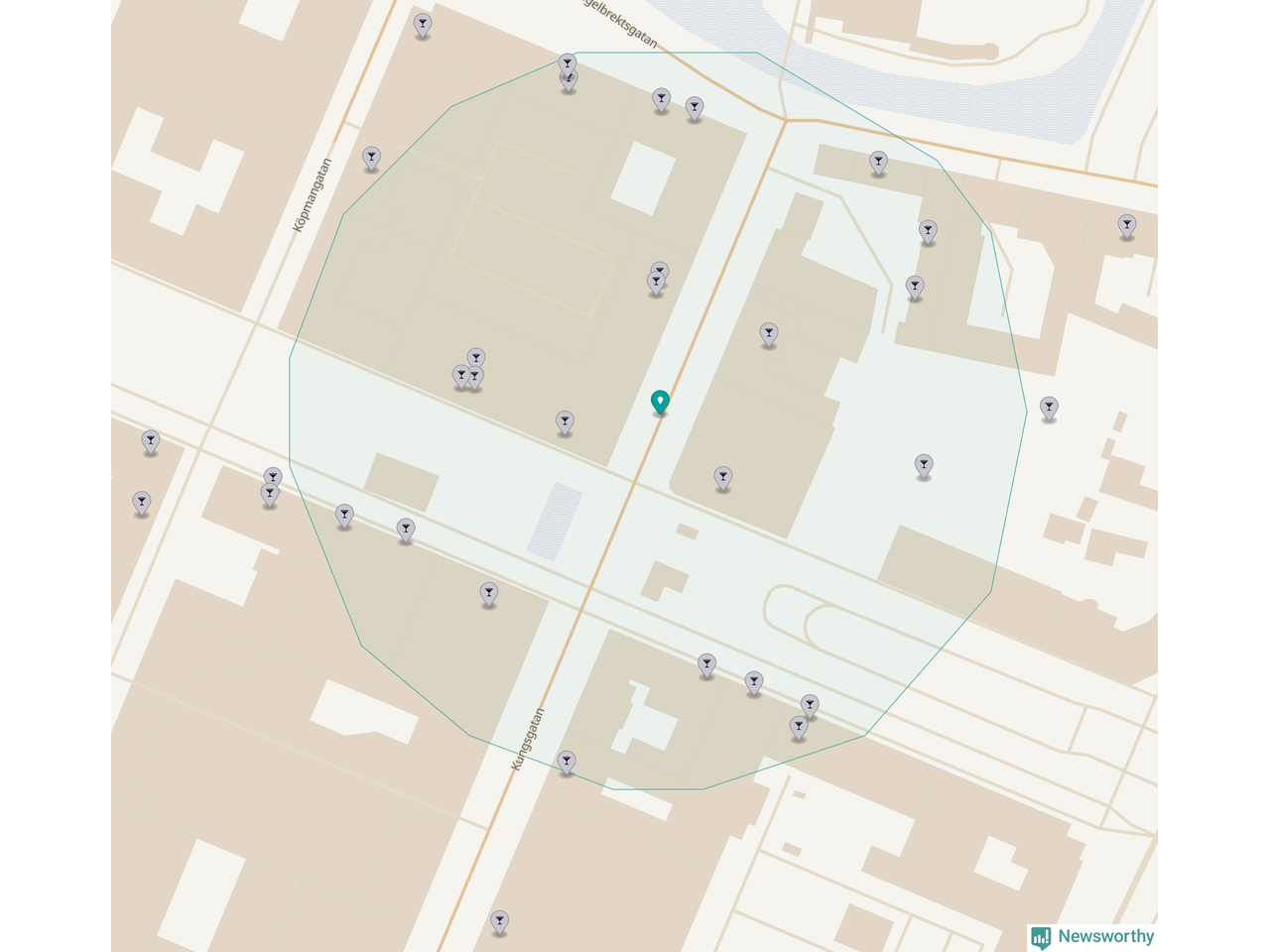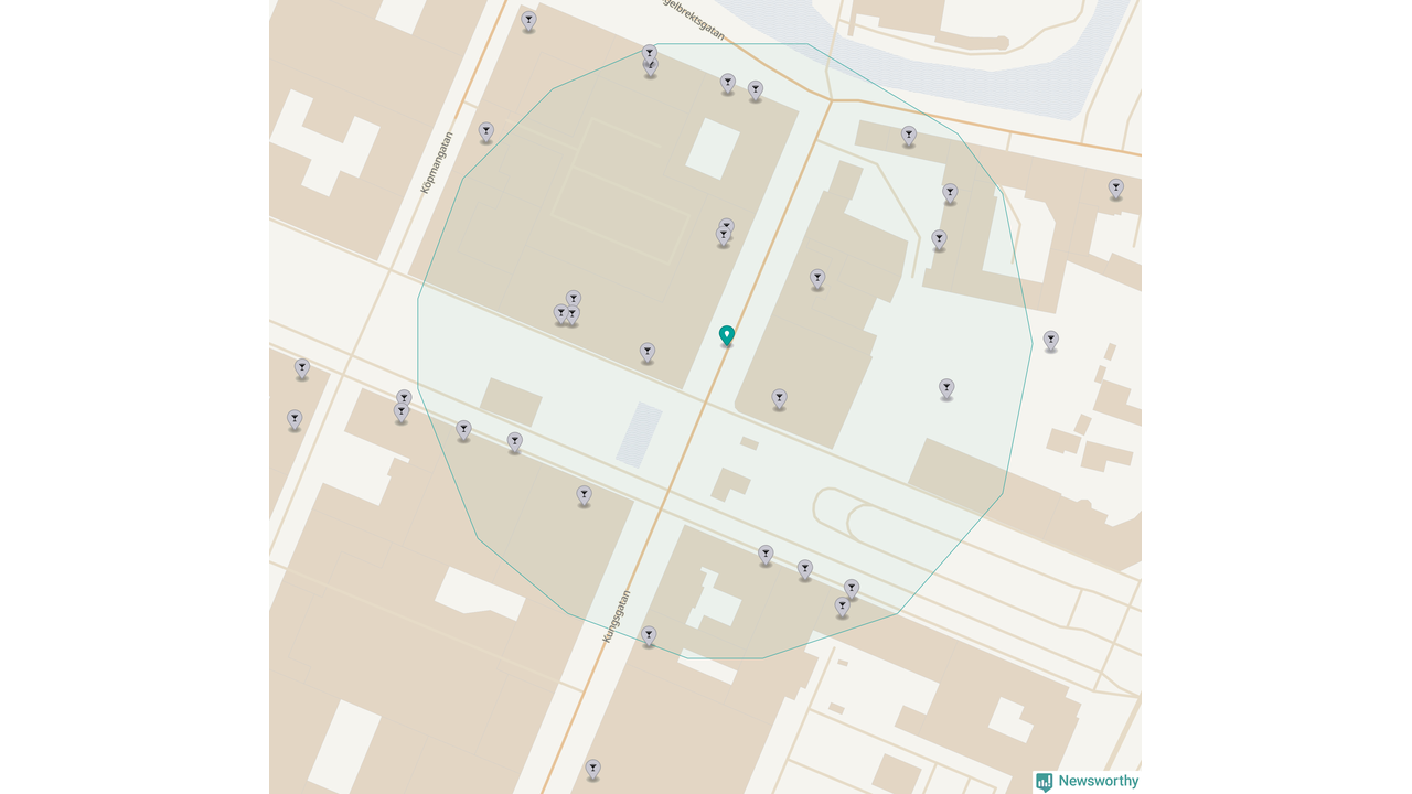 Tätast ligger förstås barerna ofta centralt i större städer. Den plats i Örebro län där de ligger tätast ligger i Örebro kommun: Om du står på Kungsgatan har du 23 krogar, restauranger eller hotell med serveringstillstånd inom en radie på 100 meter.