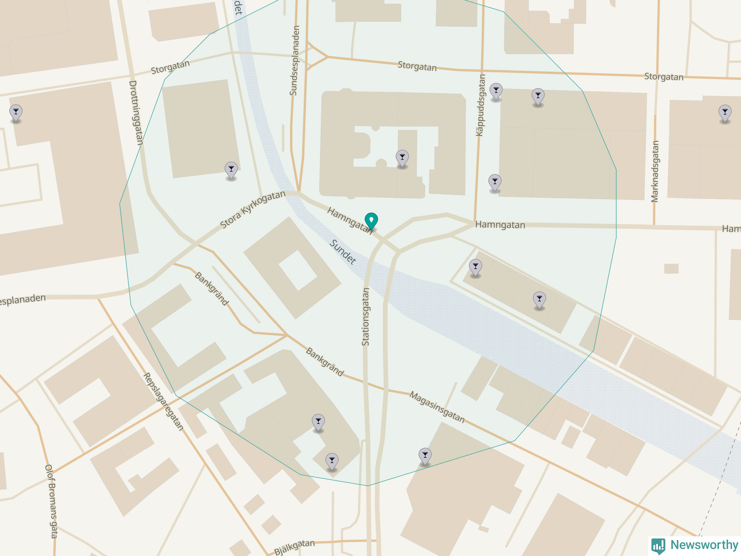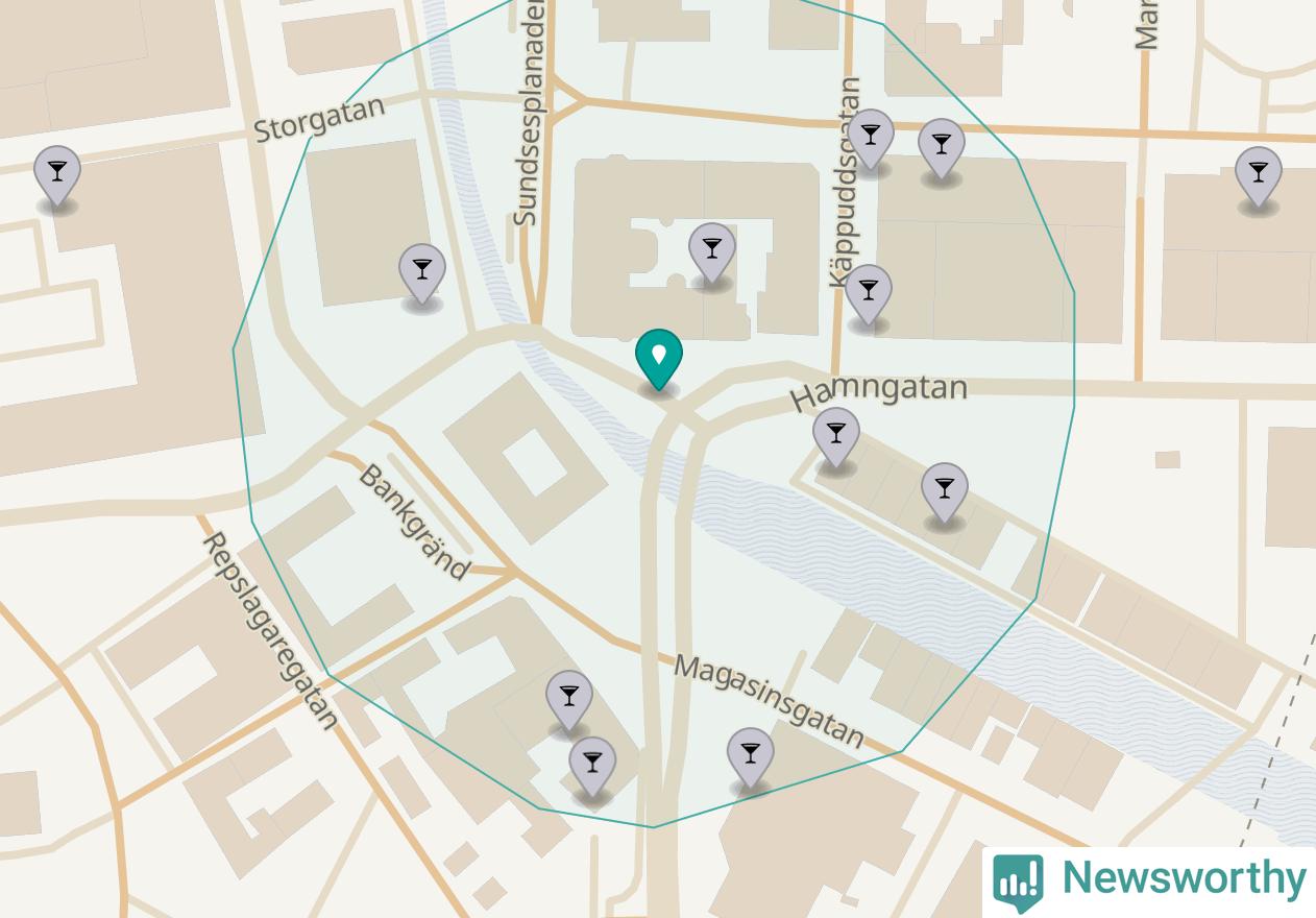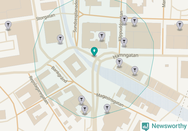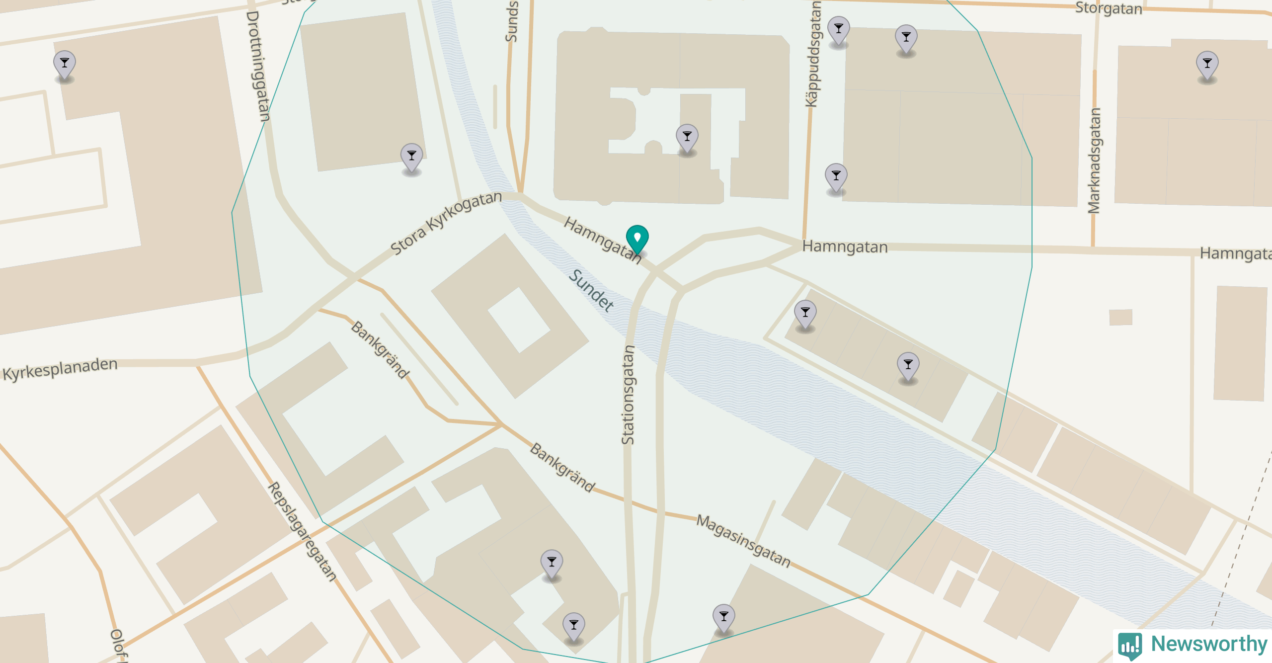 Om du står på Hamngatan har du sisådär tio krogar, restauranger eller hotell med serveringstillstånd inom en radie på 100 meter. Det är den krogtätaste platsen i Hudiksvalls kommun.
