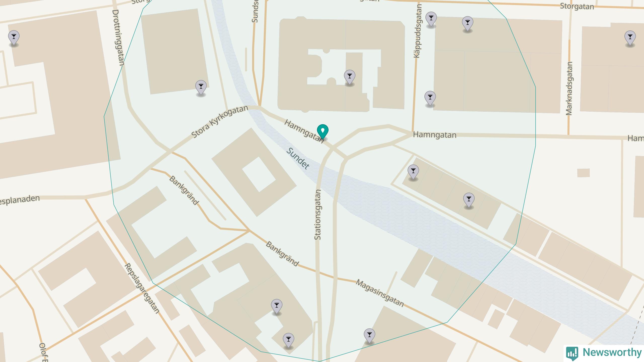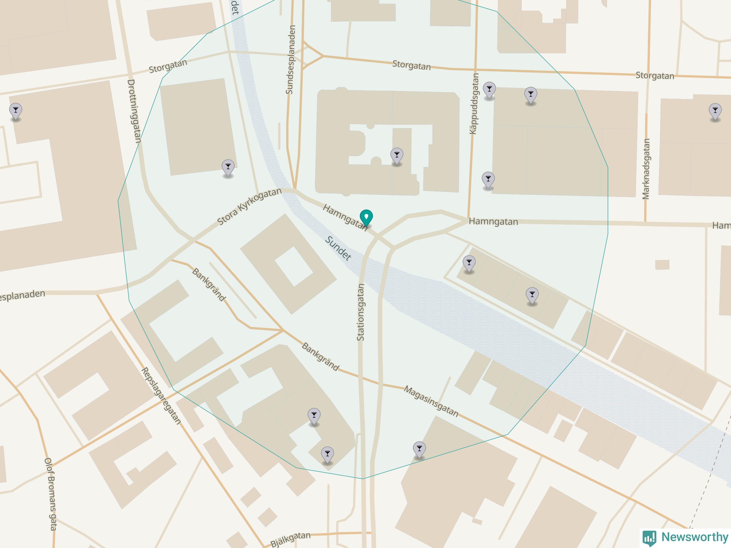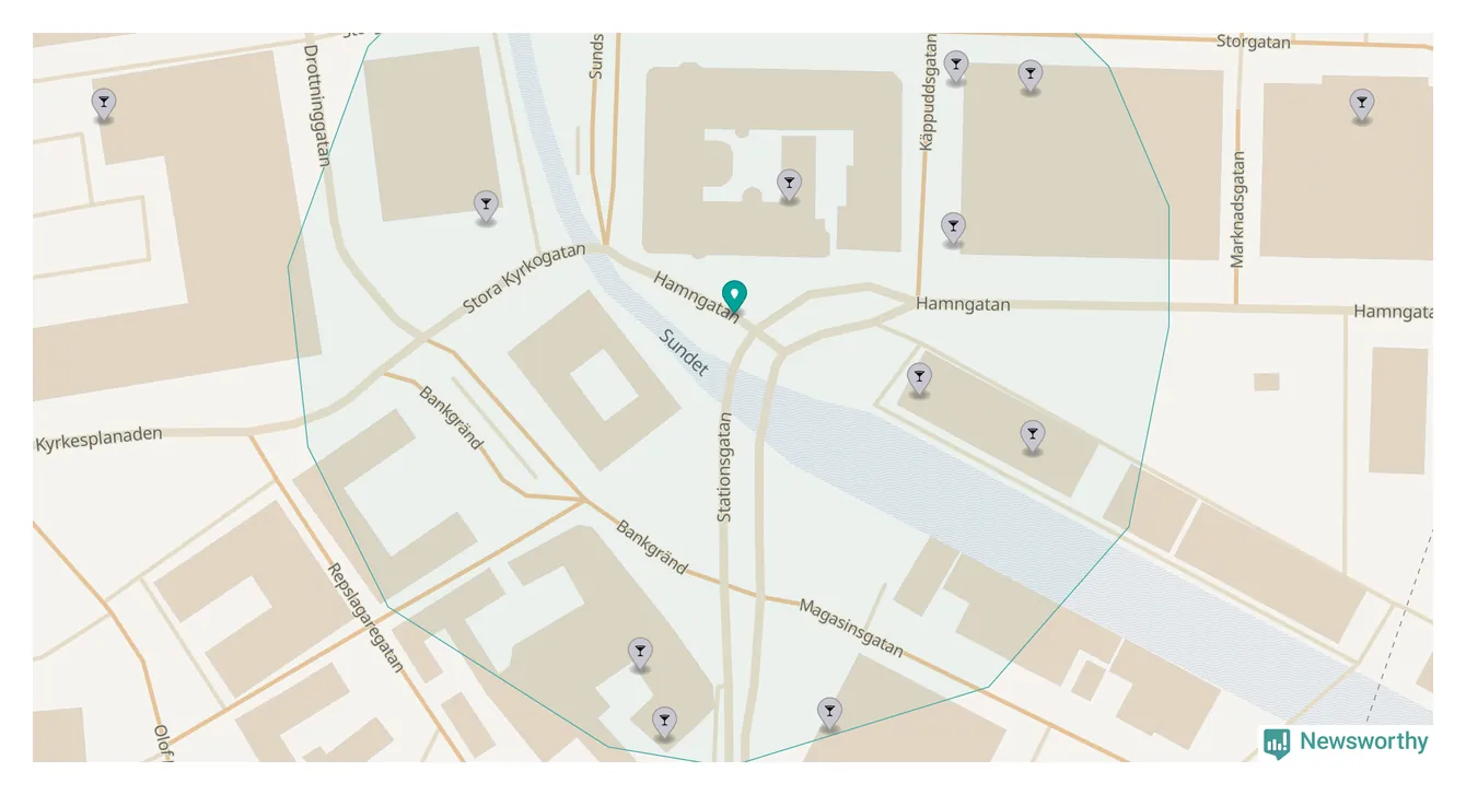 Om du står på Hamngatan har du sisådär tio krogar, restauranger eller hotell med serveringstillstånd inom en radie på 100 meter. Det är den krogtätaste platsen i Hudiksvalls kommun.