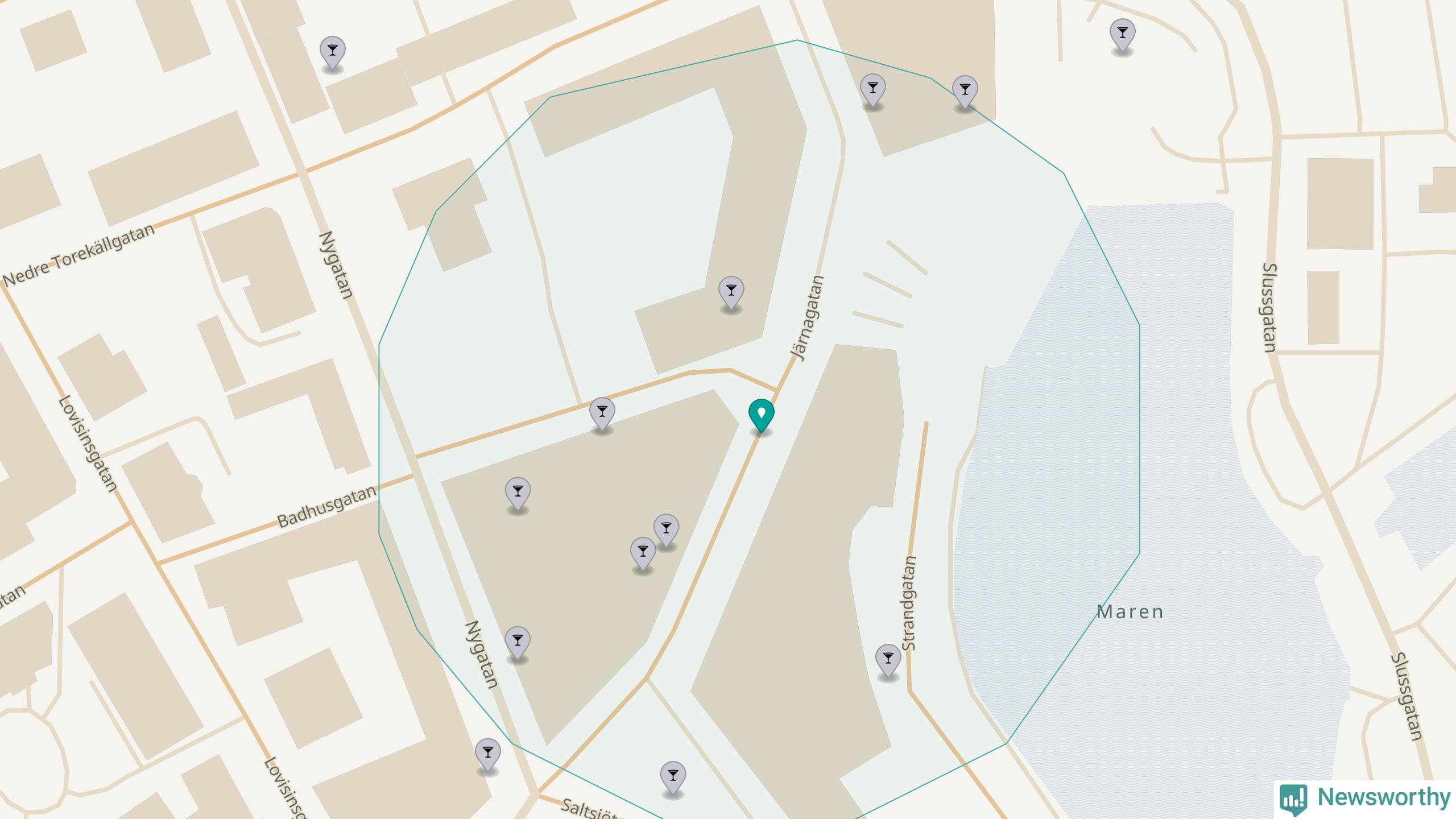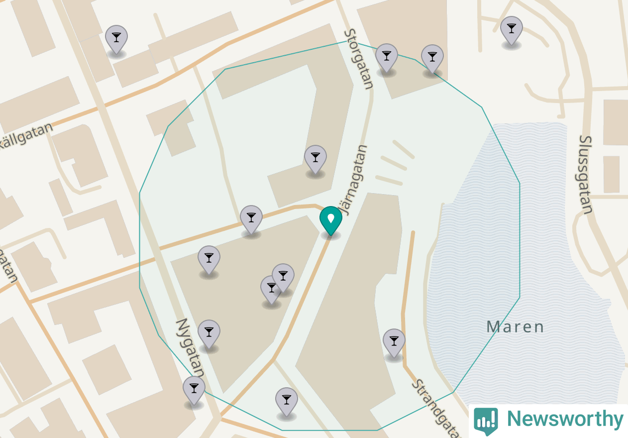 Om du står på Järnagatan har du sisådär tio krogar, restauranger eller hotell med serveringstillstånd inom en radie på 100 meter. Det är den krogtätaste platsen i Södertälje kommun.