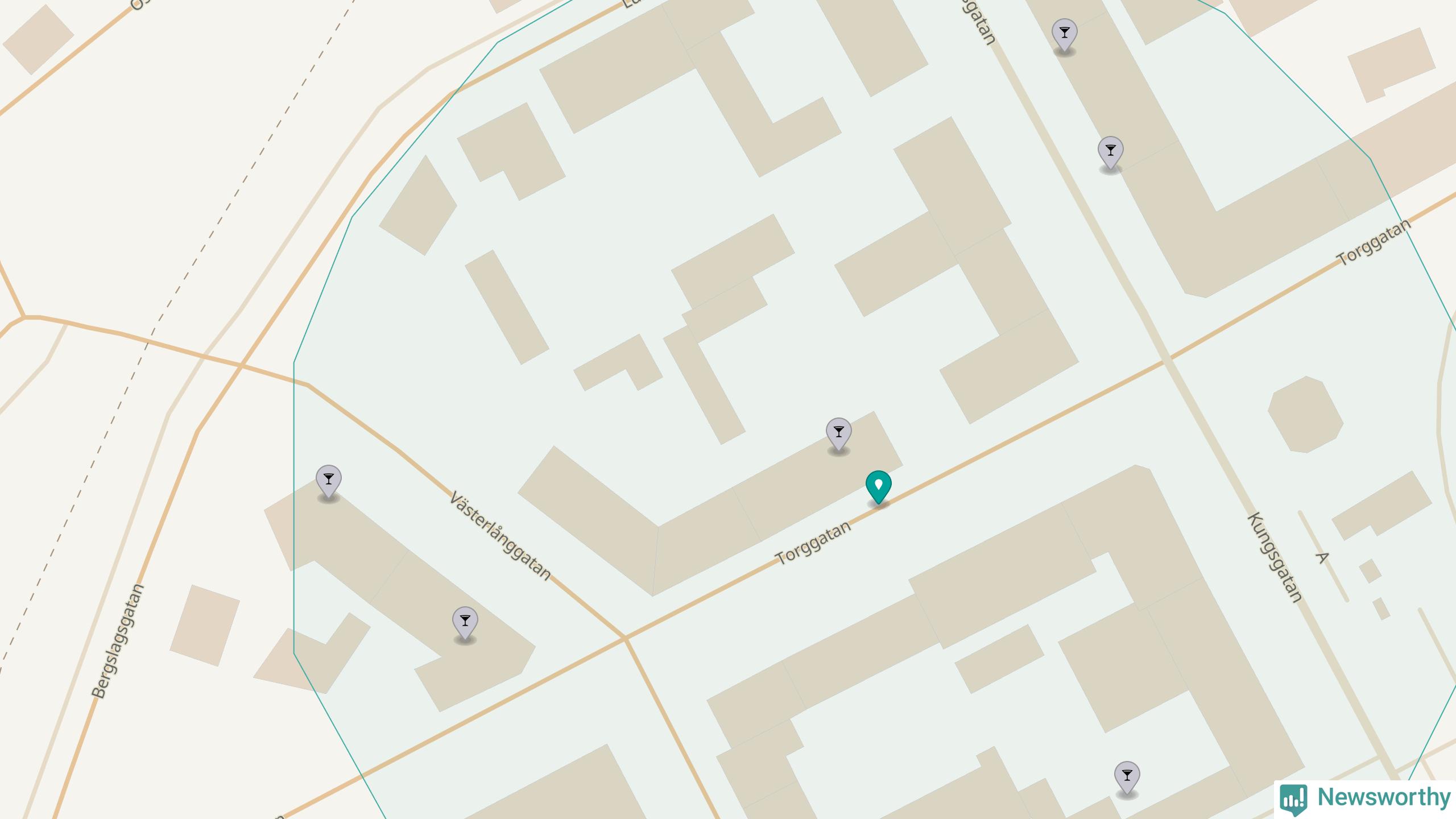 Om du står på Torggatan har du sex krogar, restauranger eller hotell med serveringstillstånd inom en radie på 100 meter. Det är den krogtätaste platsen i Åmåls kommun.