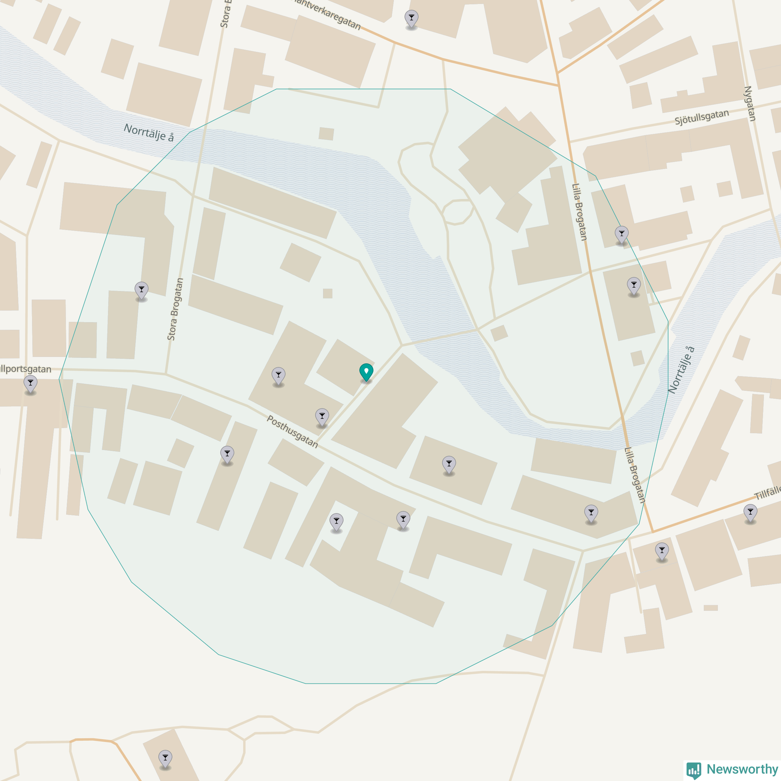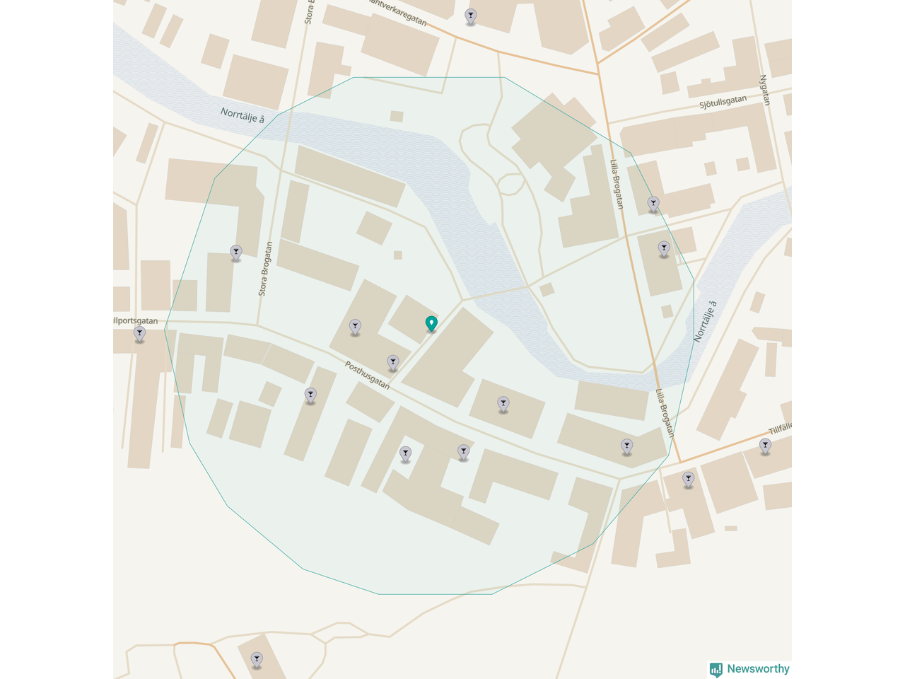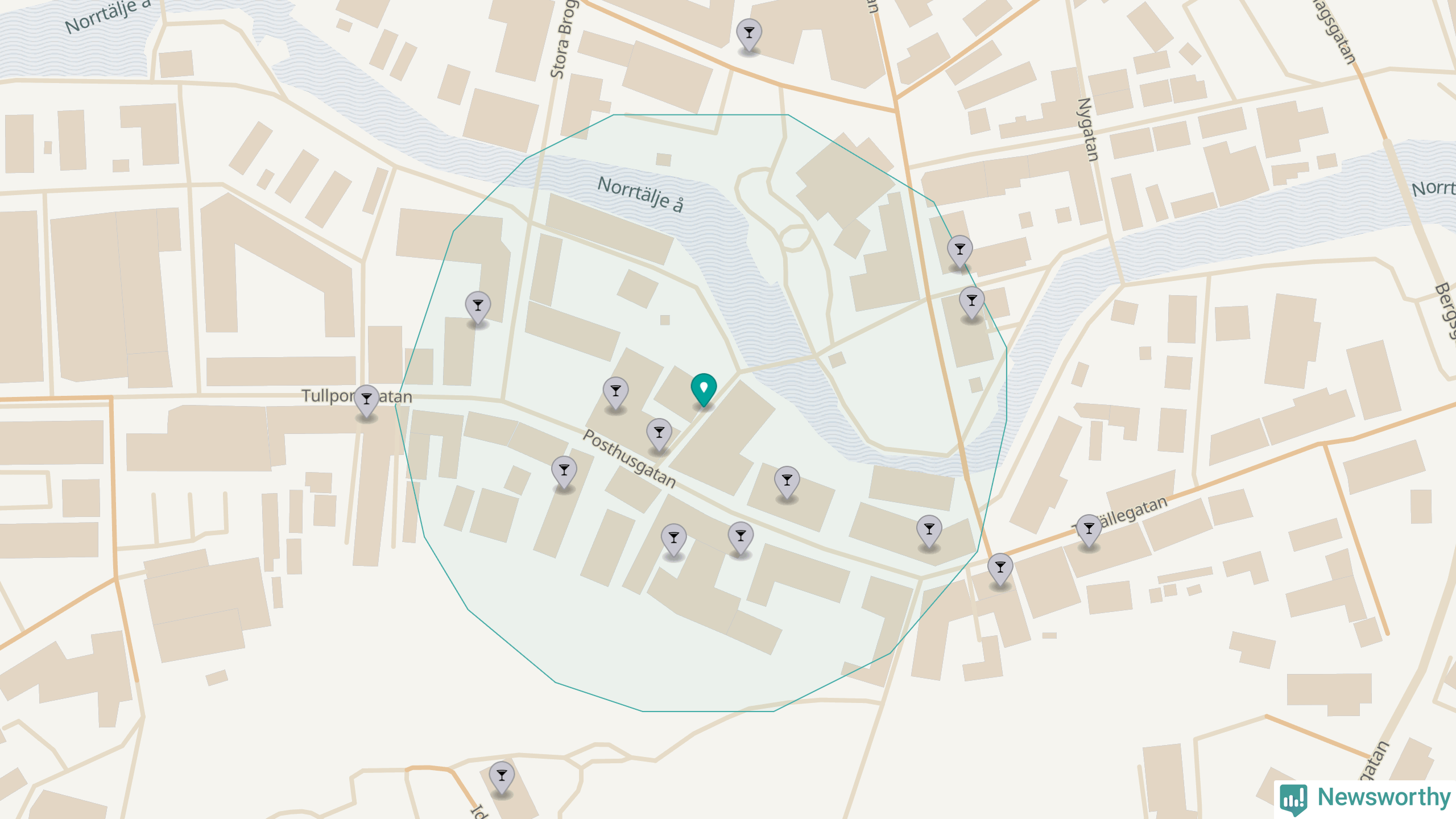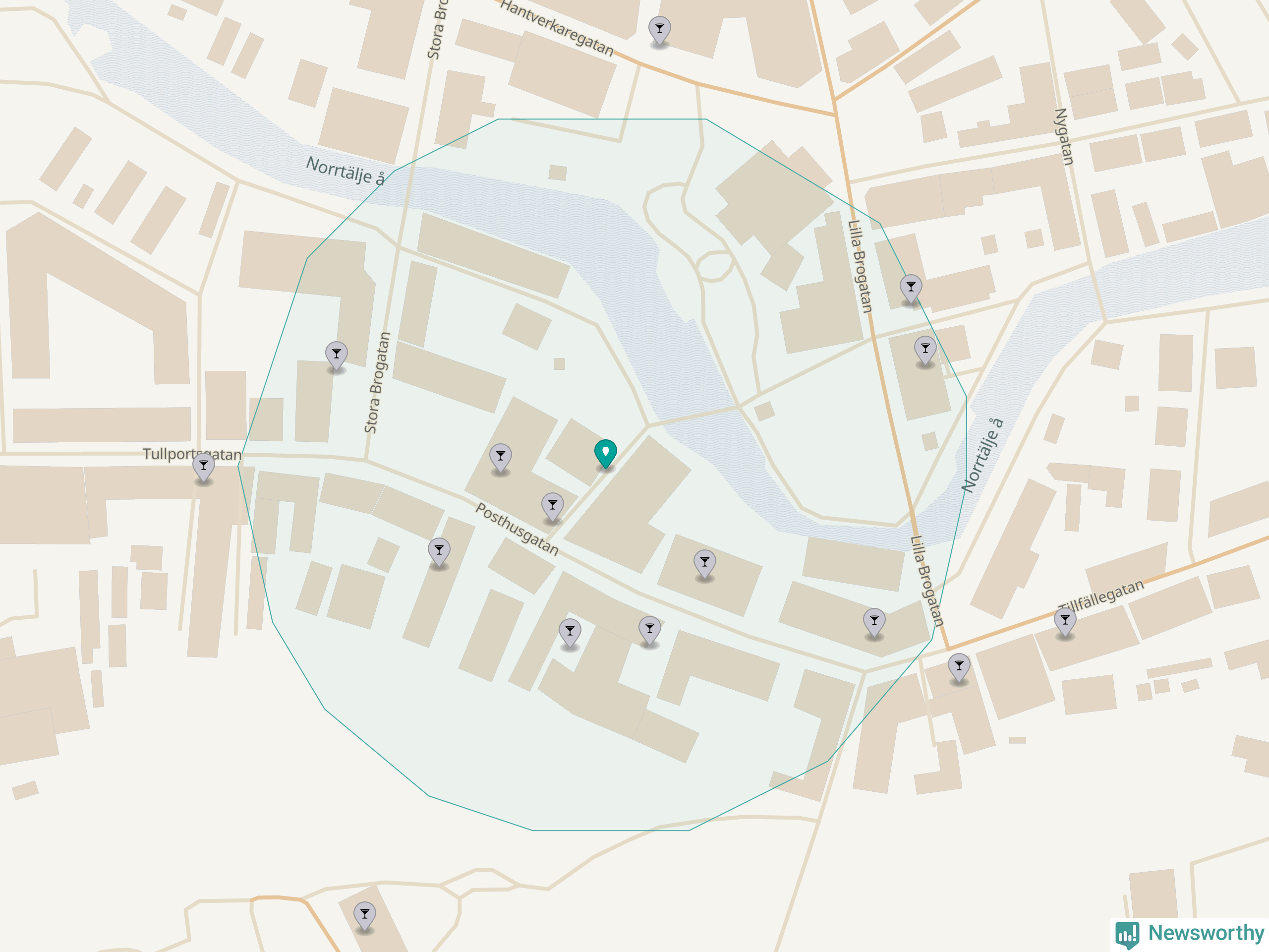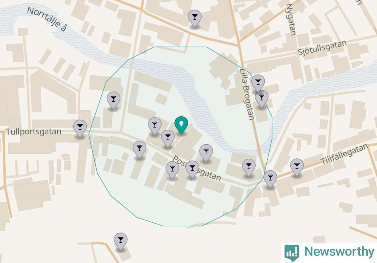 Om du står på Öströms gränd har du sisådär tio krogar, restauranger eller hotell med serveringstillstånd inom en radie på 100 meter. Det är den krogtätaste platsen i Norrtälje kommun.