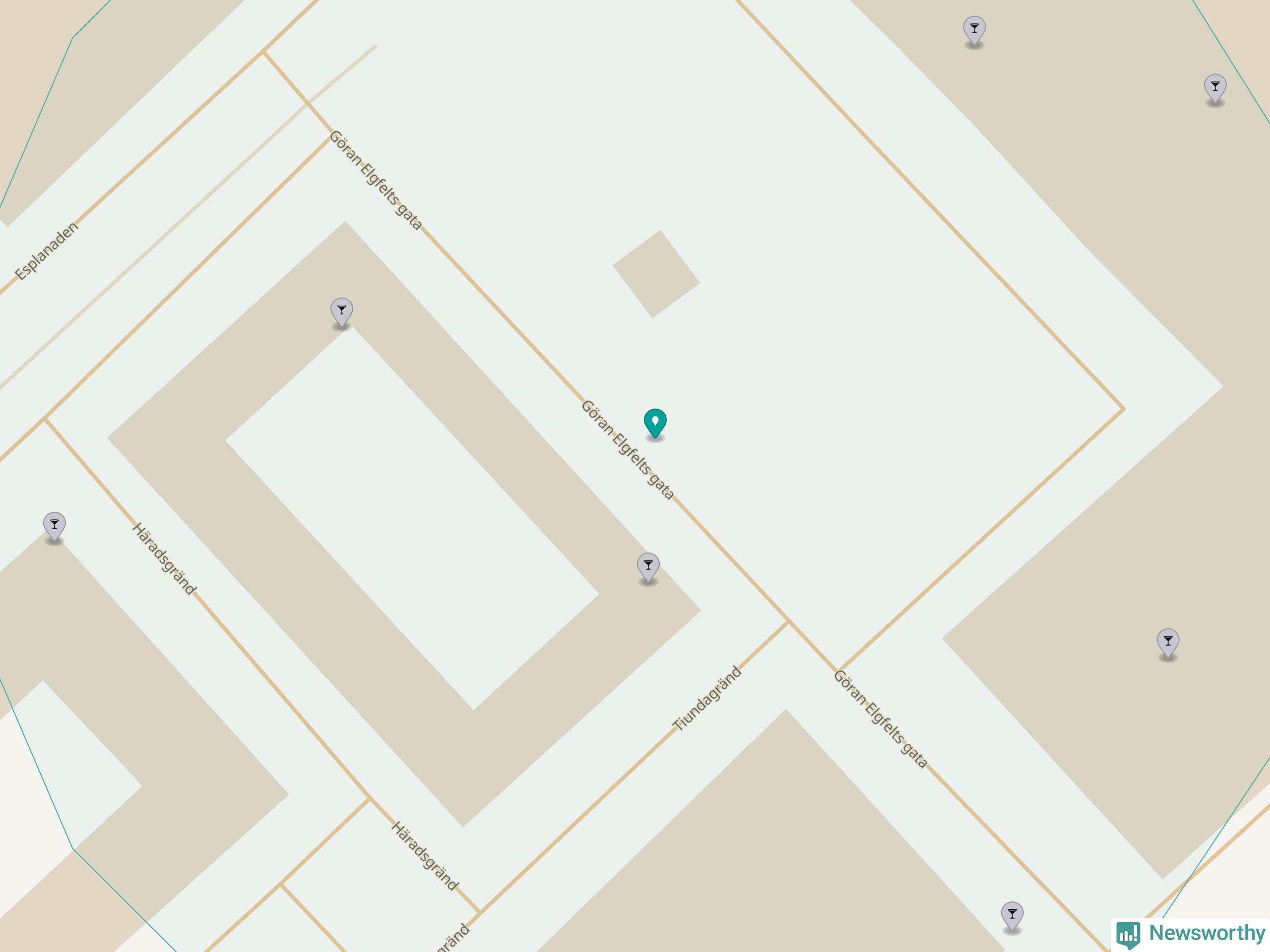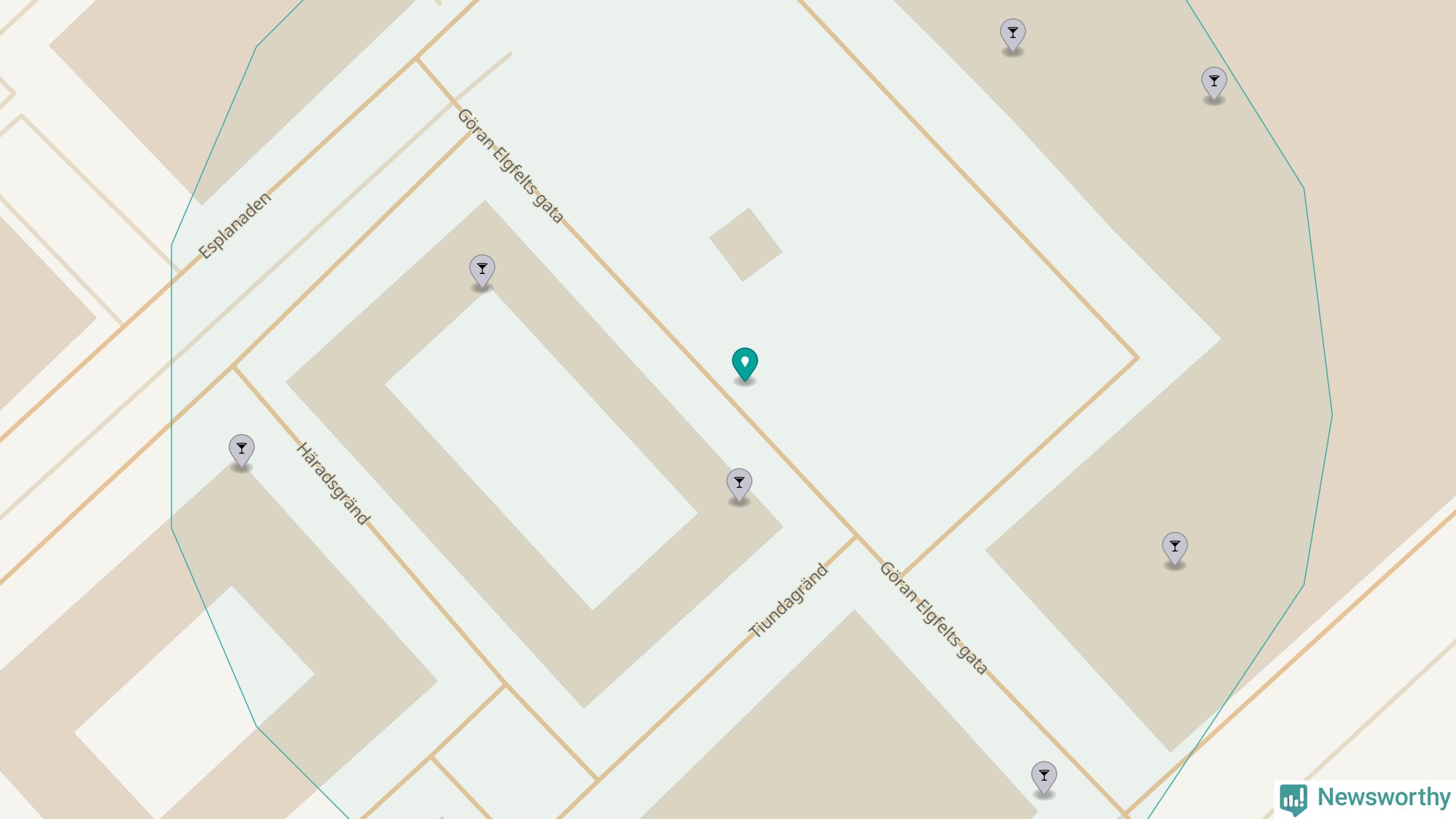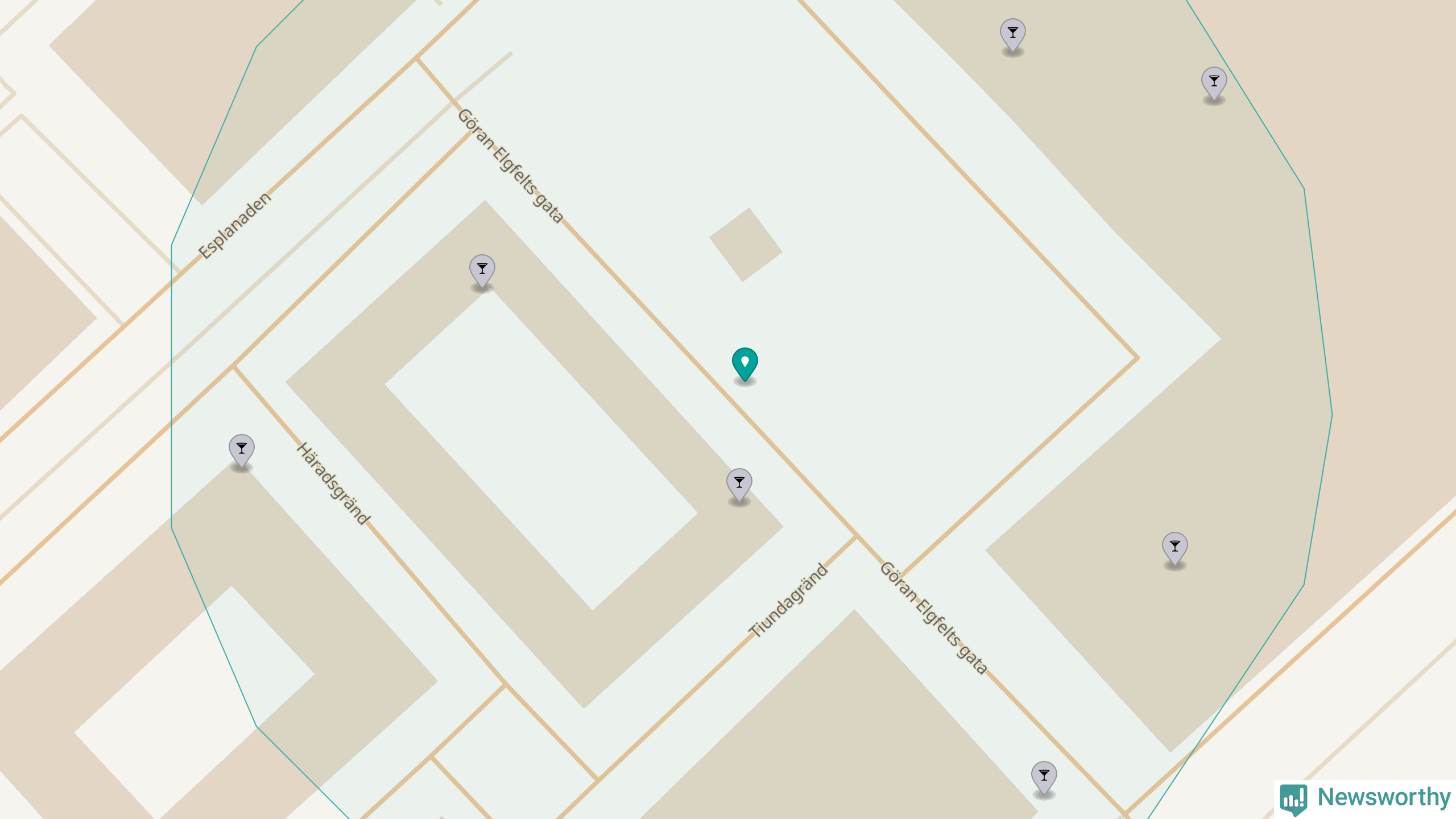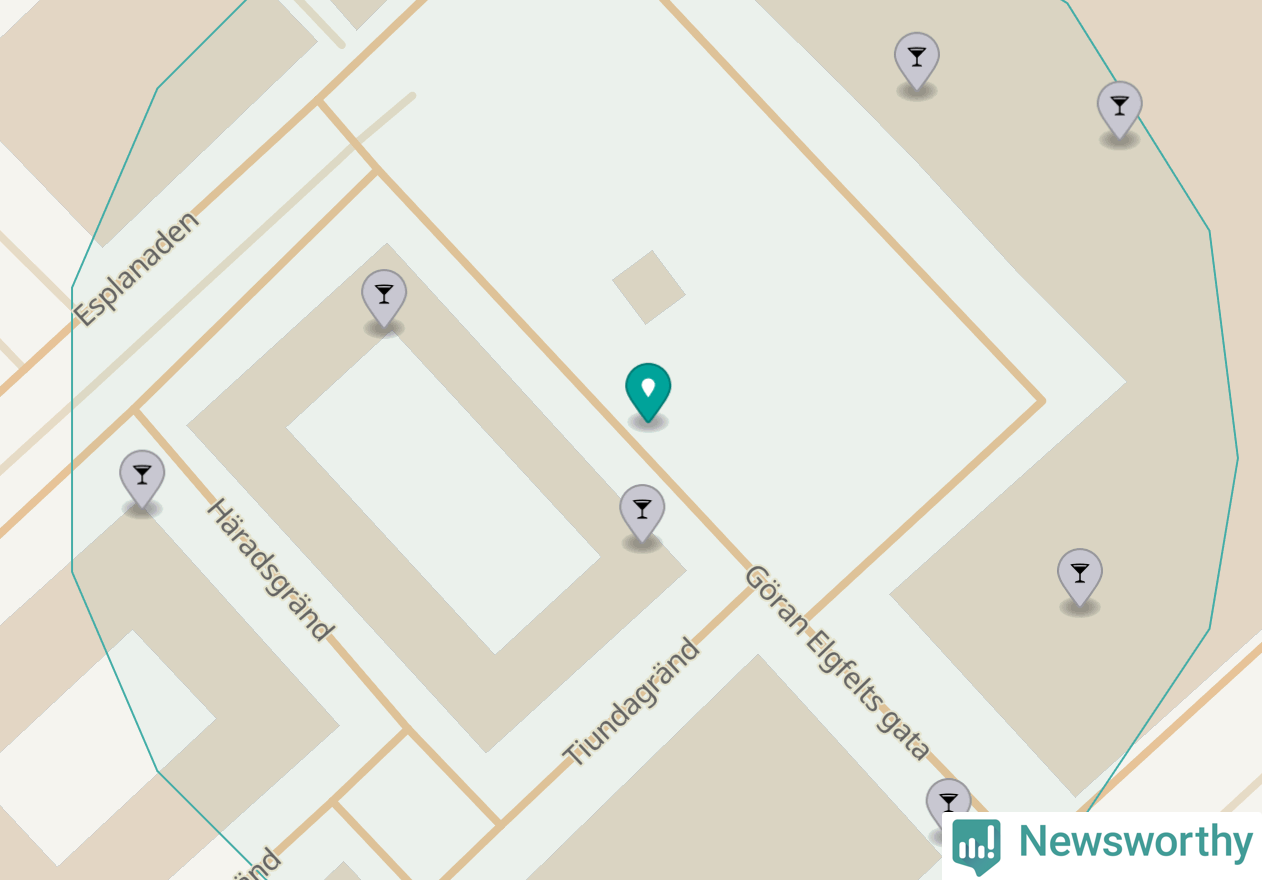 Om du står på Göran Elgfelts Gata har du sju krogar, restauranger eller hotell med serveringstillstånd inom en radie på 100 meter. Det är den krogtätaste platsen i Täby kommun.