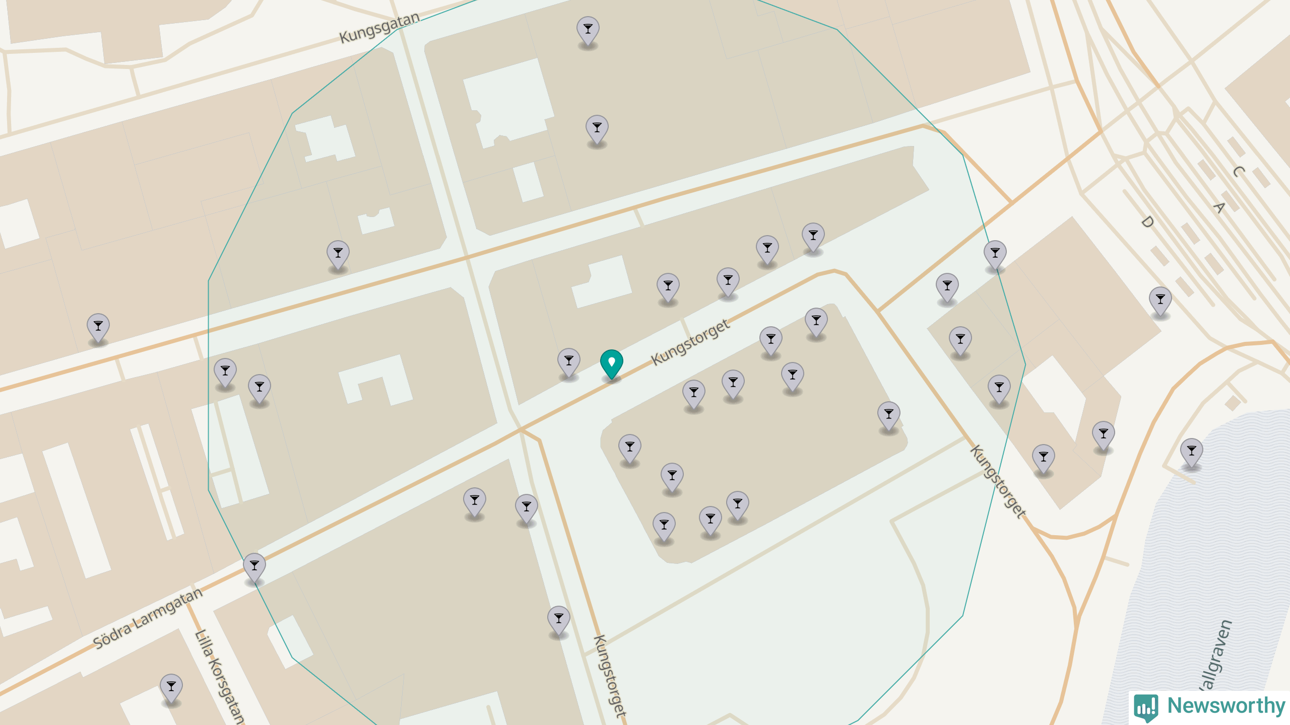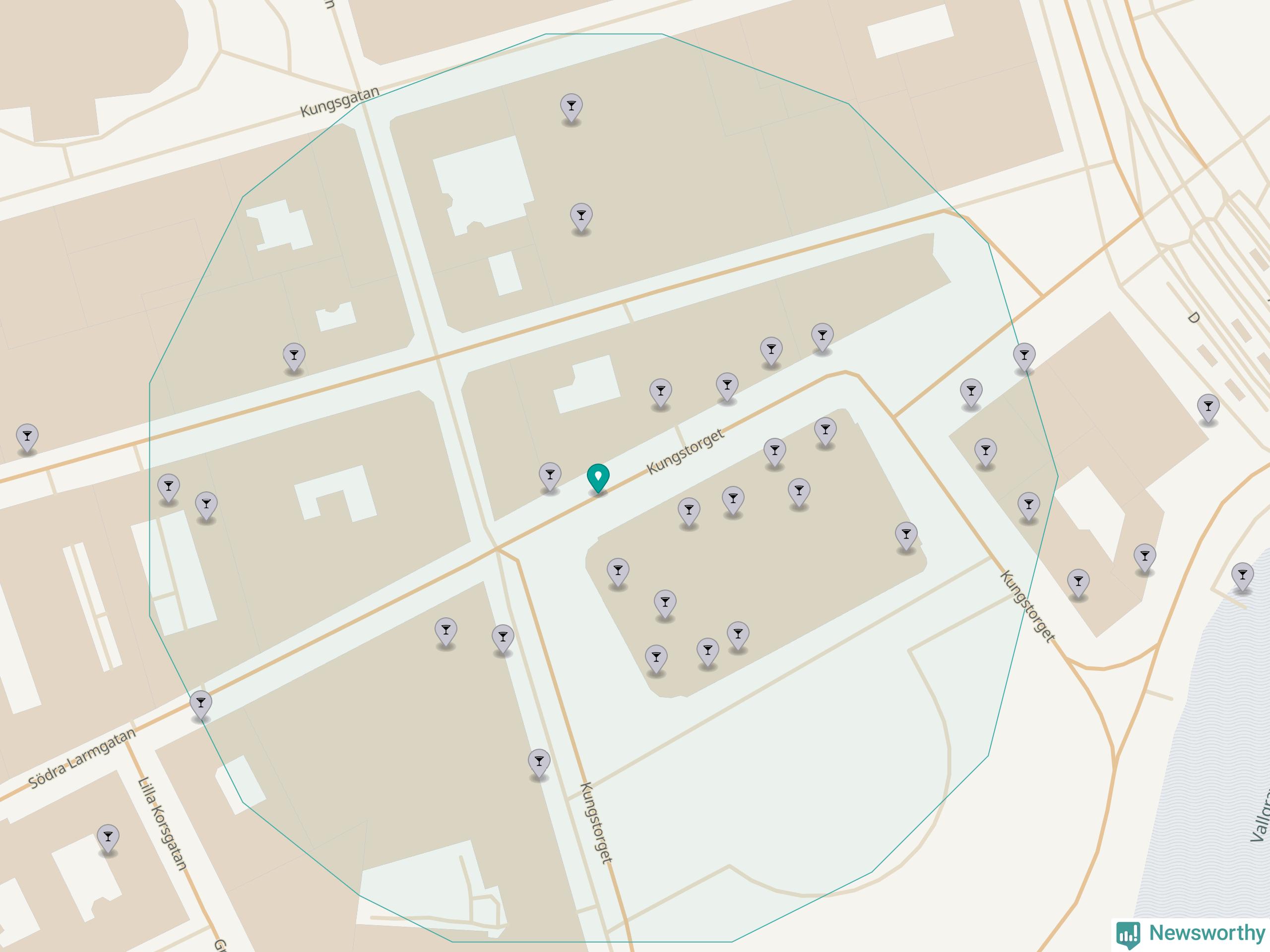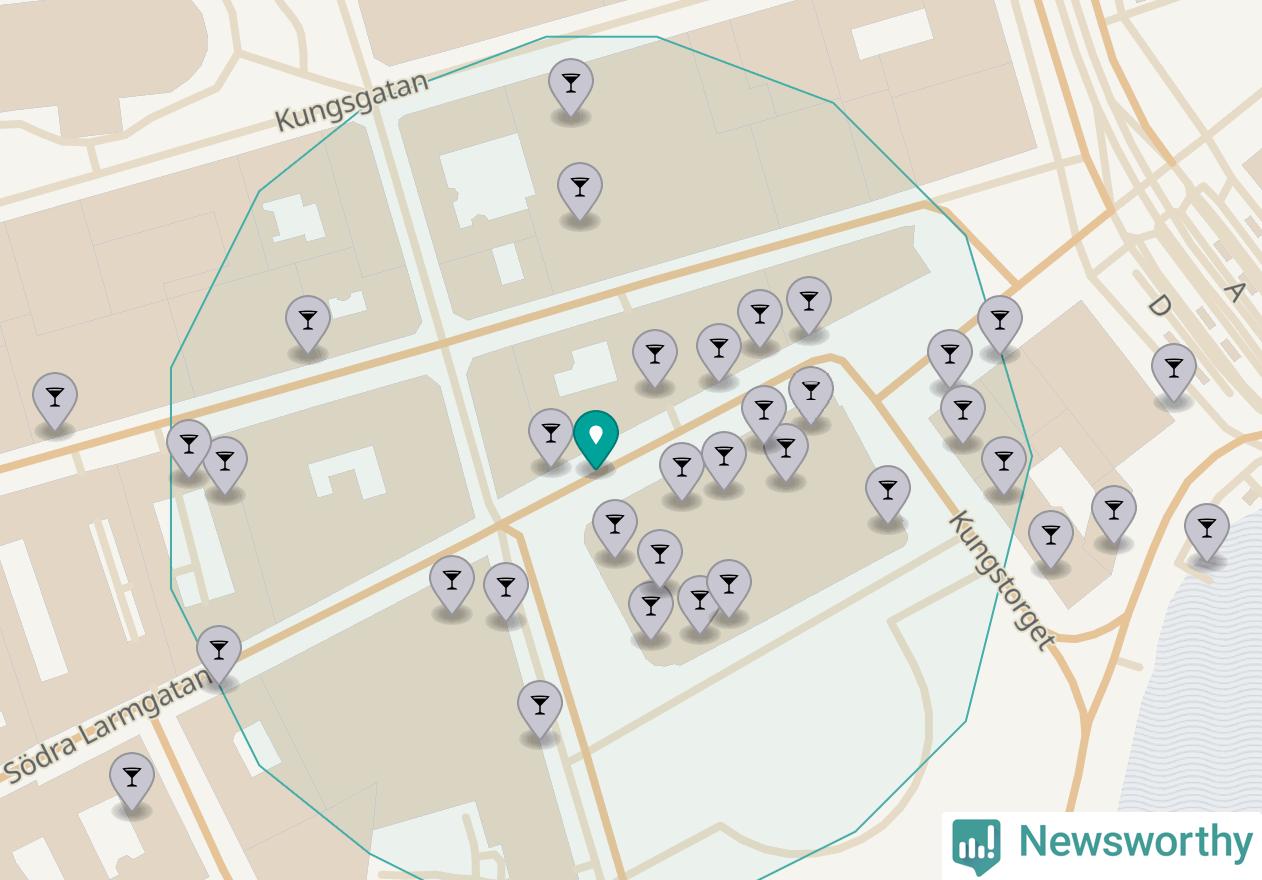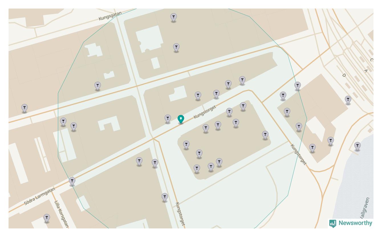 Om du står på Kungstorget har du sisådär 29 krogar, restauranger eller hotell med serveringstillstånd inom en radie på 100 meter. Det är den krogtätaste platsen i Göteborgs kommun, den krogtätaste platsen i Västra Götaland – och en av de krogtätaste platserna i hela Sverige.