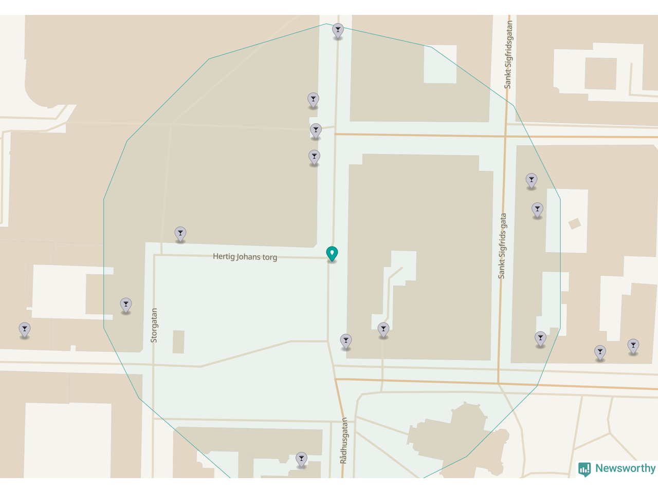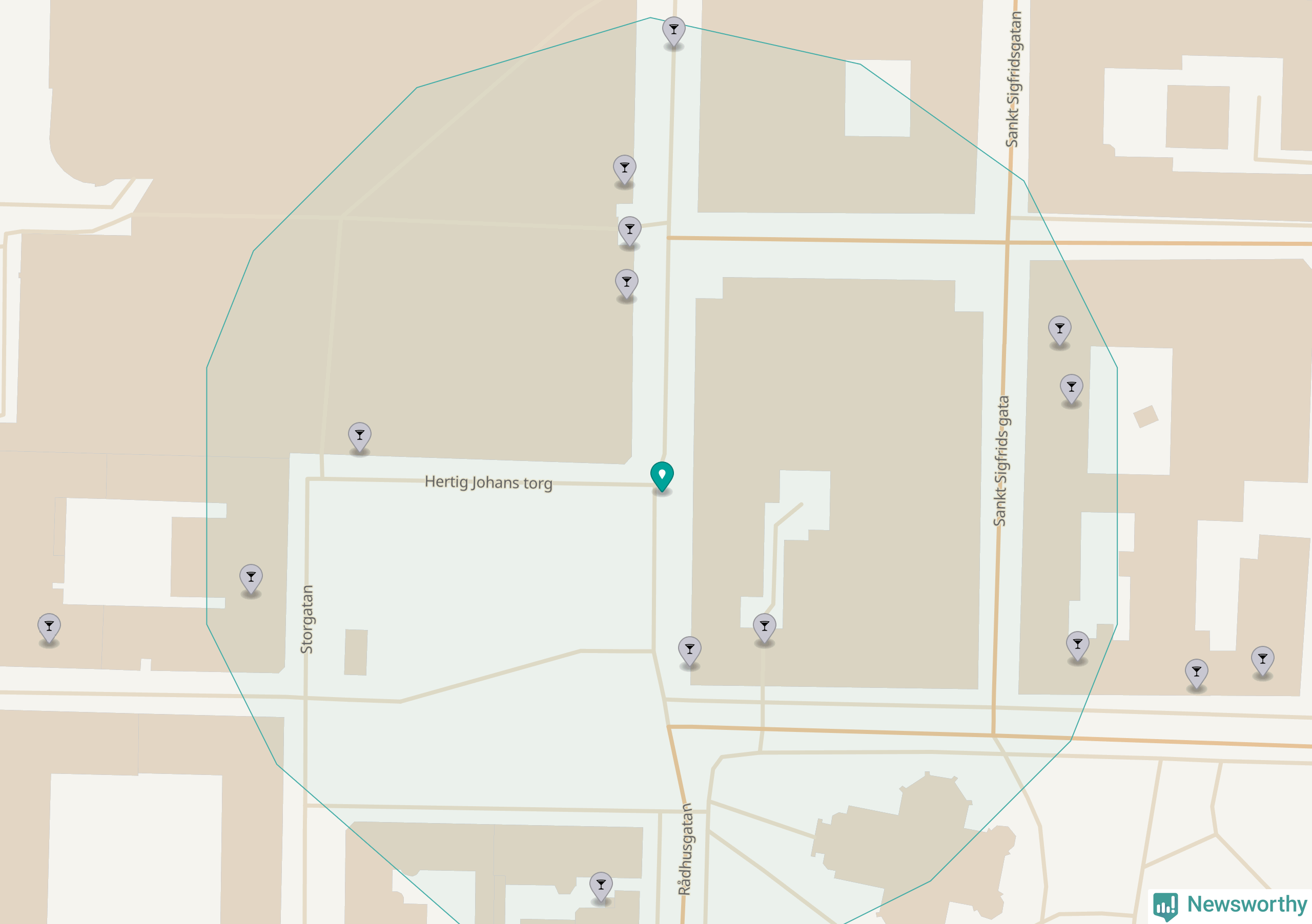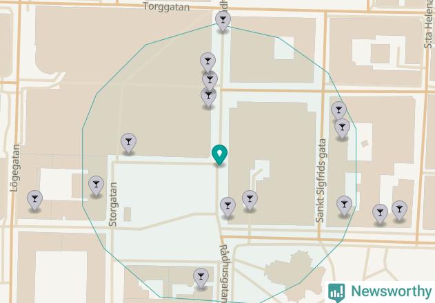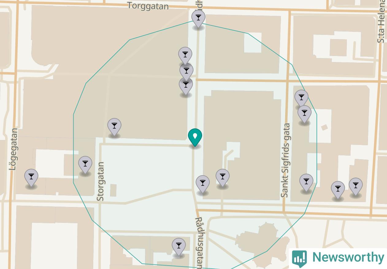 Om du står på Rådhusgatan har du sisådär tolv krogar, restauranger eller hotell med serveringstillstånd inom en radie på 100 meter. Det är den krogtätaste platsen i Skövde kommun.