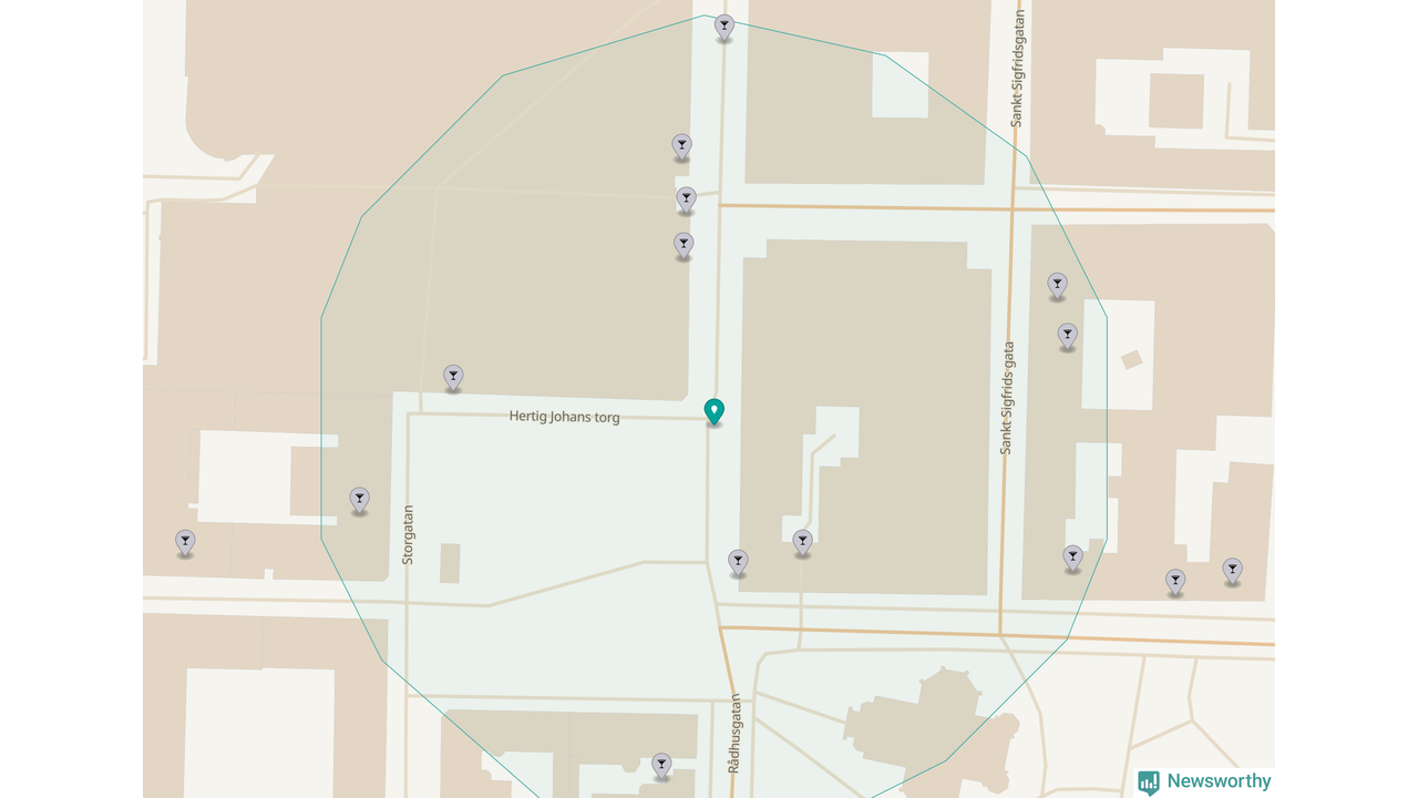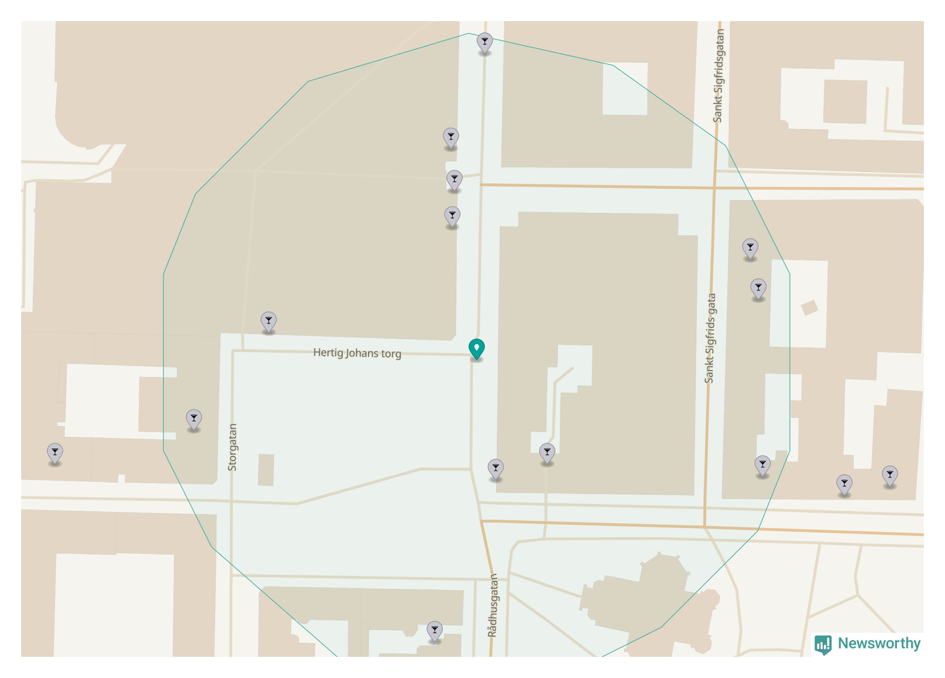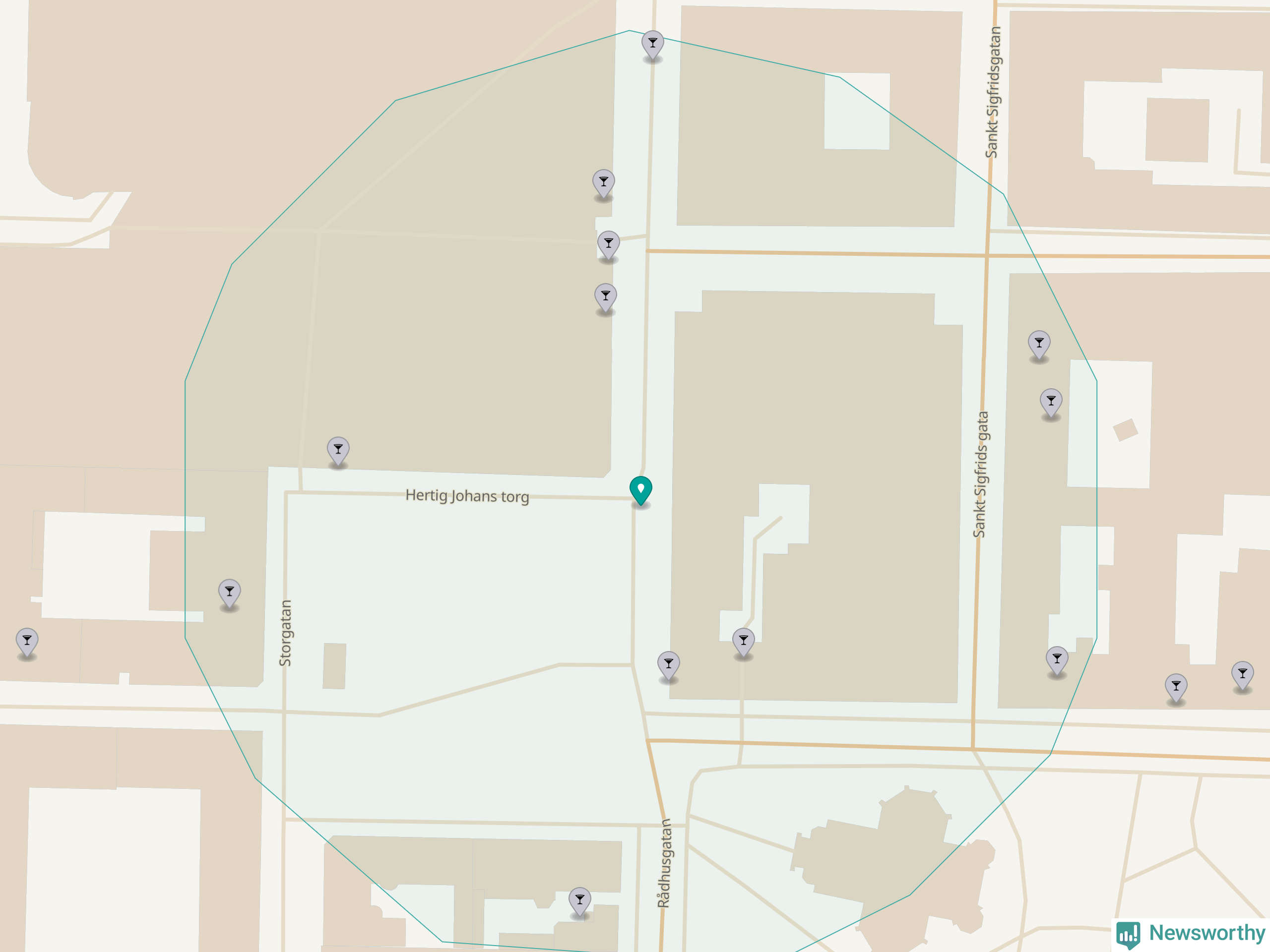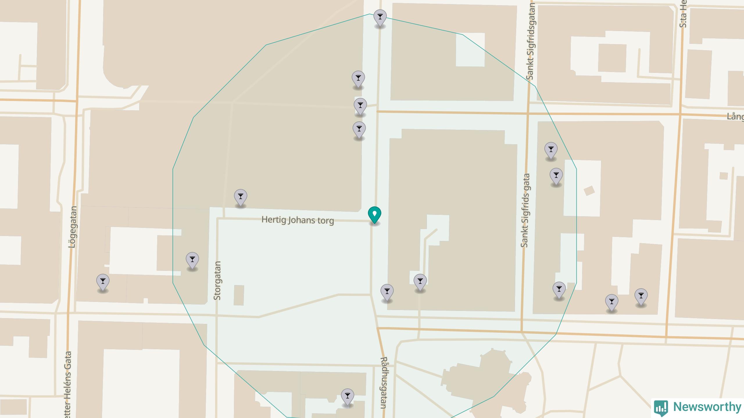 Om du står på Rådhusgatan har du sisådär tolv krogar, restauranger eller hotell med serveringstillstånd inom en radie på 100 meter. Det är den krogtätaste platsen i Skövde kommun.
