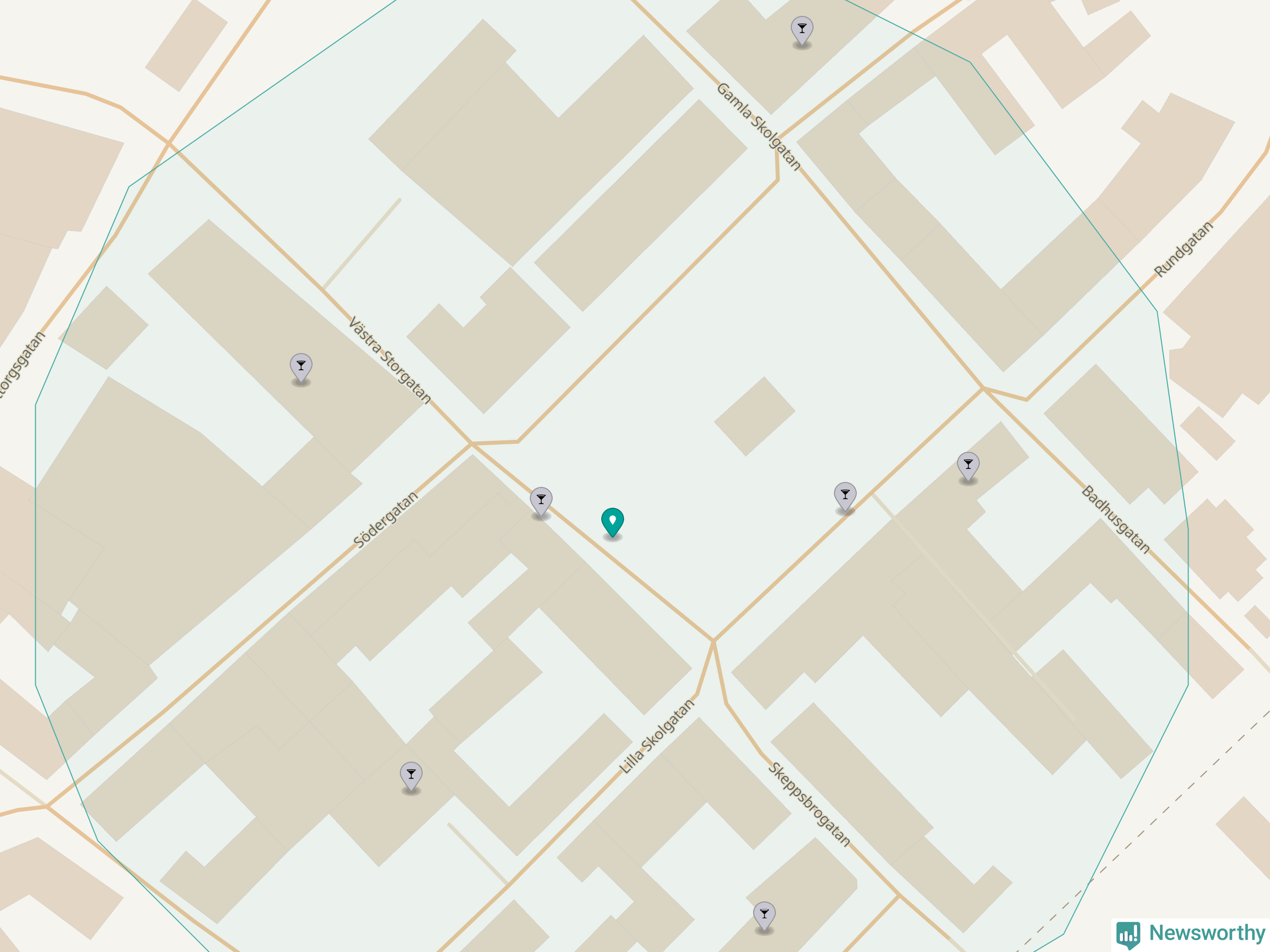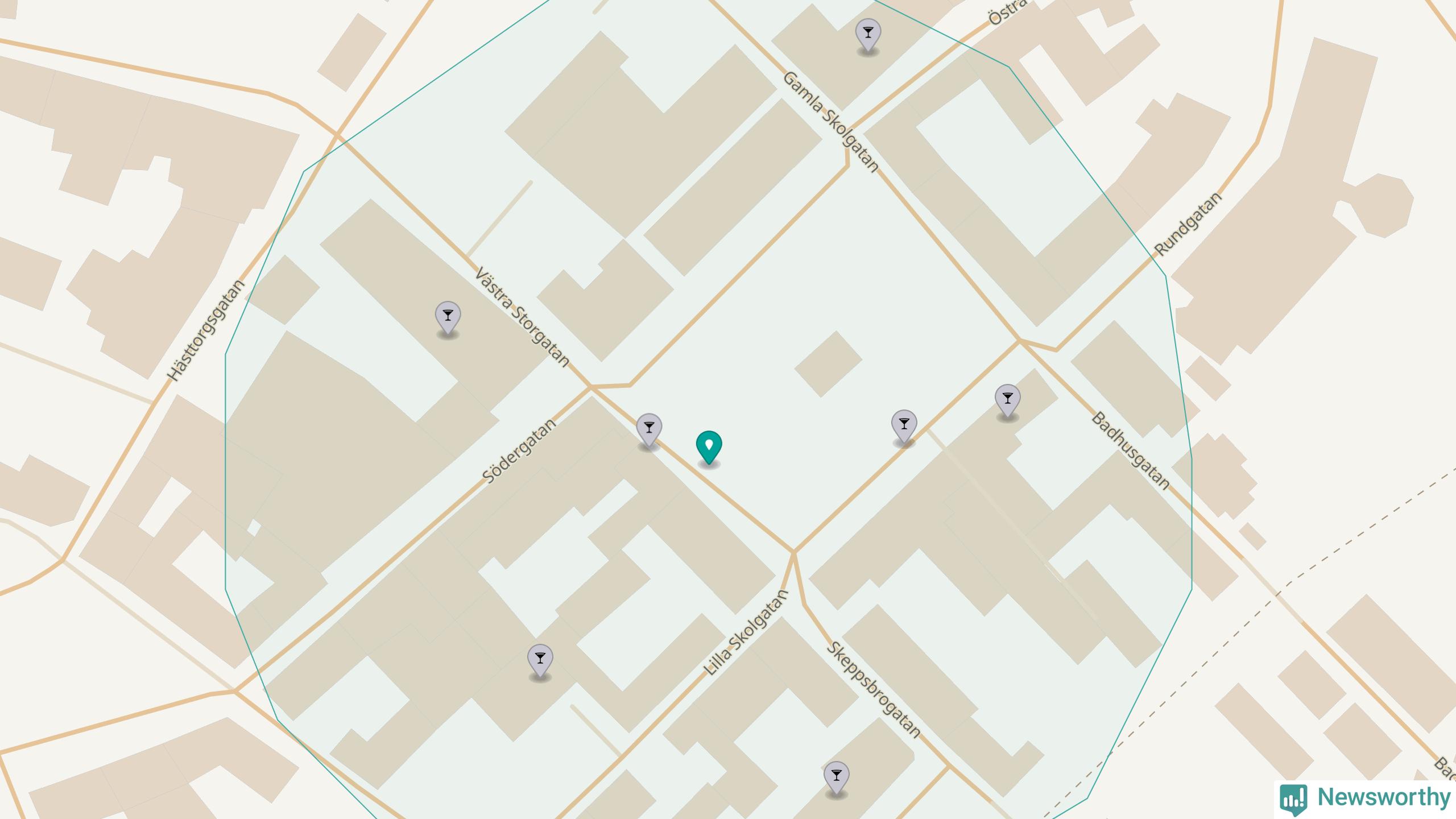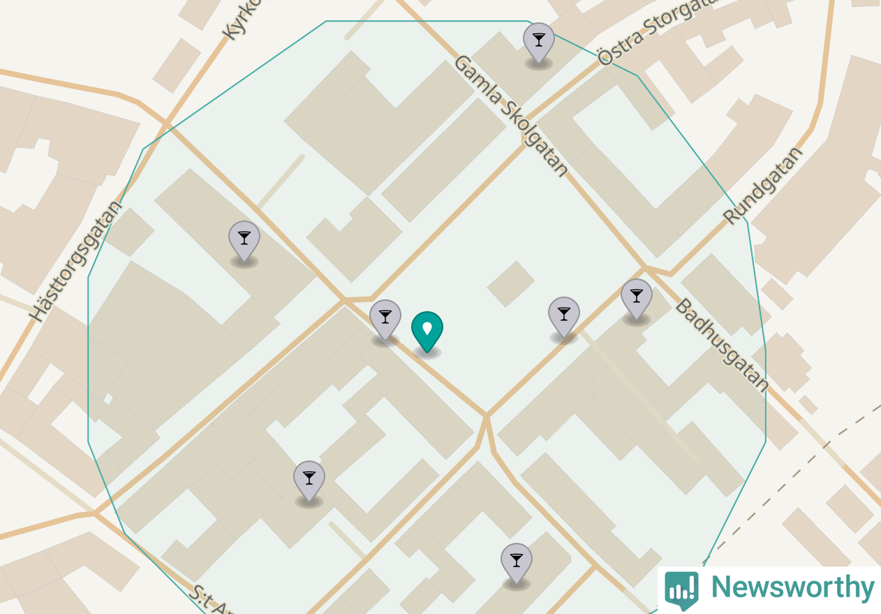 Om du står på Stortorget har du sju krogar, restauranger eller hotell med serveringstillstånd inom en radie på 100 meter. Det är den krogtätaste platsen i Sölvesborgs kommun.