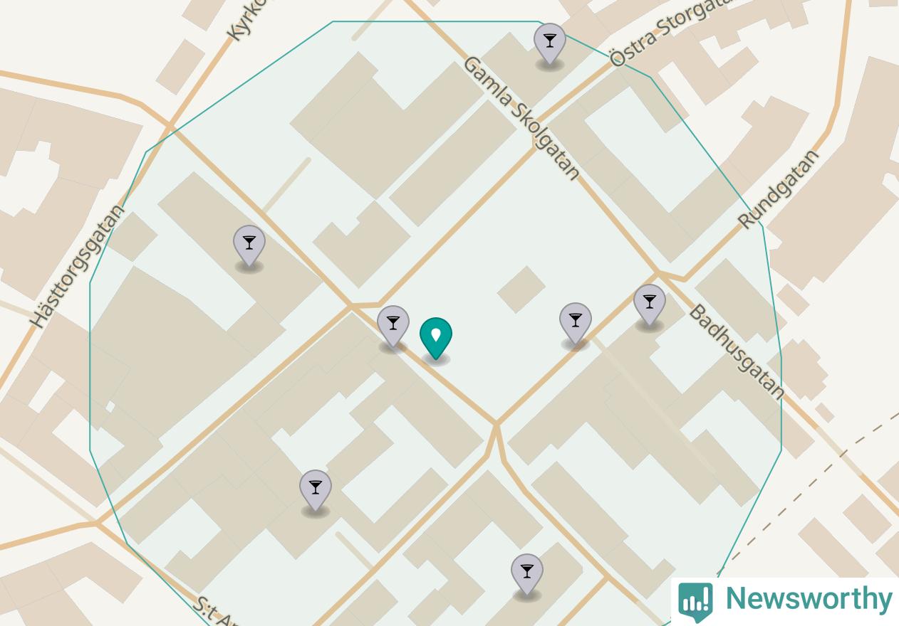 Tätast ligger förstås barerna ofta centralt i större städer. Den plats i Blekinge där de ligger tätast ligger i Karlskrona kommun: Om du står på Stortorget har du elva ställen med serveringstillstånd inom en radie på 100 meter.