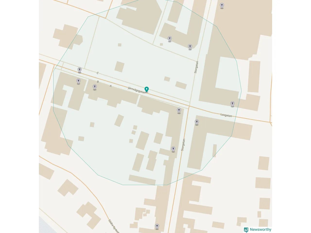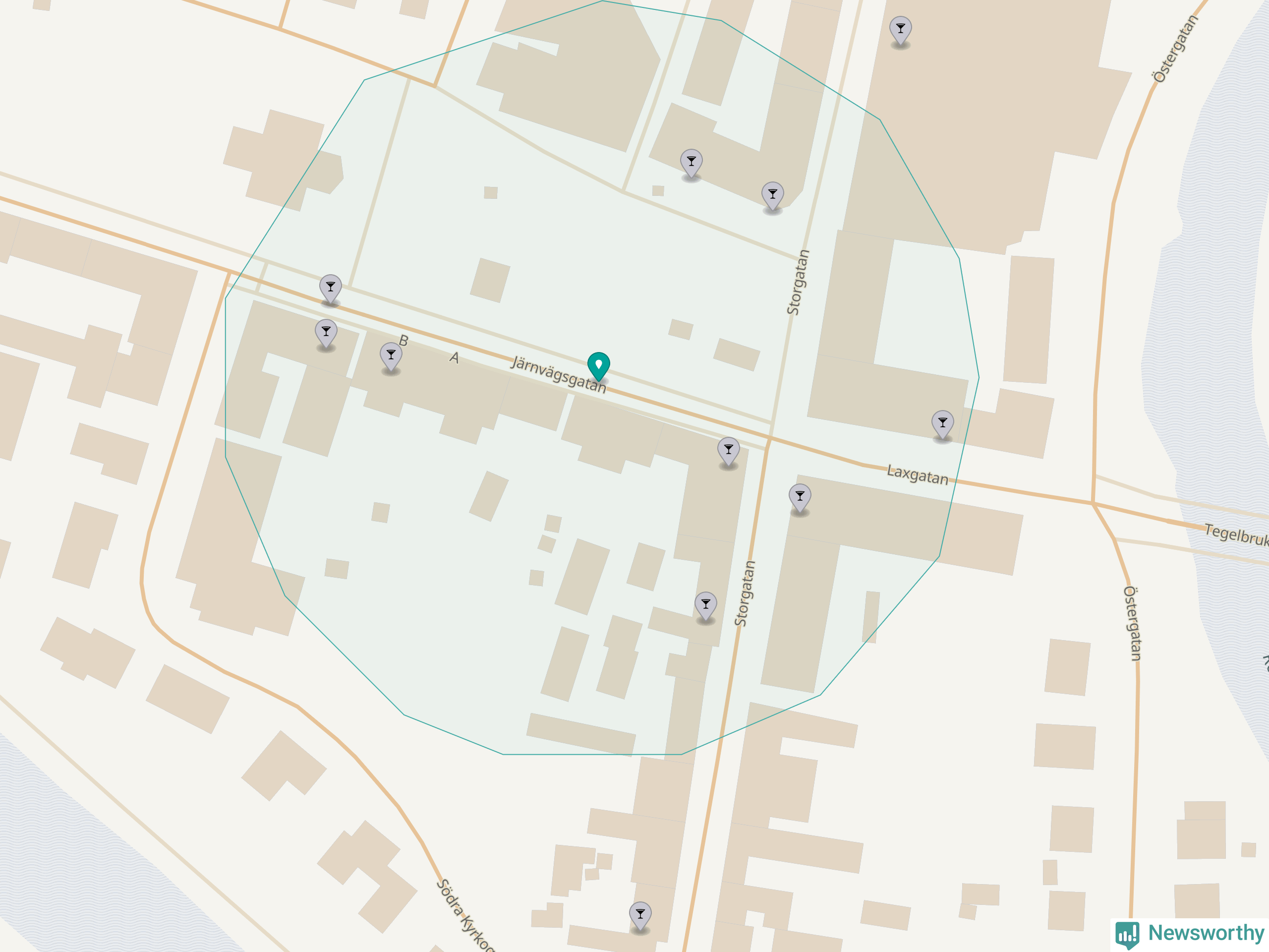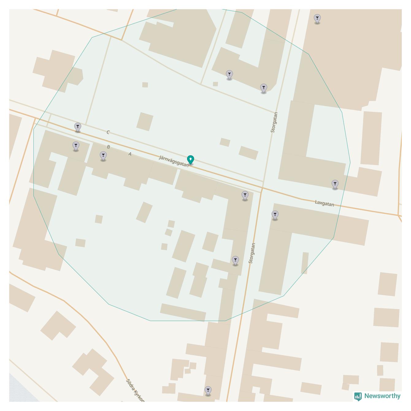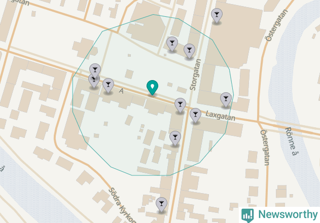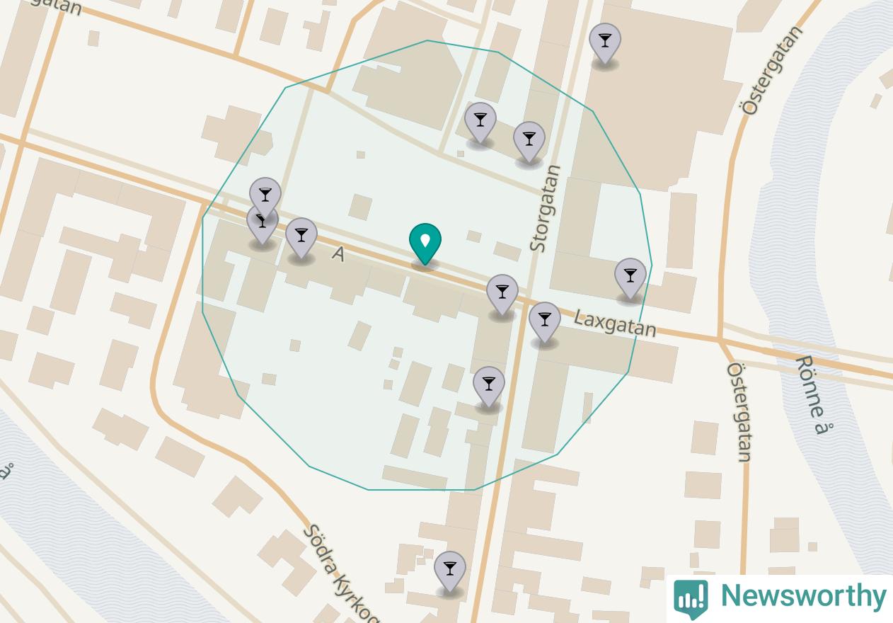Om du står på Järnvägsgatan har du sisådär nio krogar, restauranger eller hotell med serveringstillstånd inom en radie på 100 meter. Det är den krogtätaste platsen i Ängelholms kommun.