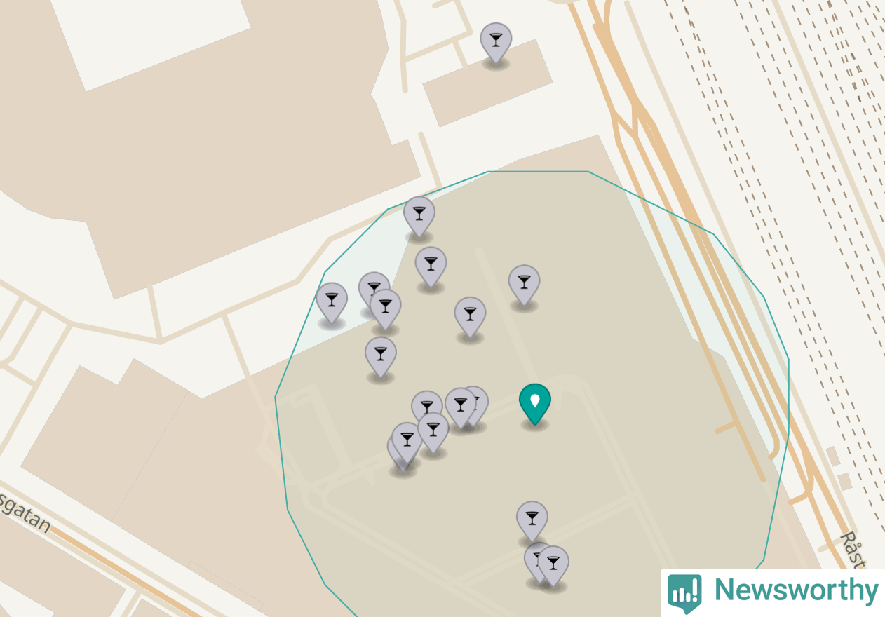 Tätast ligger förstås barerna ofta centralt i större städer. Den plats i Stockholms län där de ligger tätast ligger i Stockholms kommun: Om du står i hörnet Stora Nygatan och Skräddargränd har du 33 ställen med serveringstillstånd inom en radie på 100 meter.