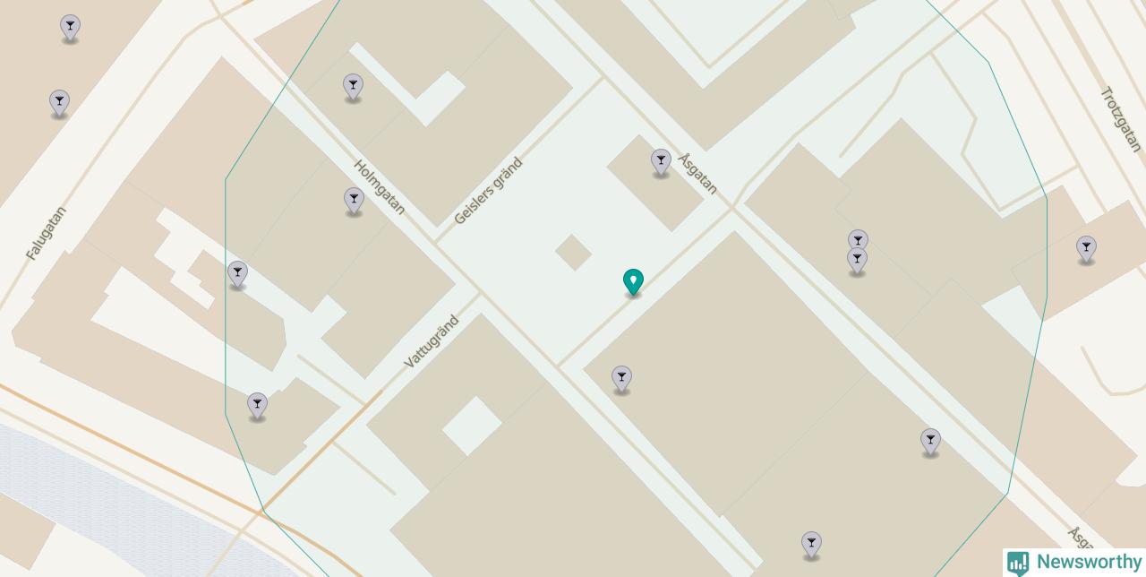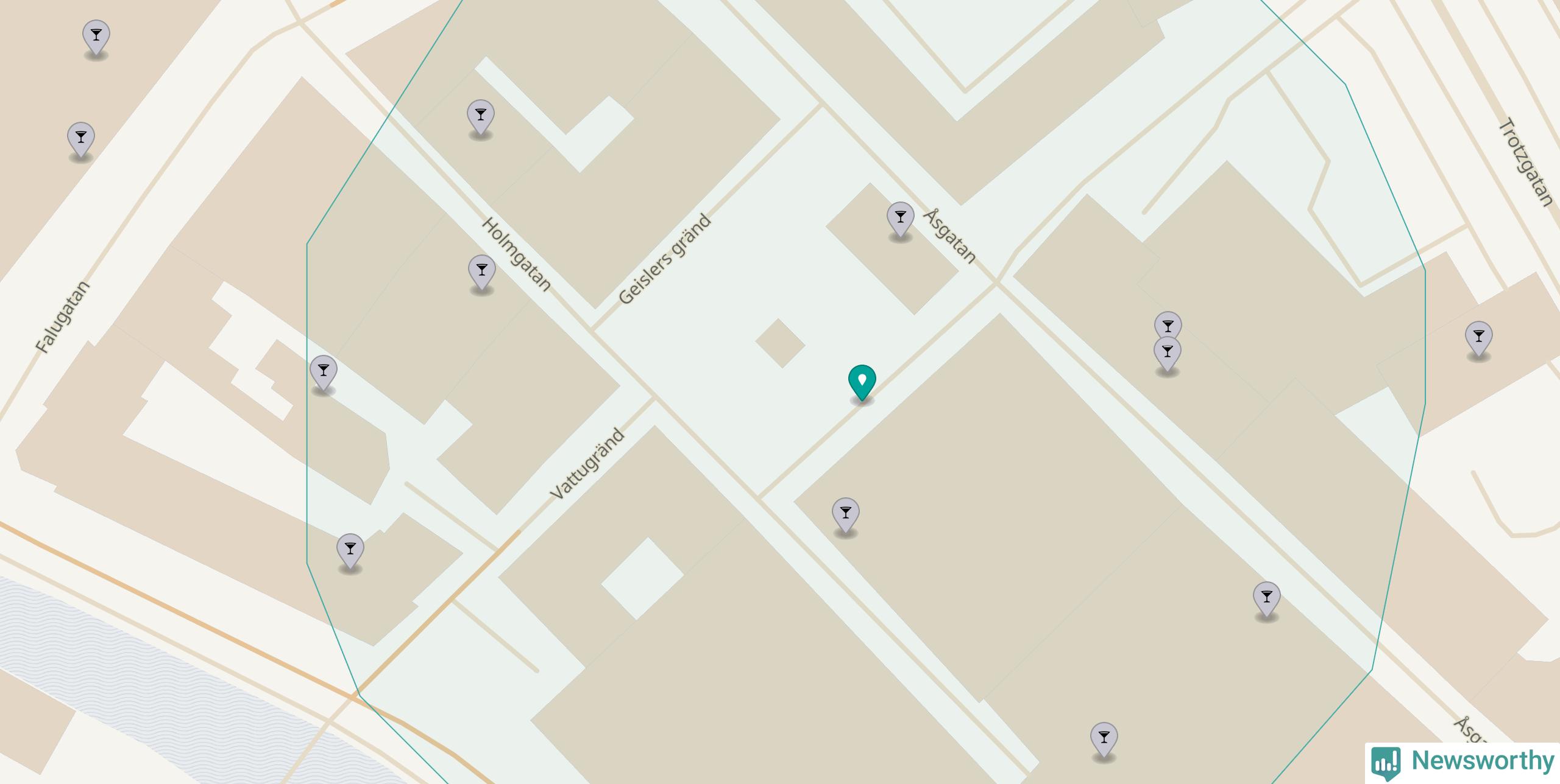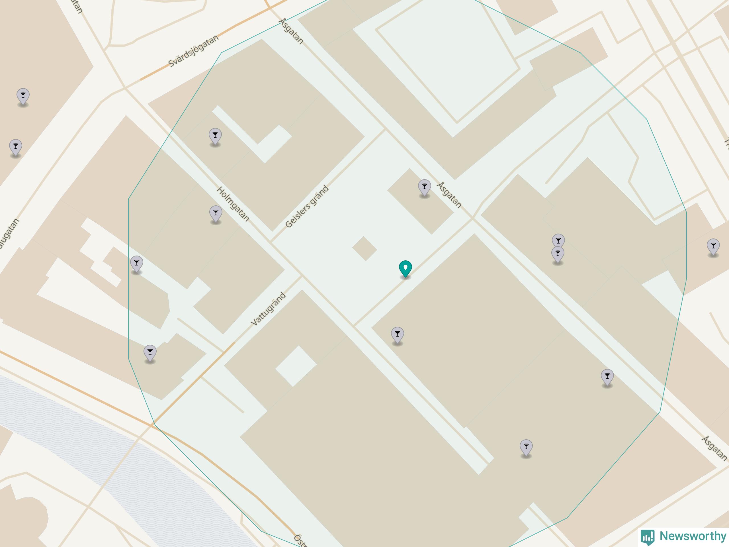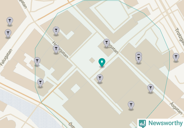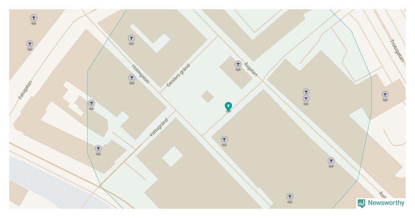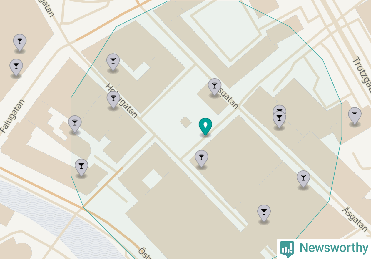 Tätast ligger förstås barerna ofta centralt i större städer. Den plats i Dalarna där de ligger tätast ligger i Borlänge kommun: Om du står på Sveagatan har du tolv ställen med serveringstillstånd inom en radie på 100 meter.