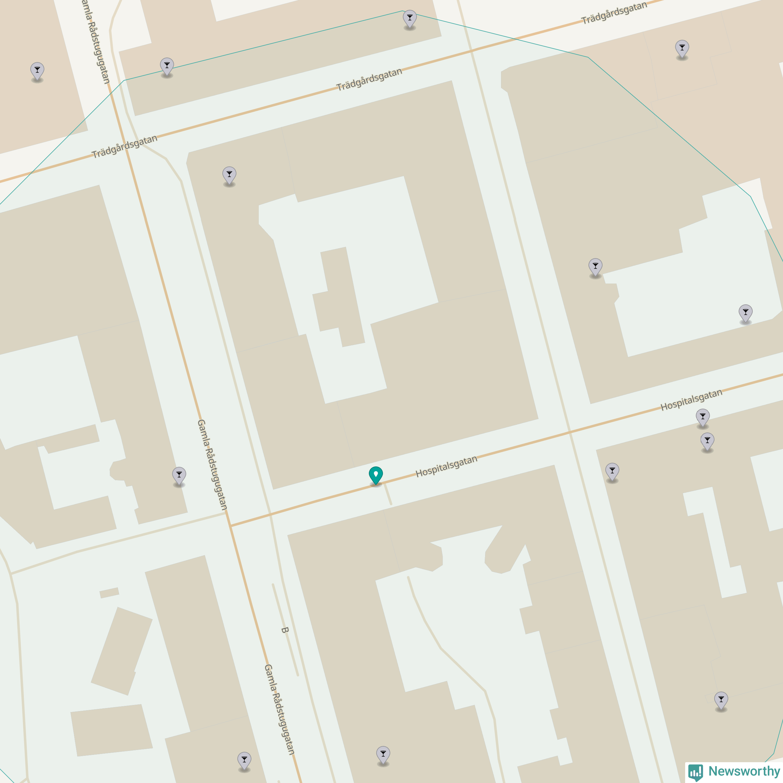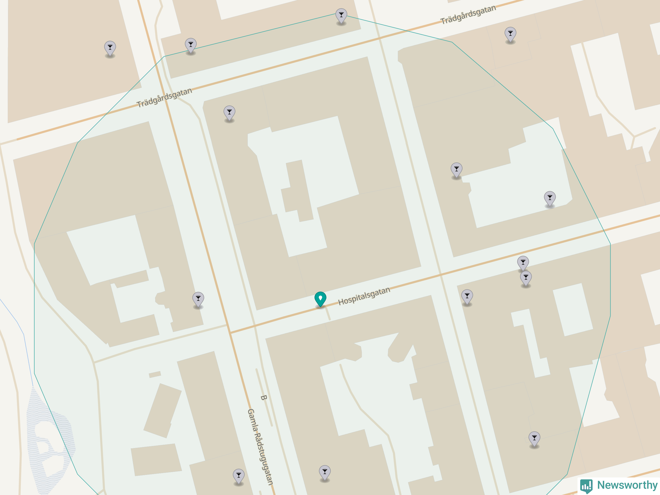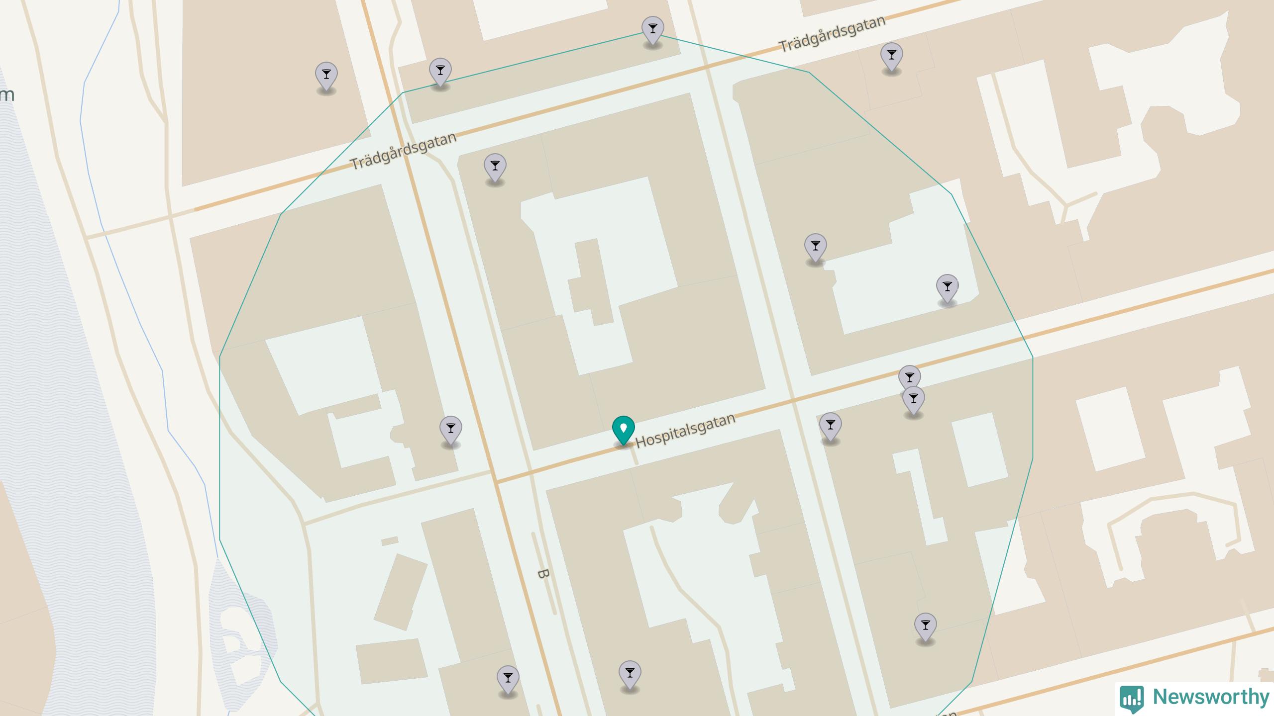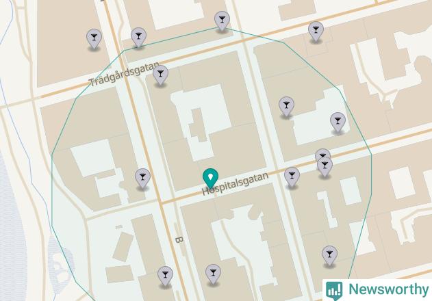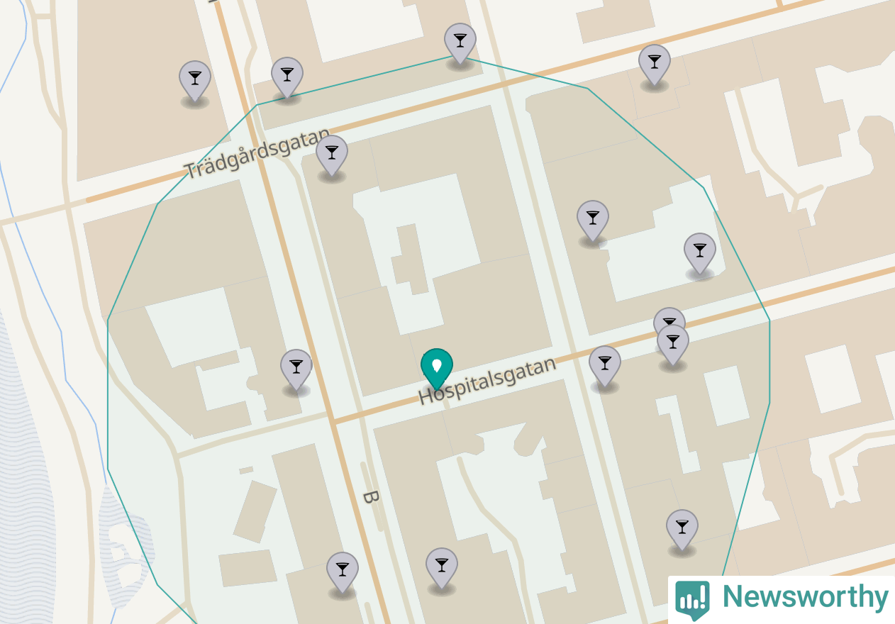 Om du står på Hospitalsgatan har du sisådär tolv krogar, restauranger eller hotell med serveringstillstånd inom en radie på 100 meter. Det är den krogtätaste platsen i Norrköpings kommun.