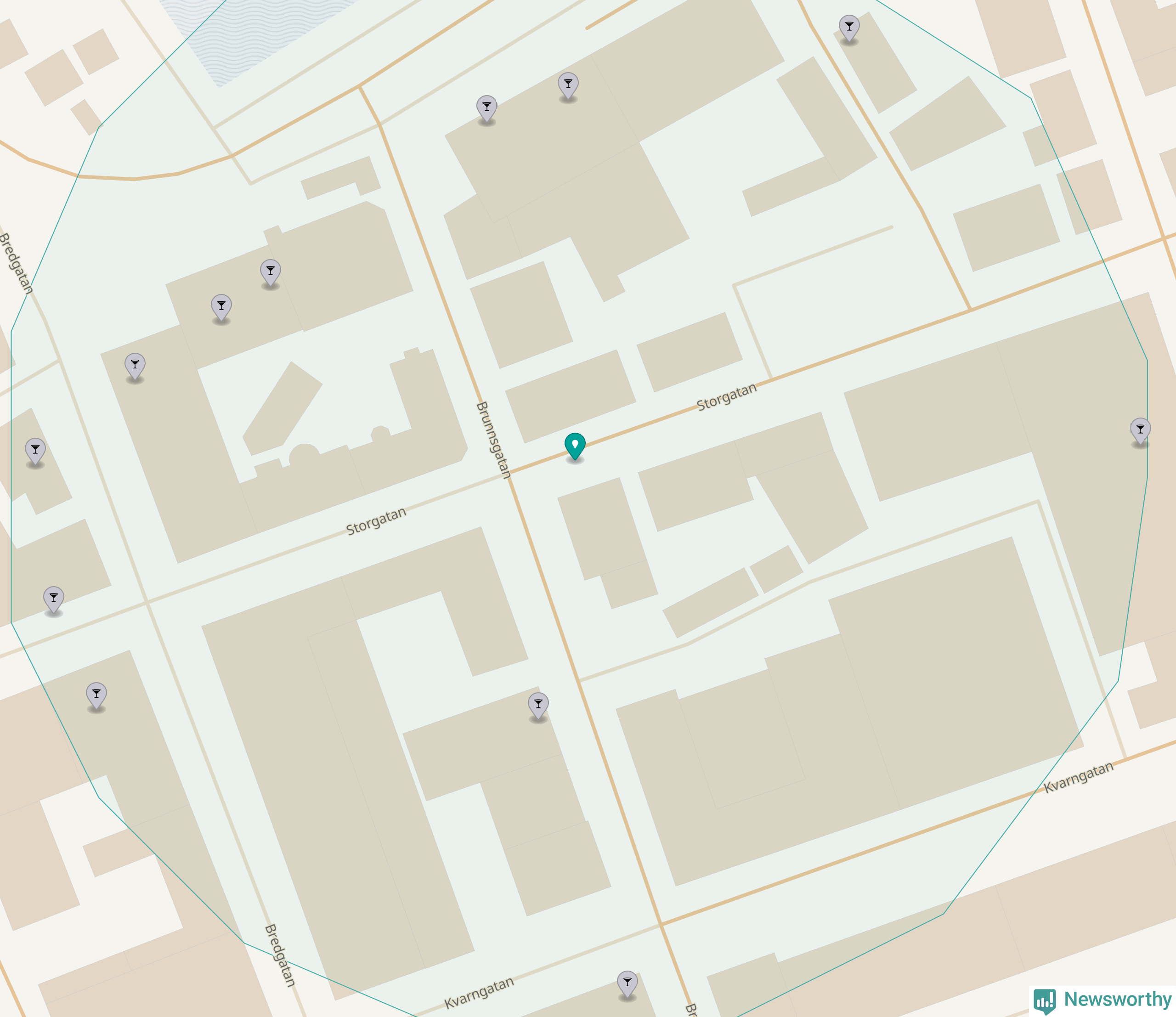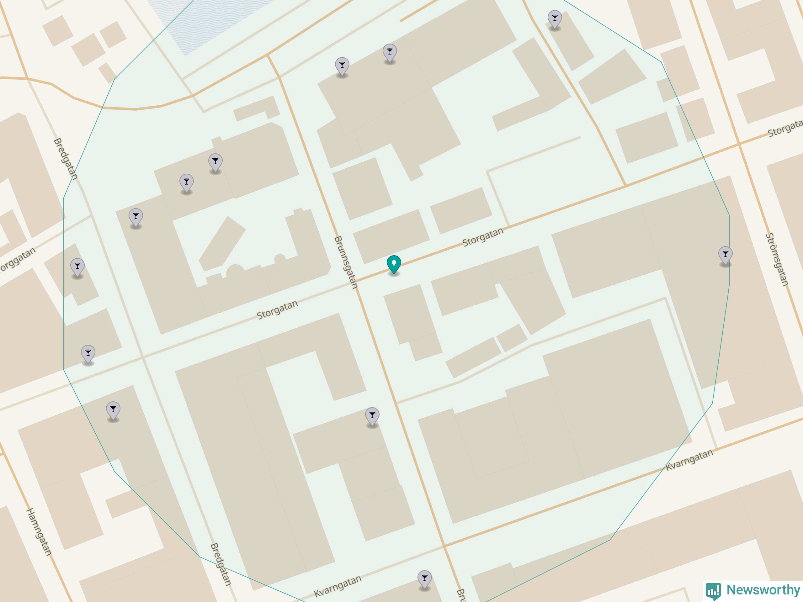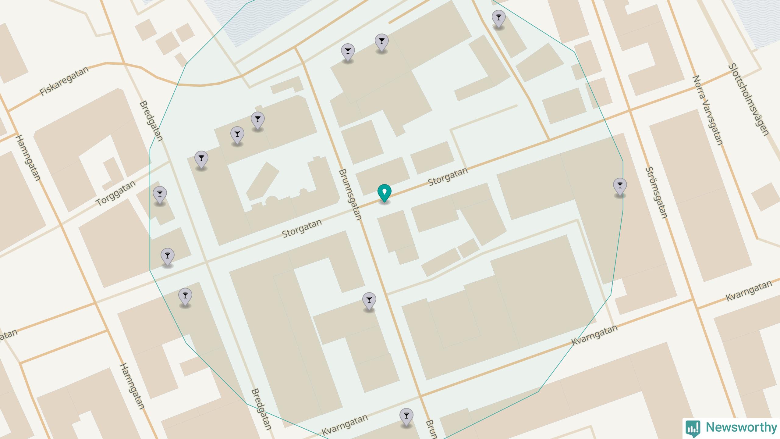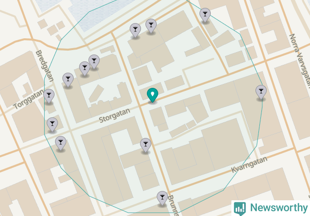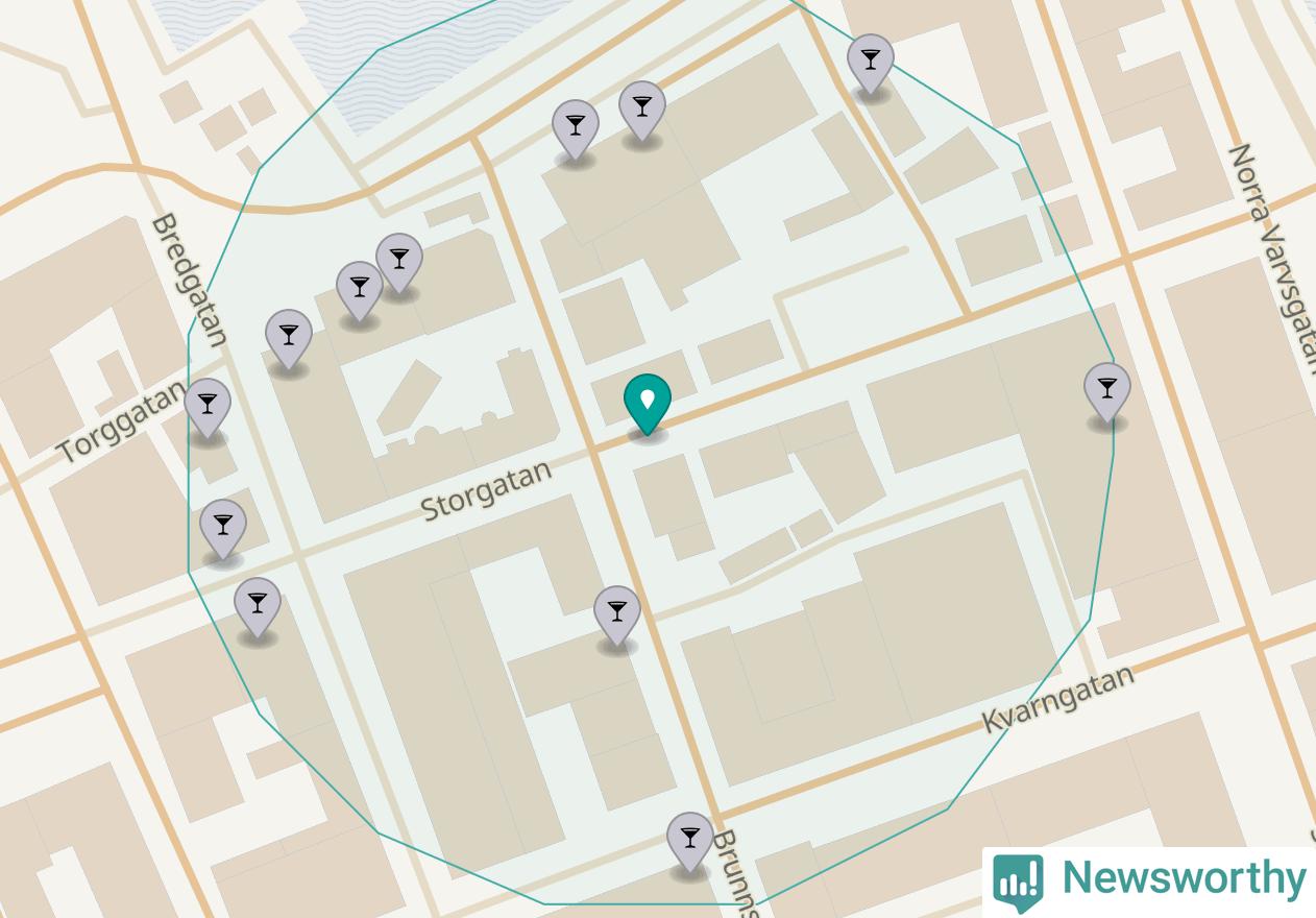 Om du står på Storgatan har du 13 krogar, restauranger eller hotell med serveringstillstånd inom en radie på 100 meter. Det är den krogtätaste platsen i Västerviks kommun.