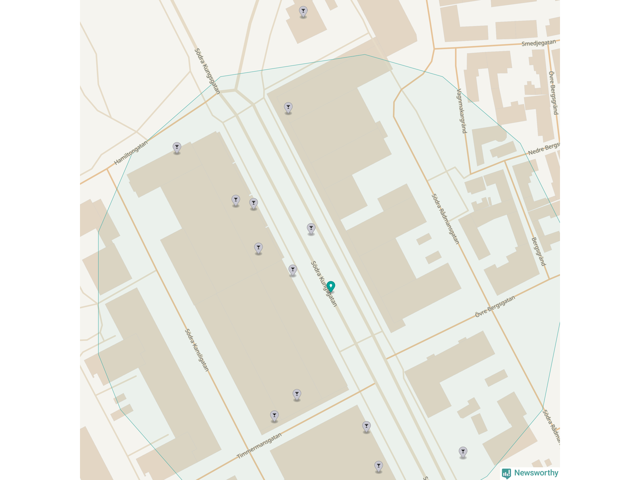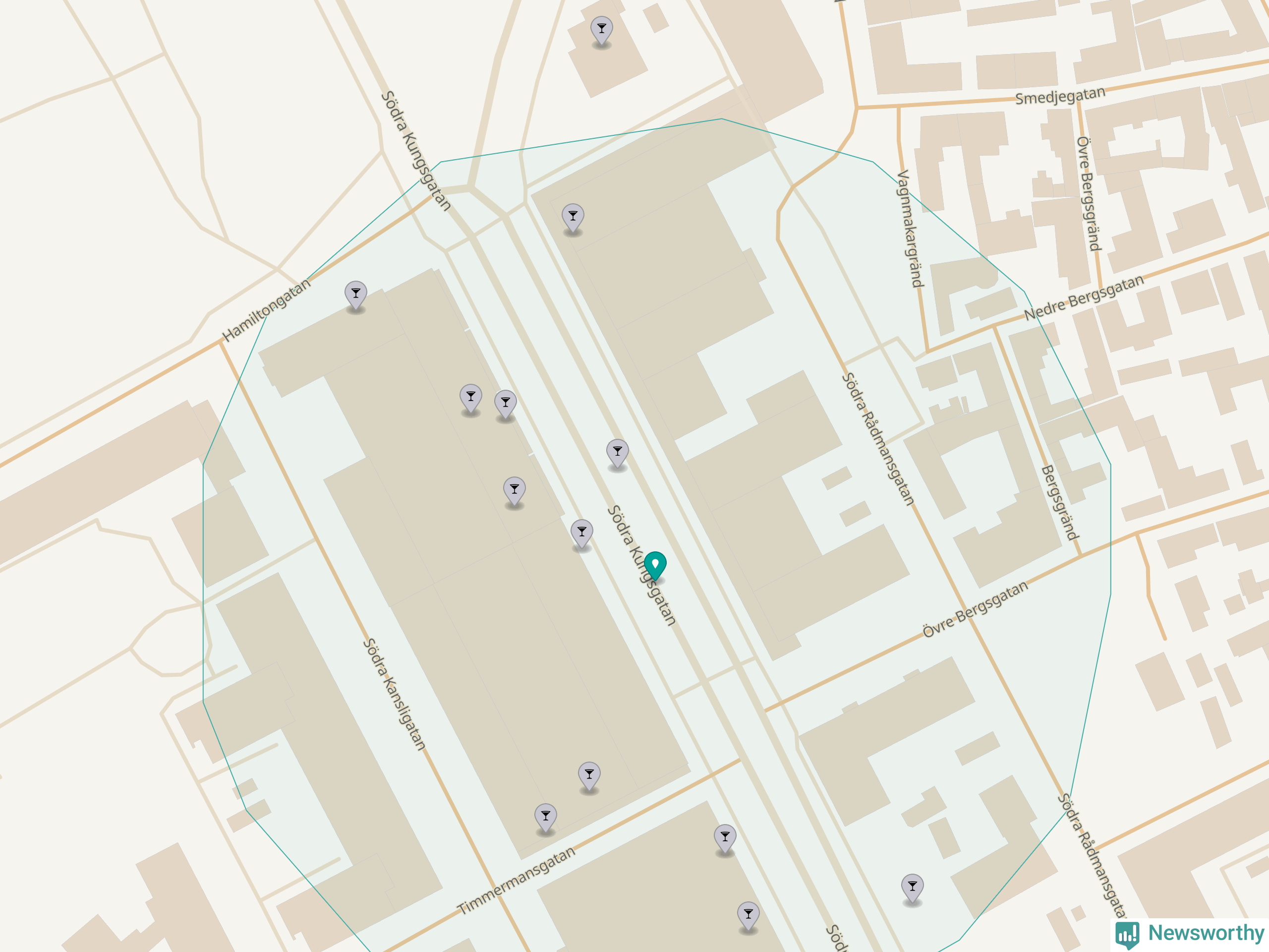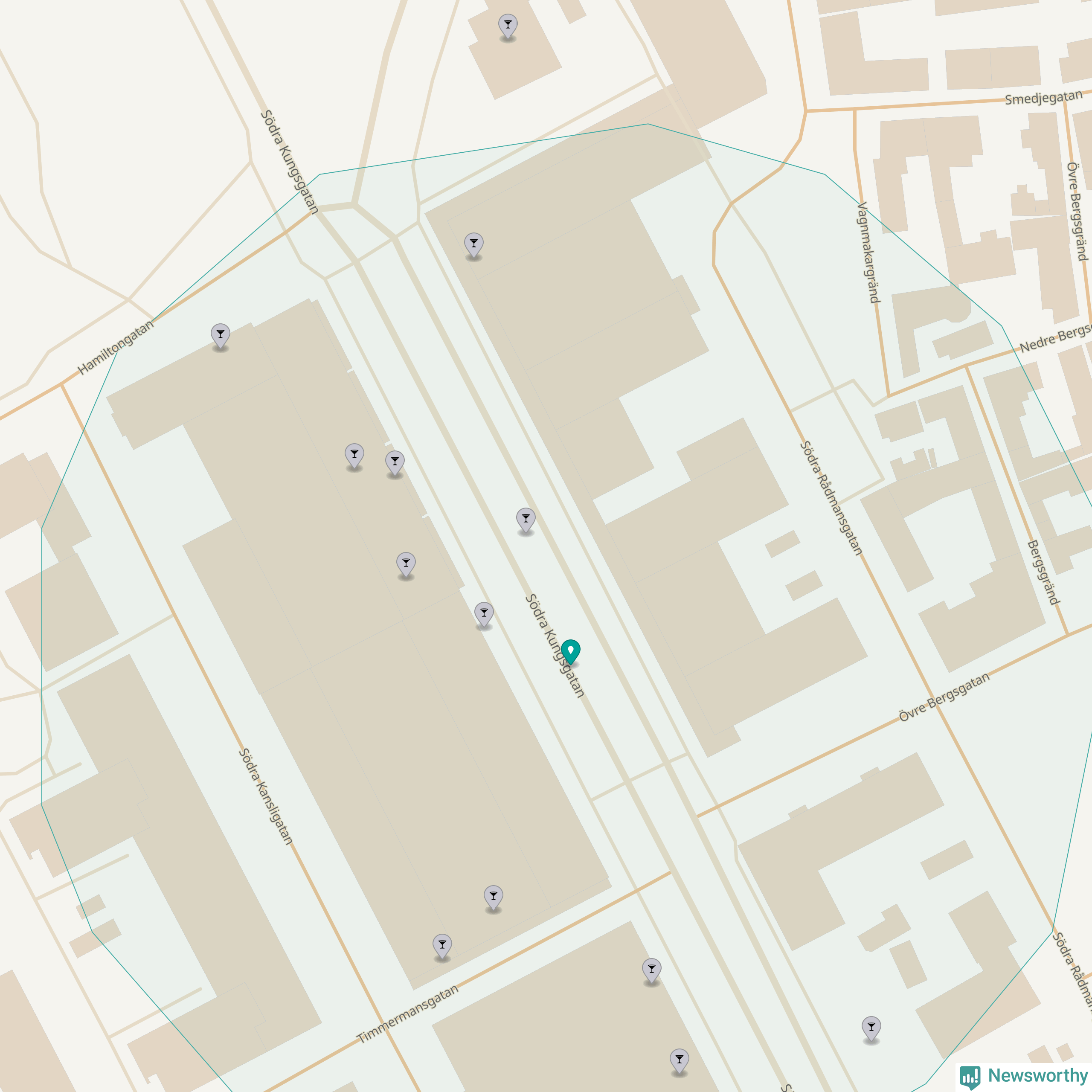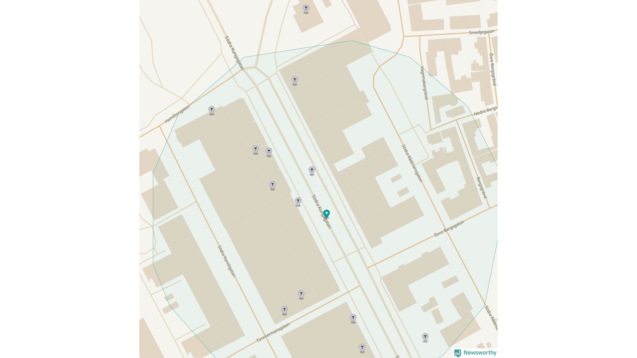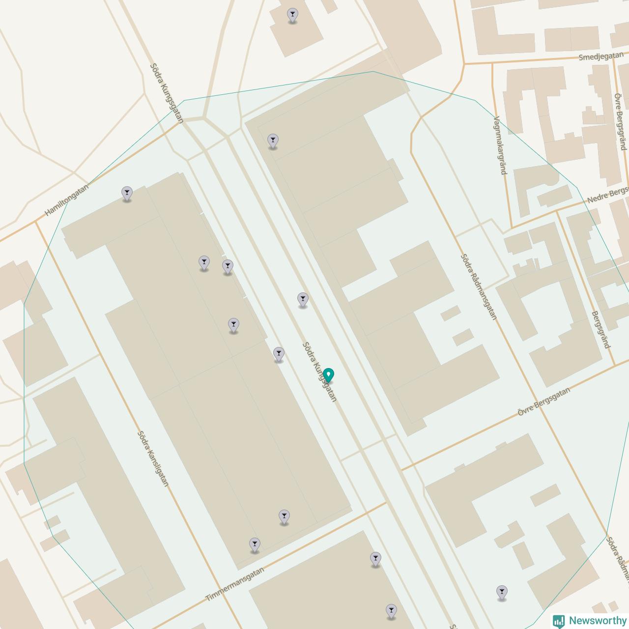Tätast ligger förstås barerna ofta centralt i större städer. Den plats i Gävleborg där de ligger tätast ligger i Gävle kommun: Om du står på Södra Kungsgatan har du tolv krogar, restauranger eller hotell med serveringstillstånd inom en radie på 100 meter.