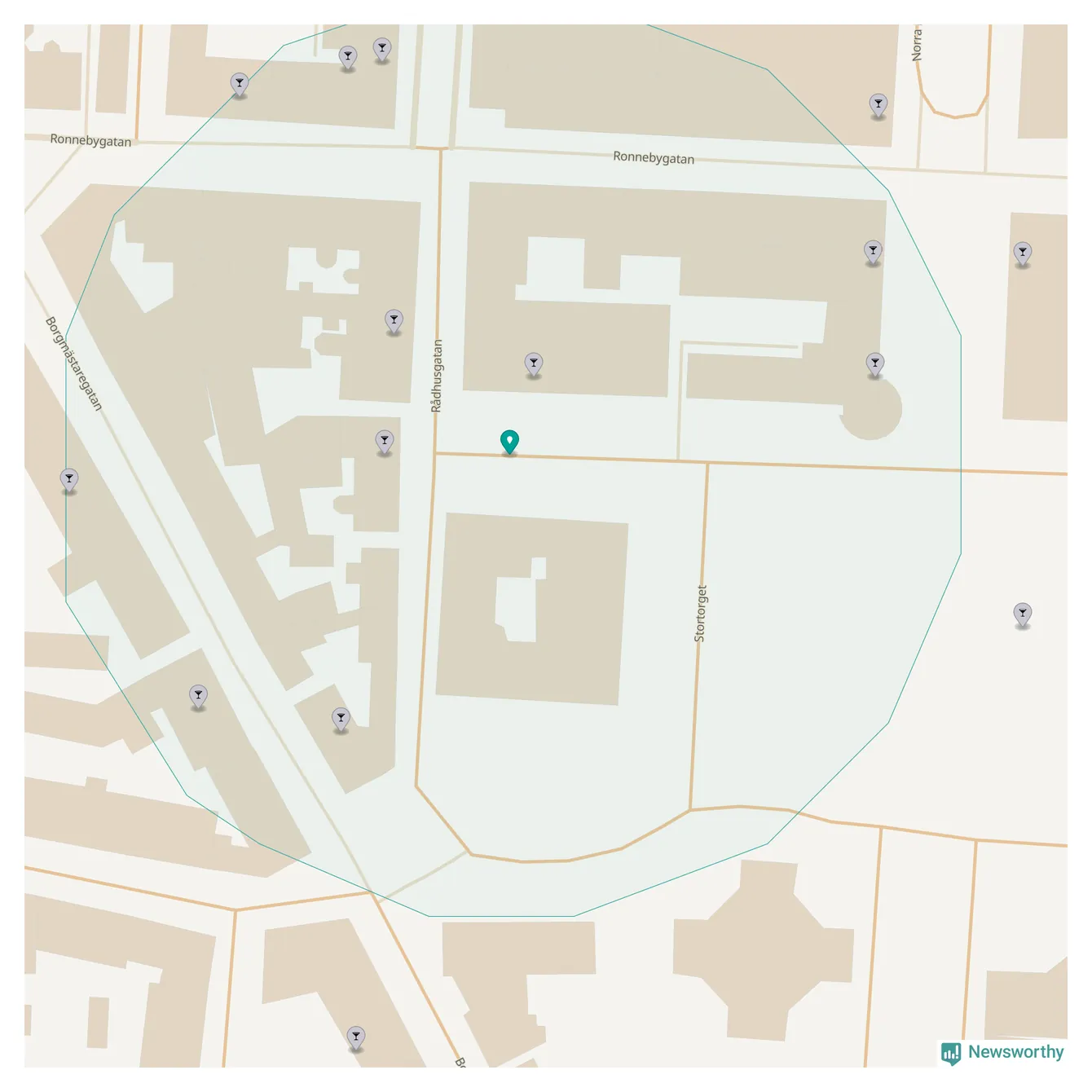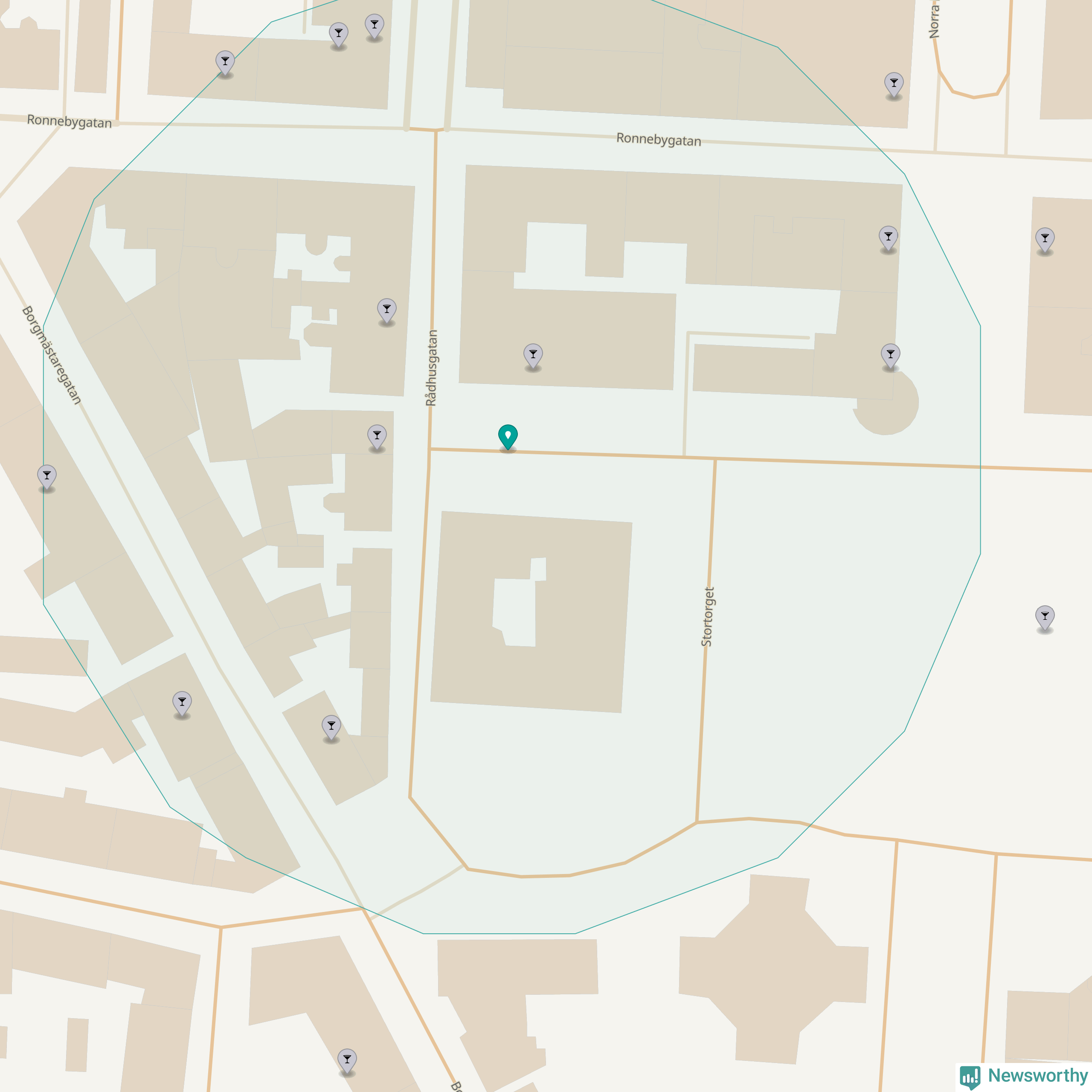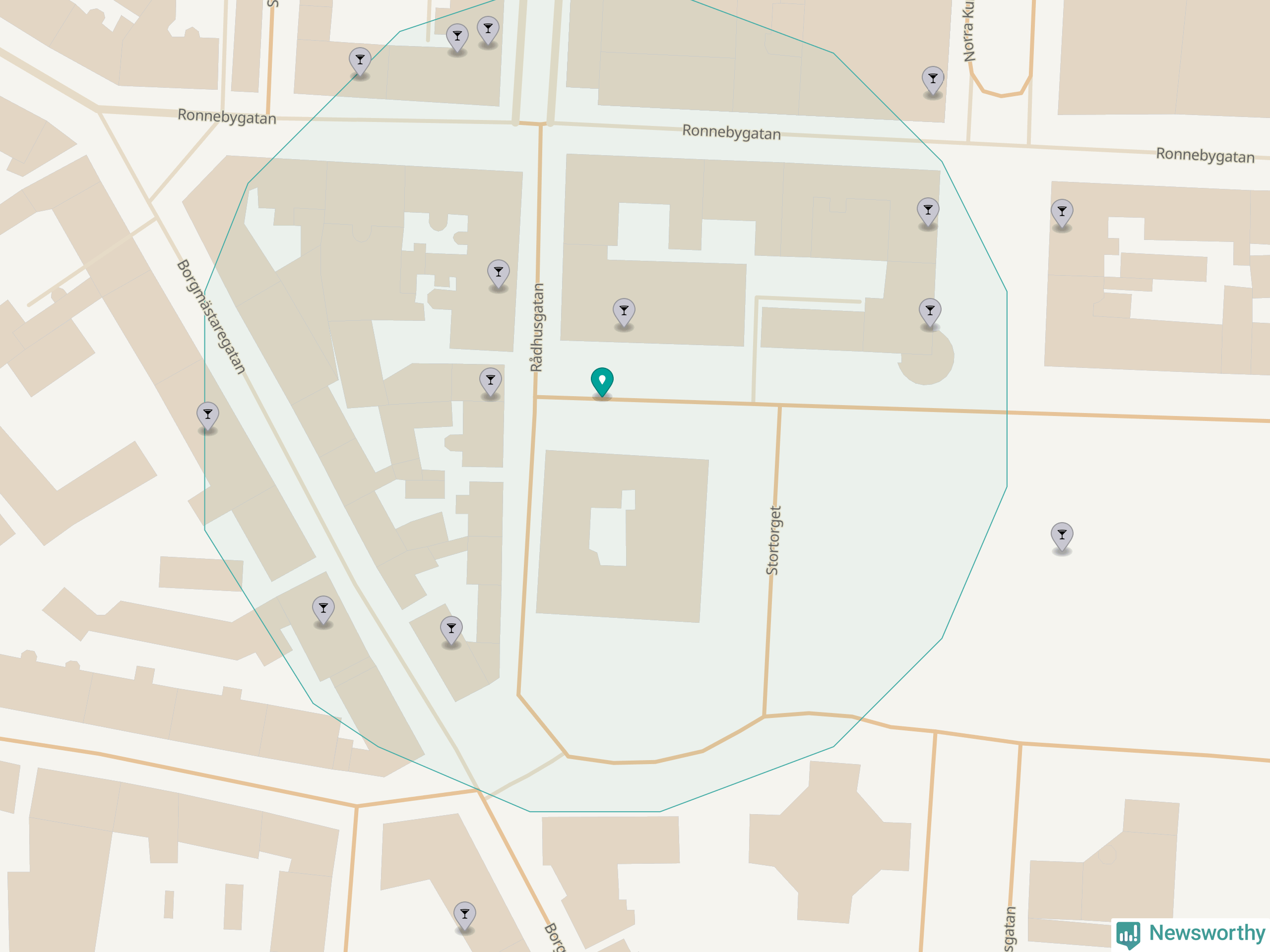 Tätast ligger förstås barerna ofta centralt i större städer. Den plats i Blekinge där de ligger tätast ligger i Karlskrona kommun: Om du står på Stortorget har du elva krogar, restauranger eller hotell med serveringstillstånd inom en radie på 100 meter.